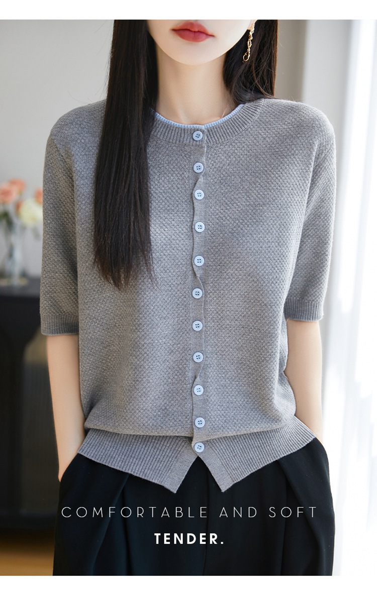 25 여름 새로운 스타일 고급 모조 두드린 양모 대조 버튼 짧은 소매 니트 카디건 여성의 우아한 샤넬 탑스토어 가기