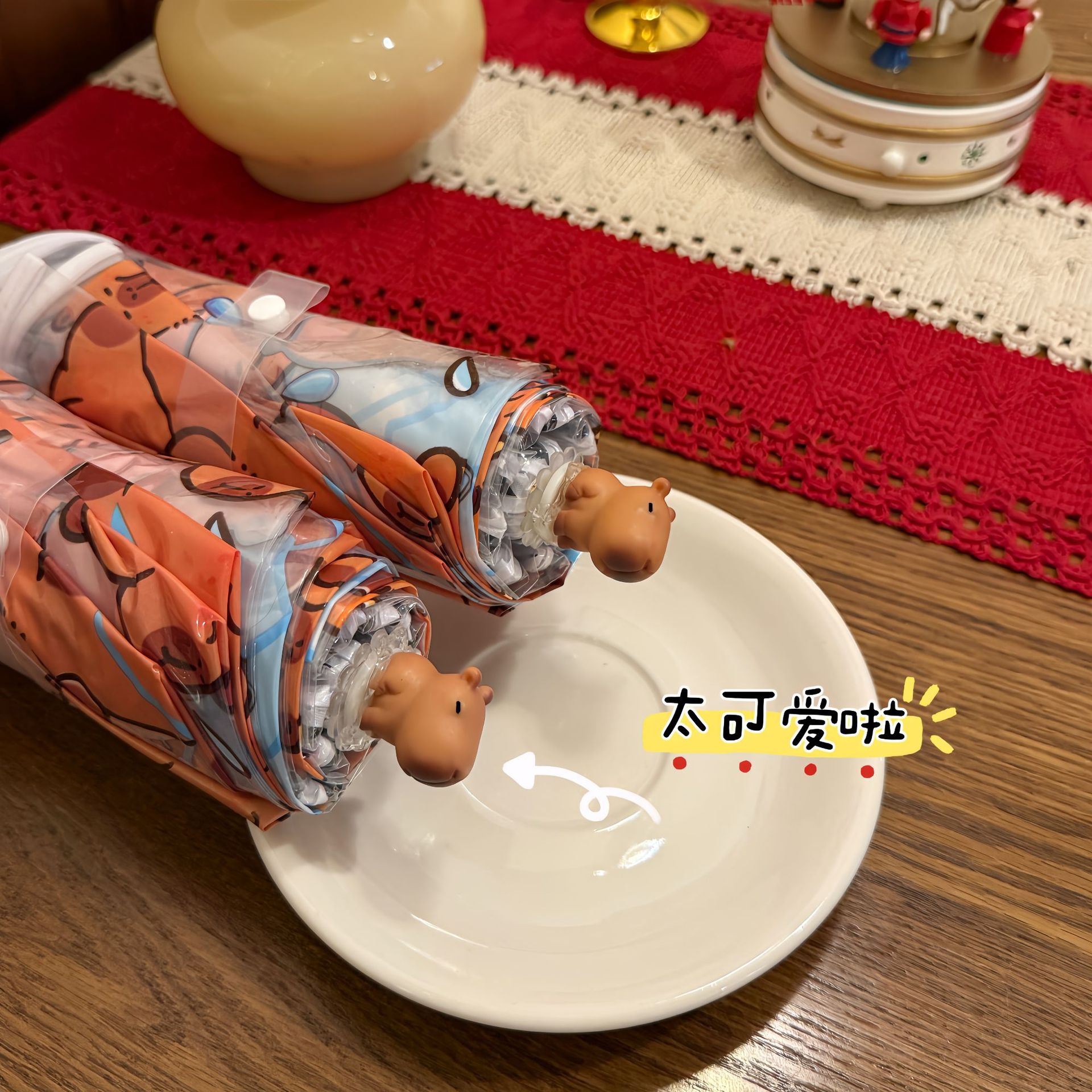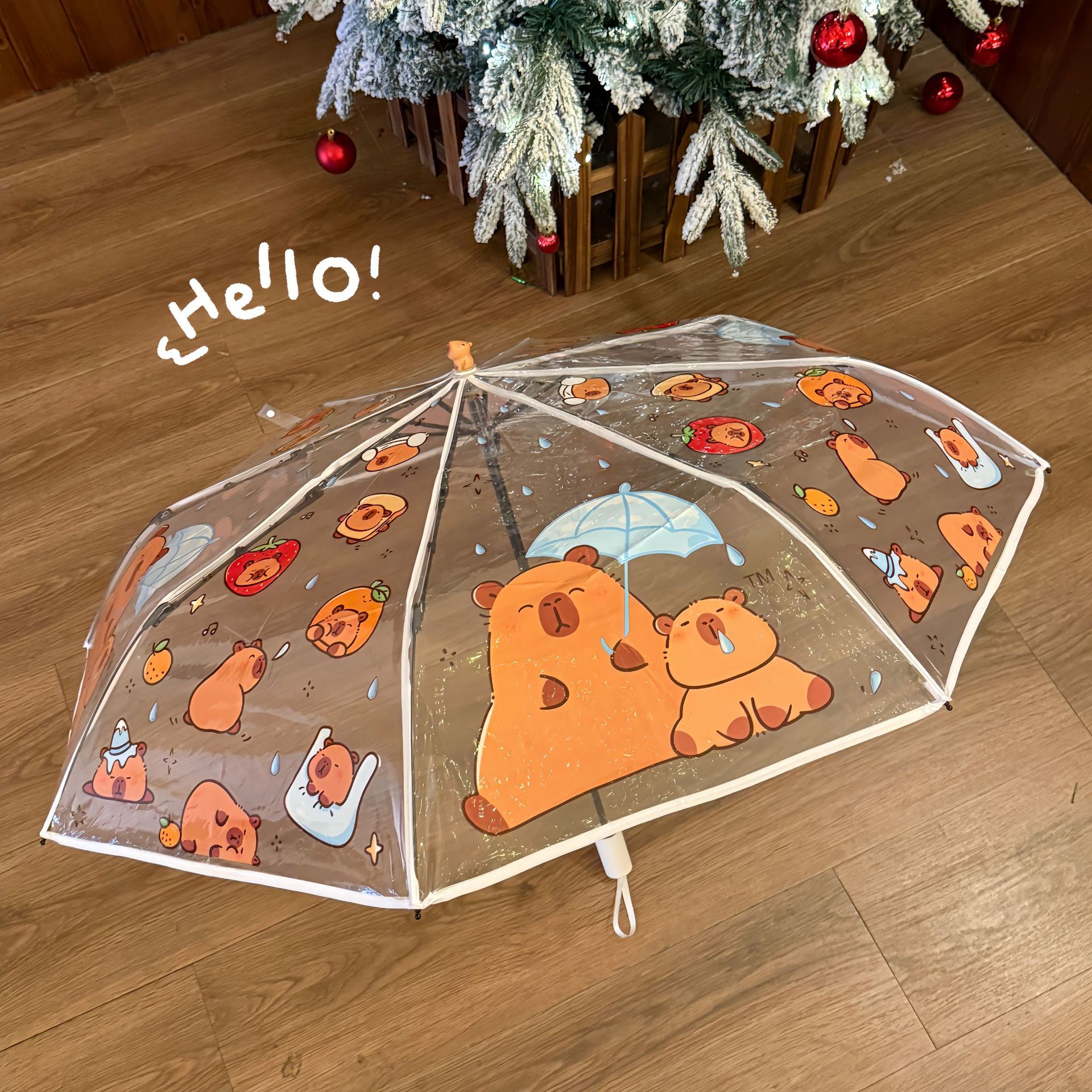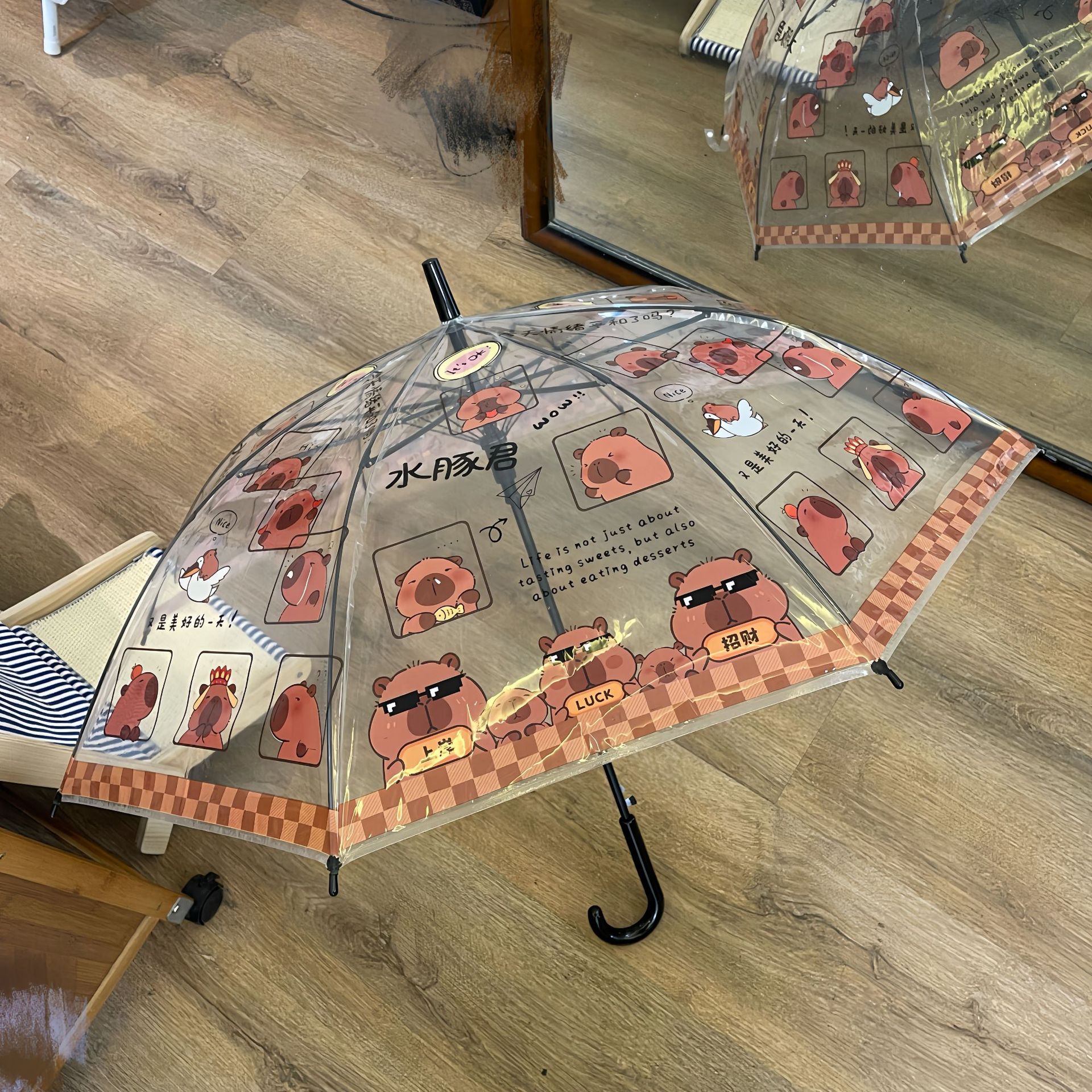 투명 카피바라 우산 70% off 우산 완전 자동 인터넷 연예인 스트레이트 핸들 우산 귀여운 접이식 어린이 성인 애니메이션 여성