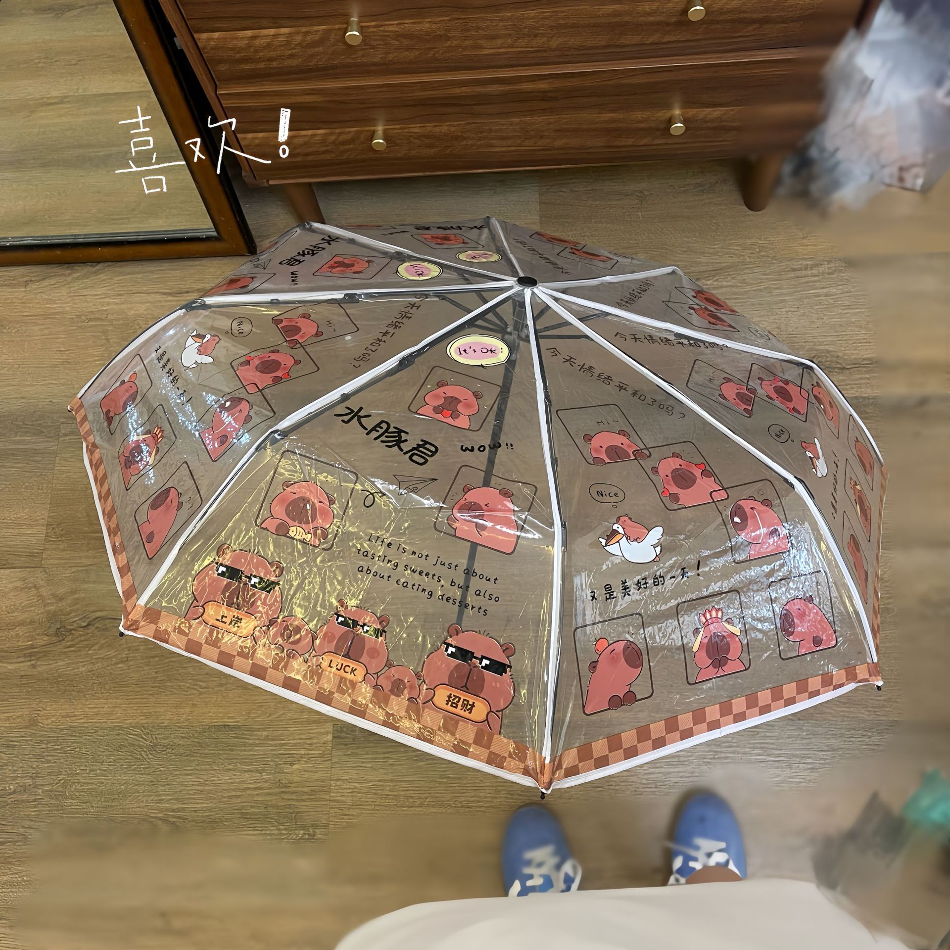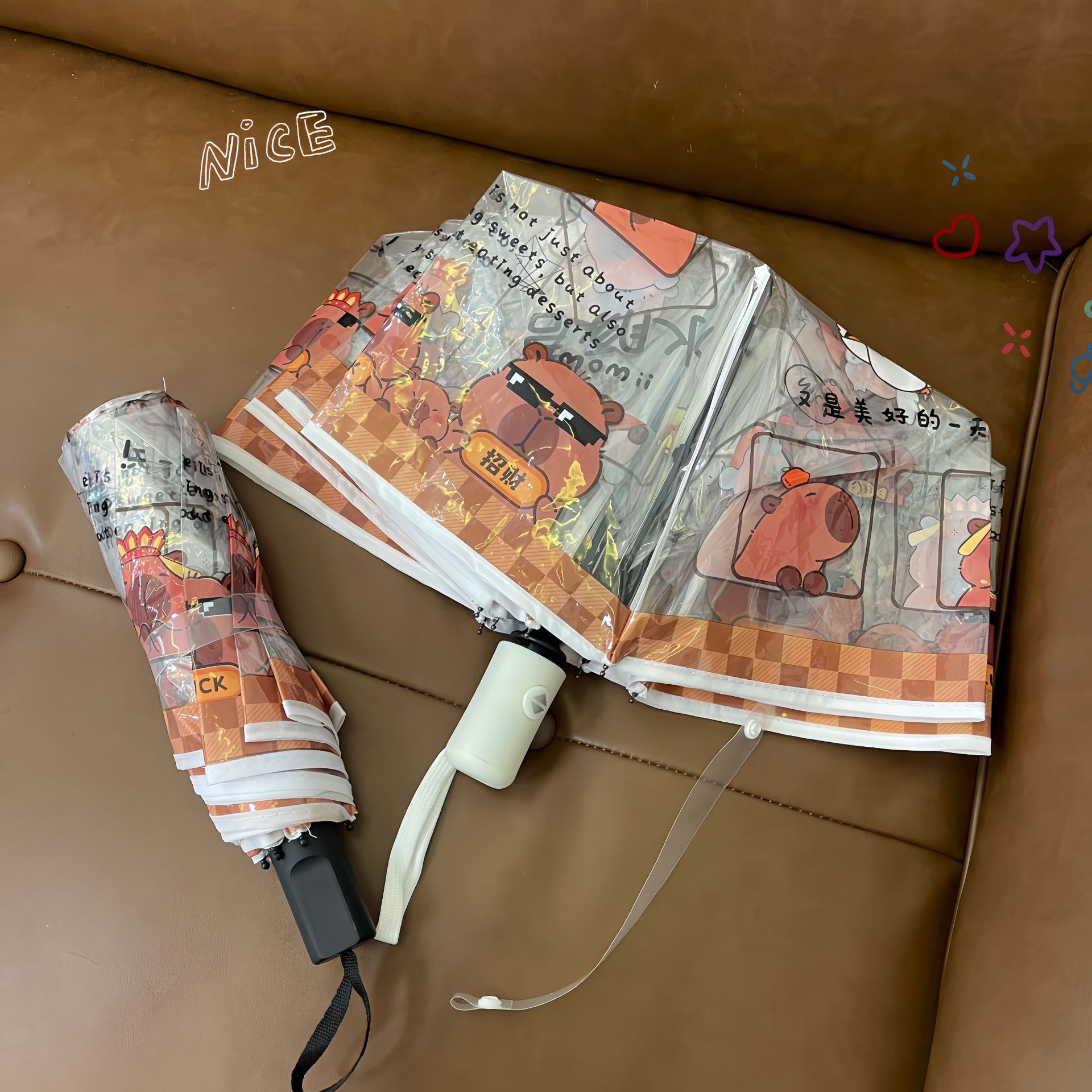 투명 카피바라 우산 70% off 우산 완전 자동 인터넷 연예인 스트레이트 핸들 우산 귀여운 접이식 어린이 성인 애니메이션 여성스토어 가기