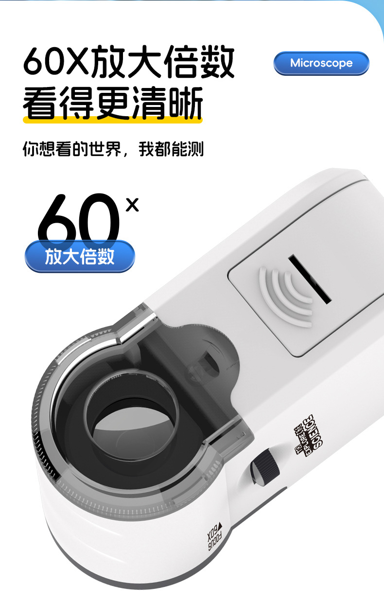 휴대용 미니 현미경 중학교 소년 소녀 선물 키 체인 과학 야외 탐사 어린이 교육 장난감스토어 가기