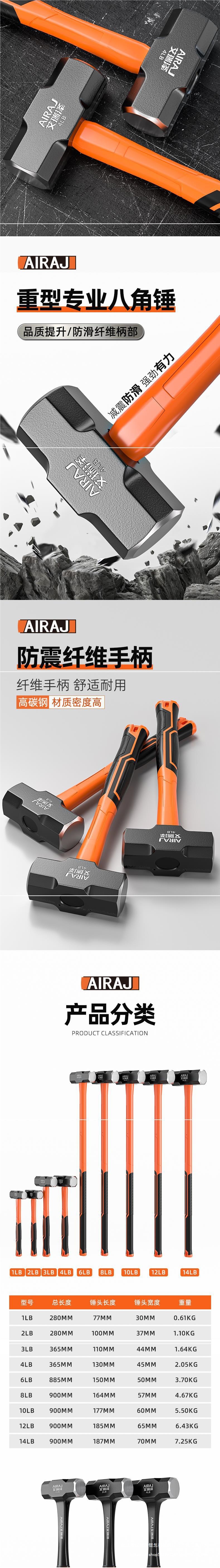 Erez 해머 팔각형 해머 해머 도구 솔리드 벽 해머 통합 헤비 핸드 해머 통합 벽 철거 해머