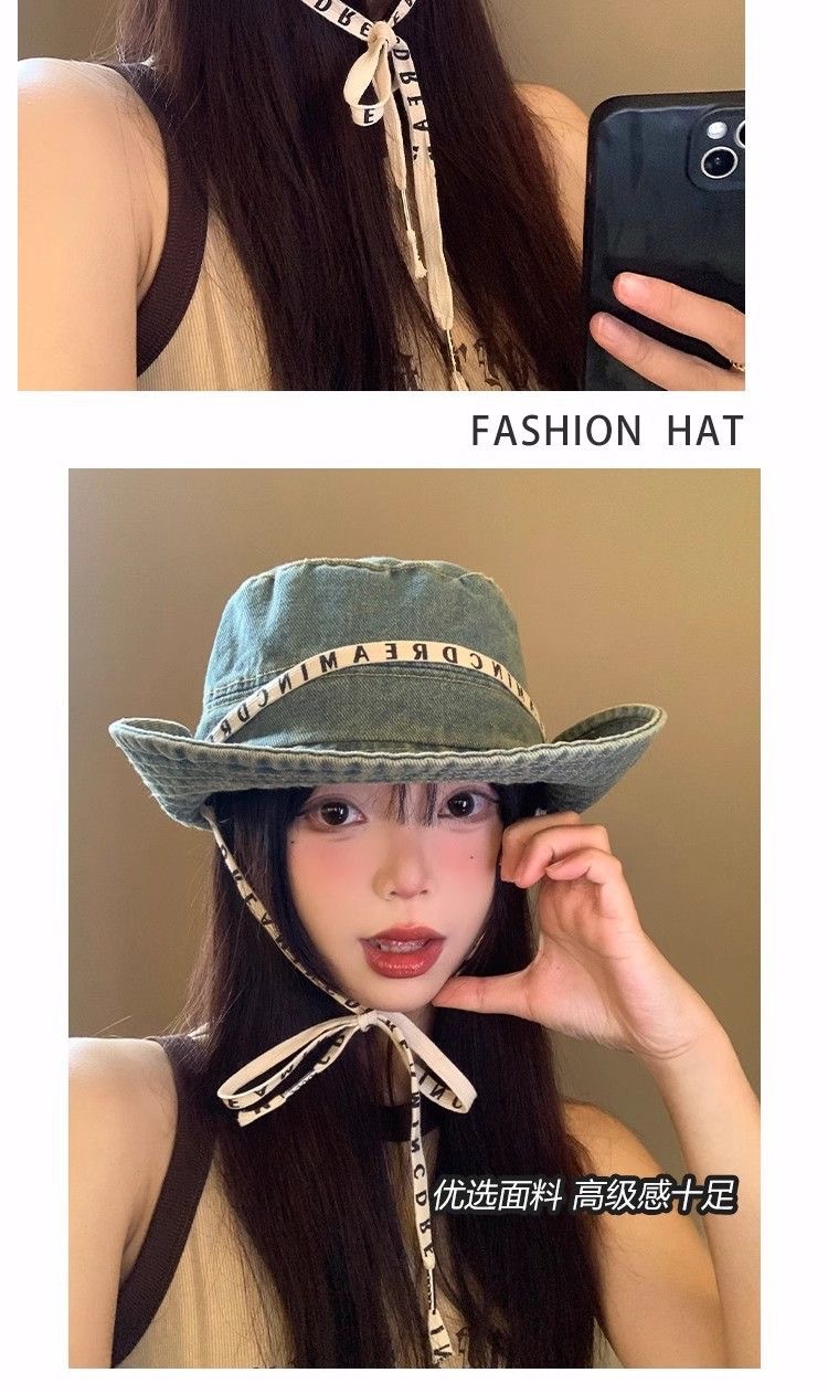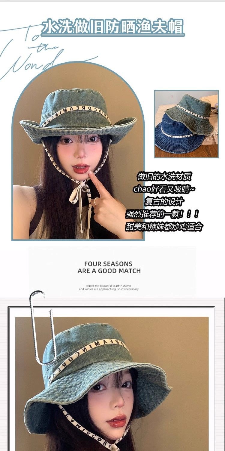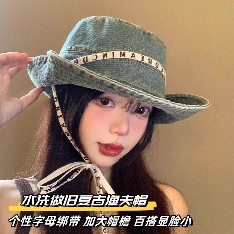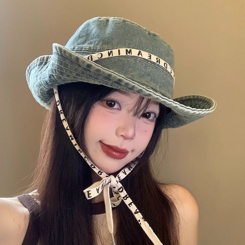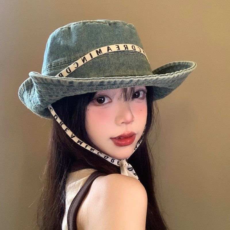 하이킹 모자 여름 새로운 2025 한국 모자 편지 스트랩 카우보이 어부 모자 여성 야외 하이킹 태양 모자