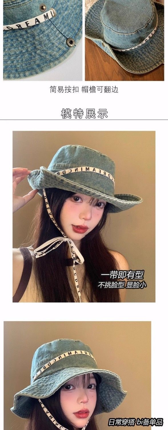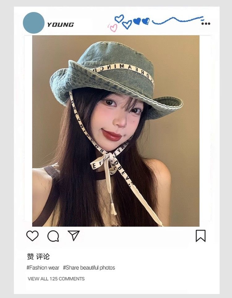 하이킹 모자 여름 새로운 2025 한국 모자 편지 스트랩 카우보이 어부 모자 여성 야외 하이킹 태양 모자스토어 가기