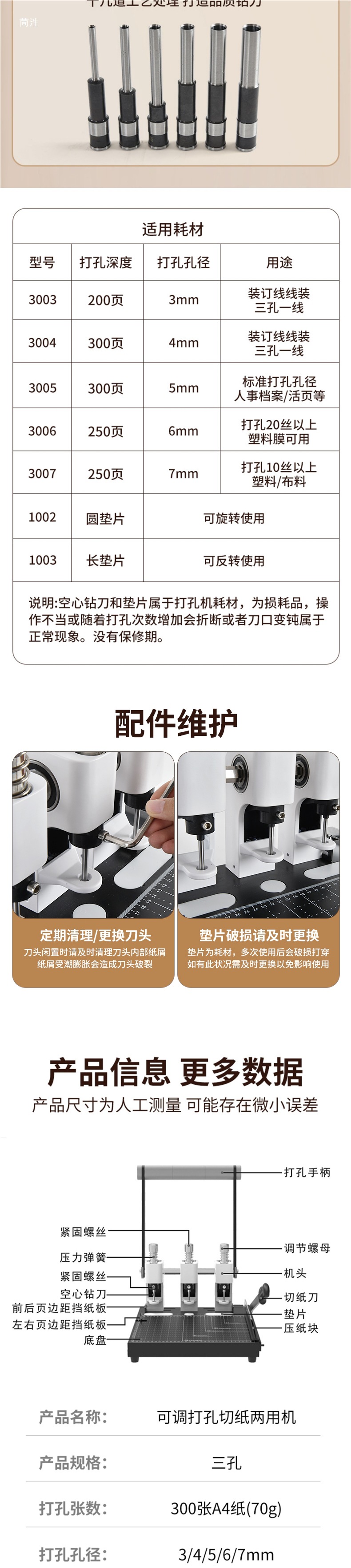 • 3홀 + 종이 절단기 [300페이지 인쇄 가능] 무료 5mm 드릴 비트