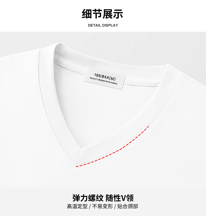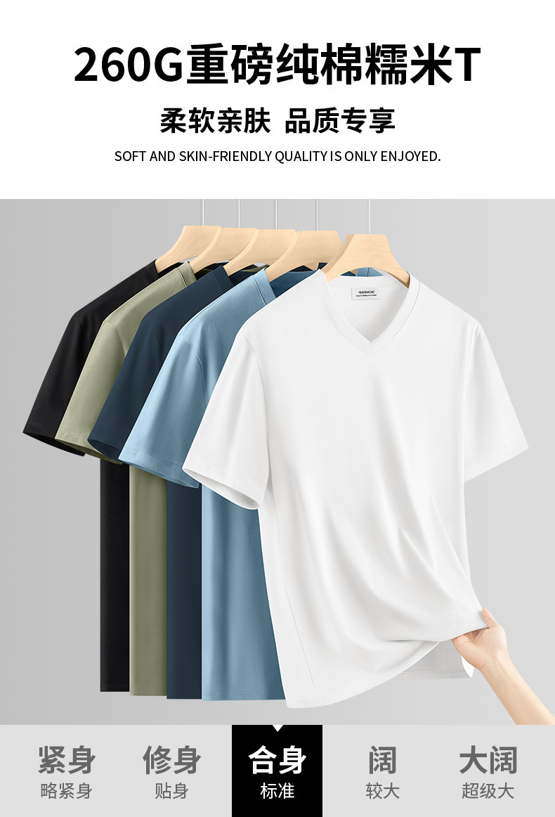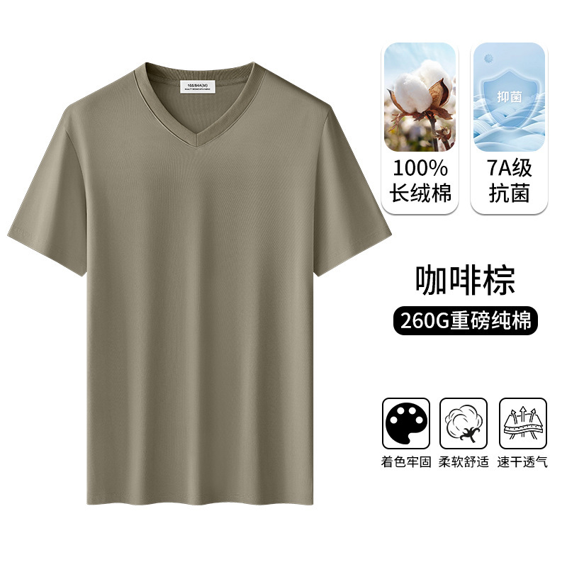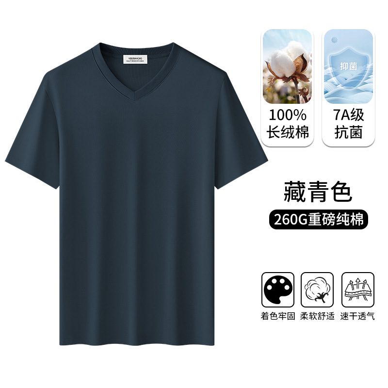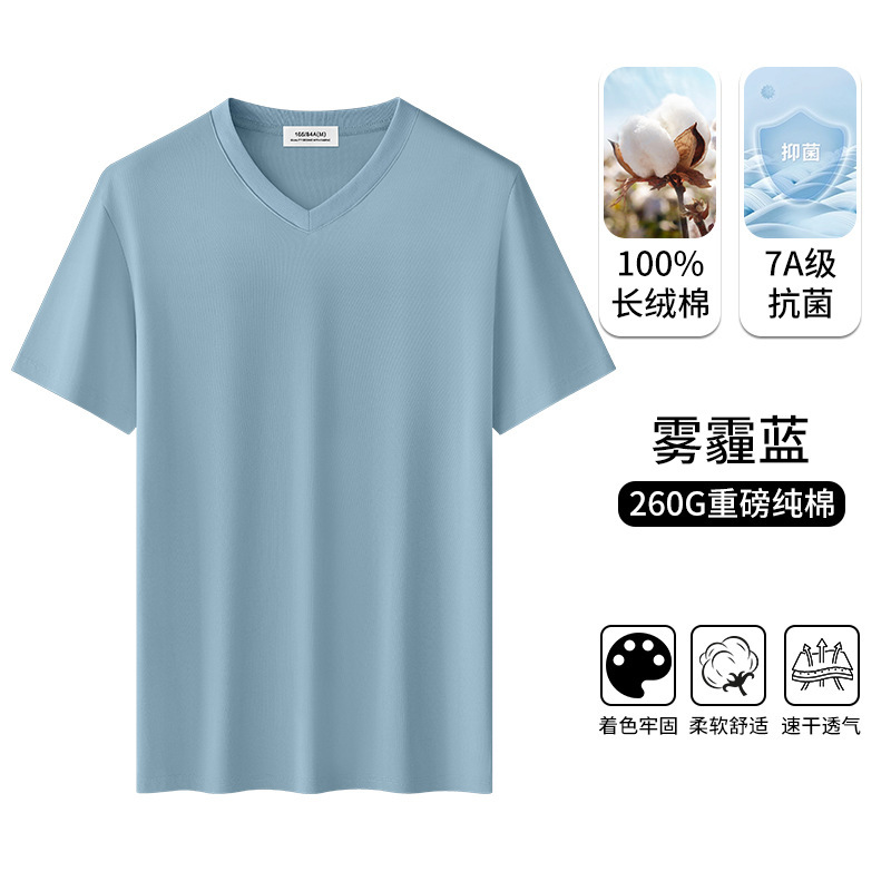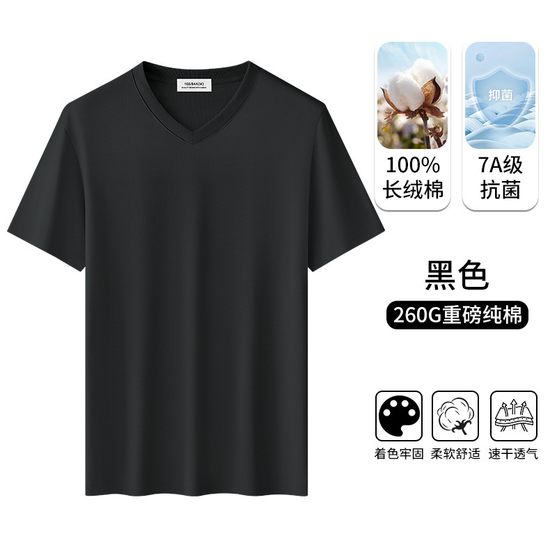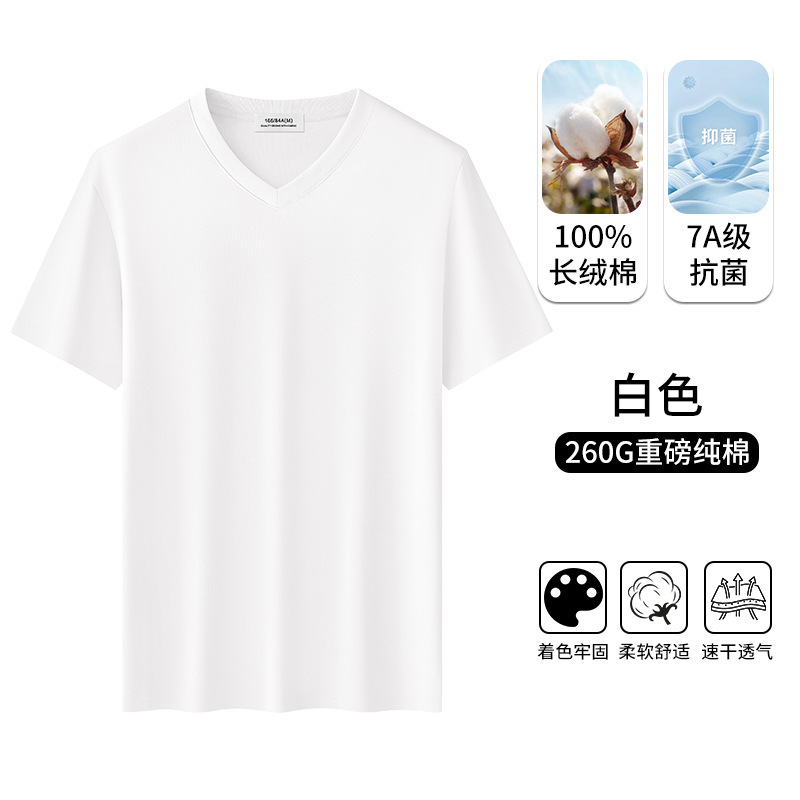 260G 헤비 신장 긴 스테이플 코튼 V 넥 반팔 티셔츠 남성 여름 새로운 항균 하이 엔드 퓨어 코튼 치킨 하트 칼라 티셔츠스토어 가기