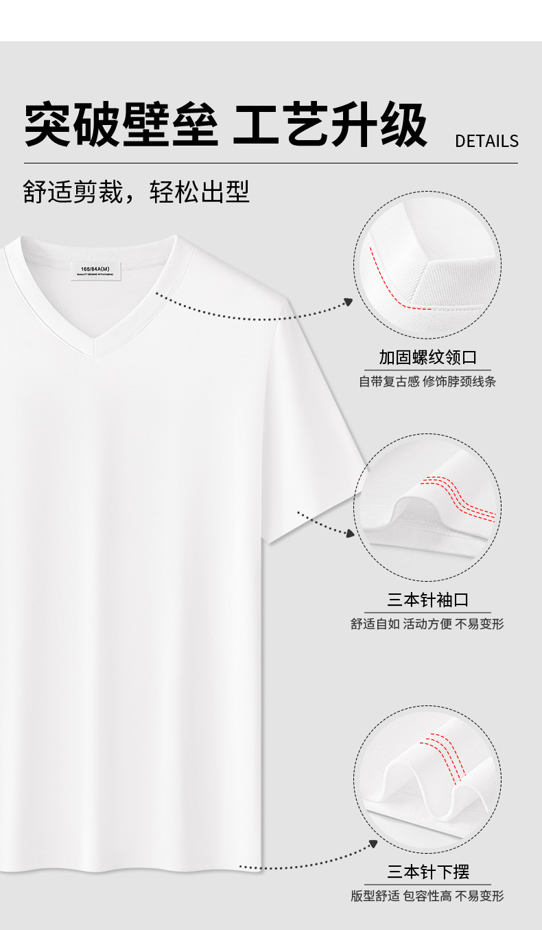 260G 헤비 신장 긴 스테이플 코튼 V 넥 반팔 티셔츠 남성 여름 새로운 항균 하이 엔드 퓨어 코튼 치킨 하트 칼라 티셔츠