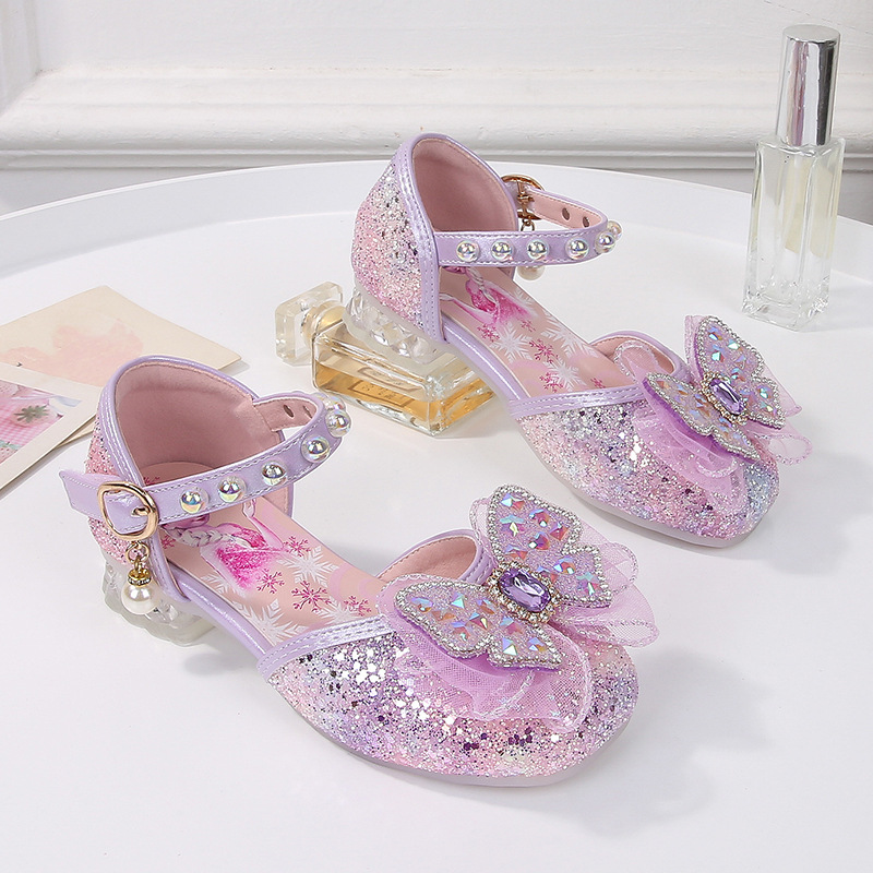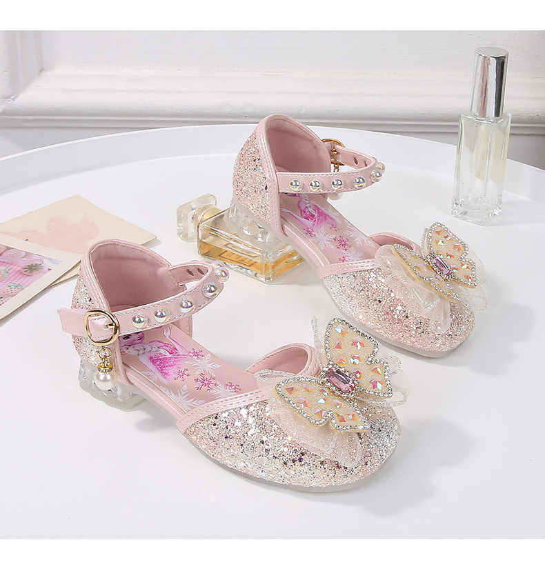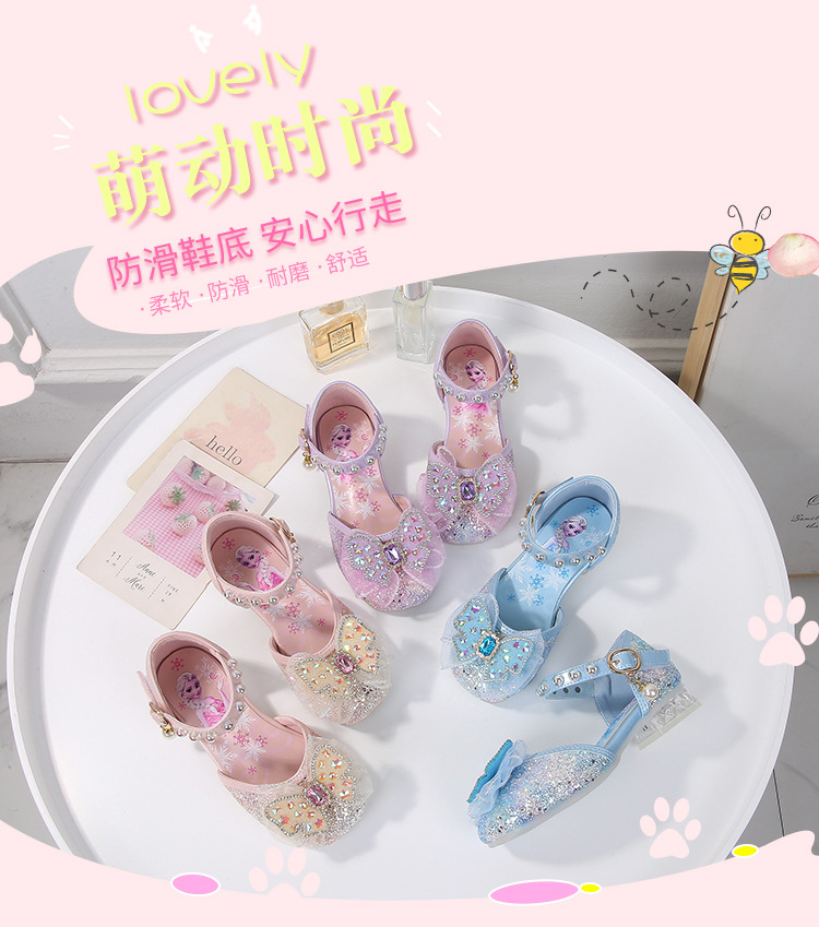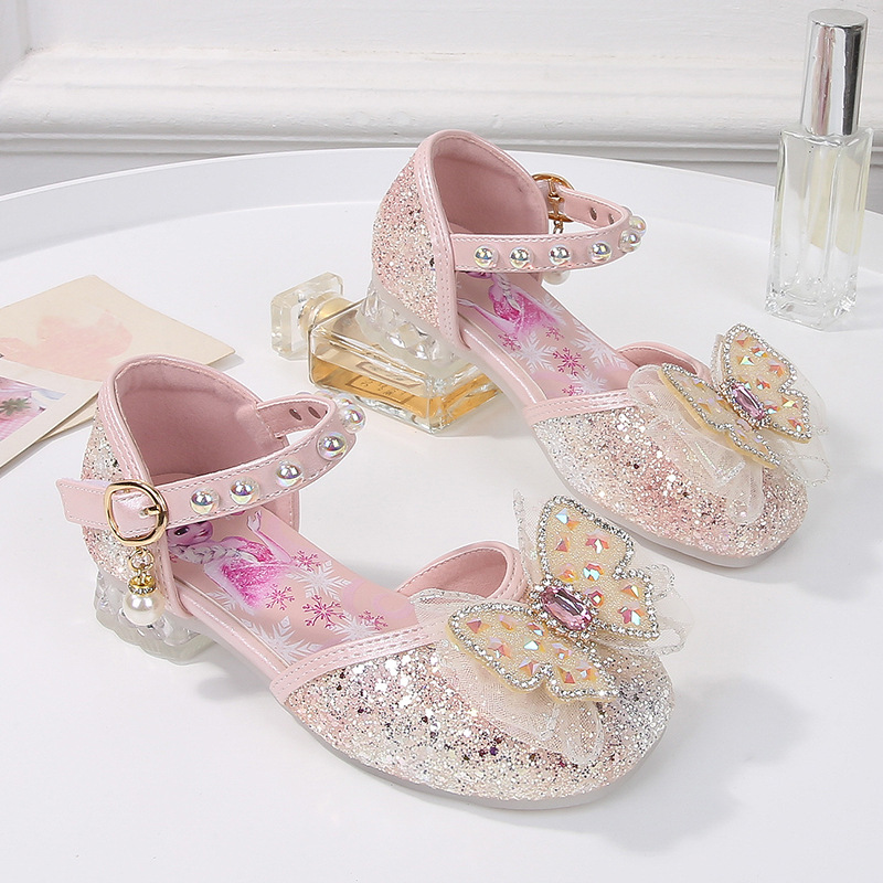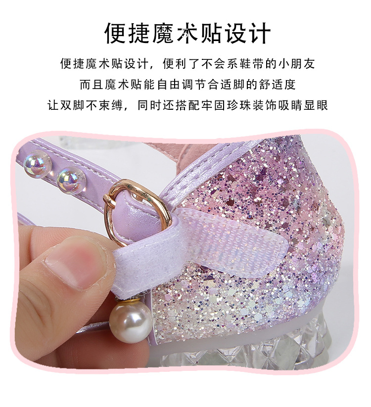 2025 새로운 소녀 샌들 부드러운 바닥 바오터우 공주 신발 모조 다이아몬드 어린이 신발 소녀 크리스탈 신발 재고 도매