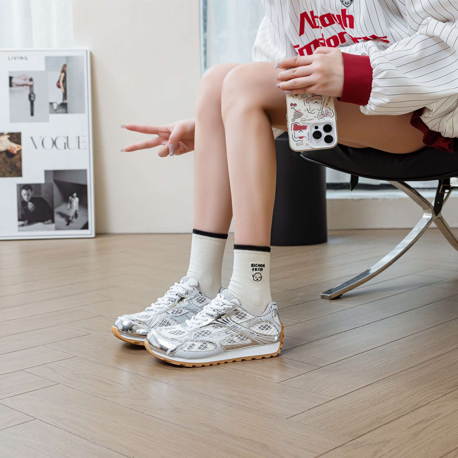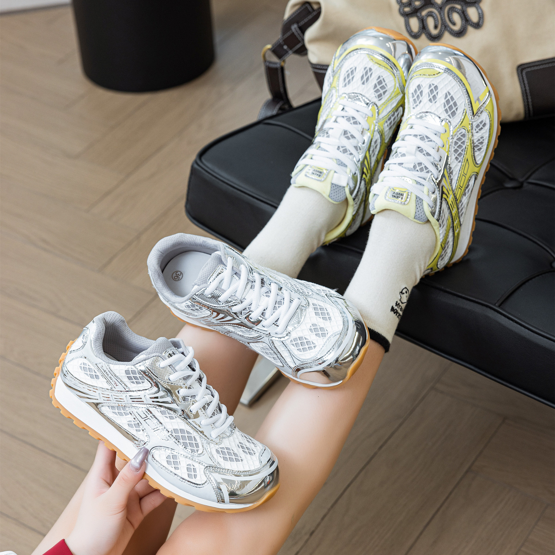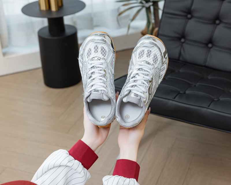 Net red BV Wang Yibo Zhou Yutong, 2025 새로운 캐주얼 토레 신발 색상과 일치하는 로우 탑 스포츠 운동화 실버