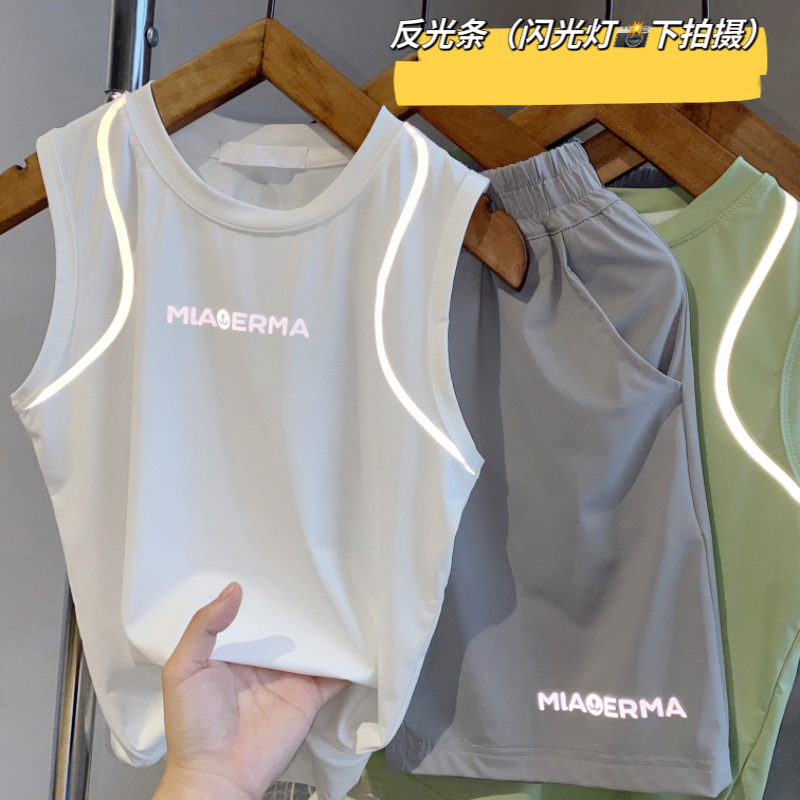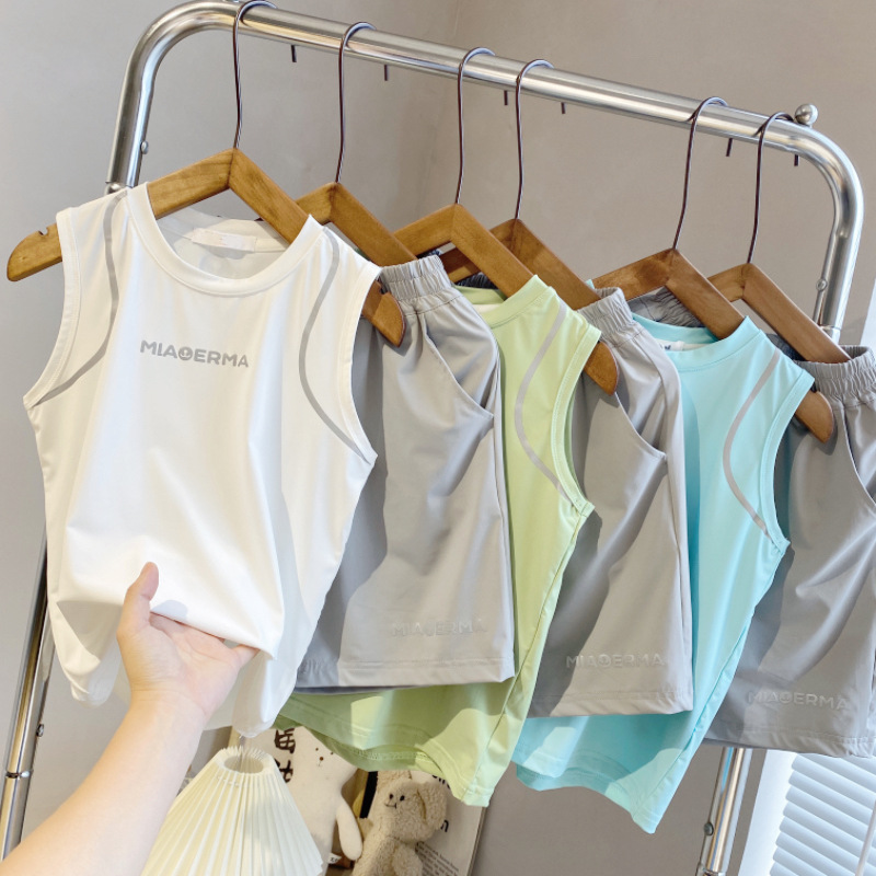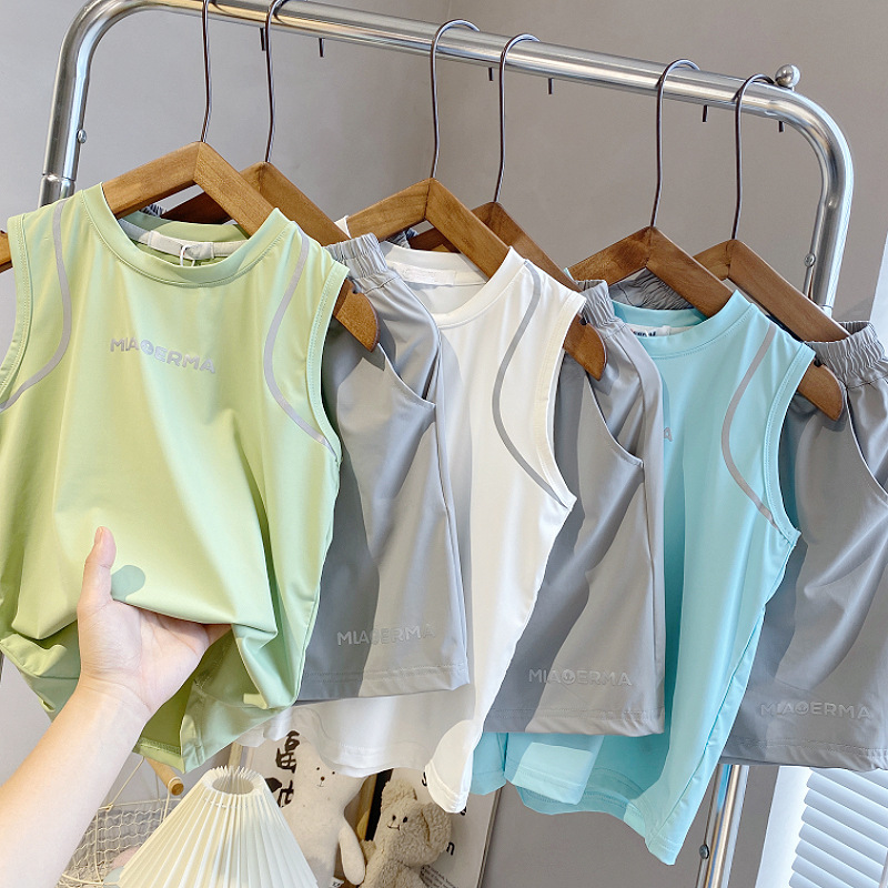아동용 조끼 정장 여름 얇은 민소매 셔츠 소년 스포츠 속건 정장 베이비 탑 티셔츠