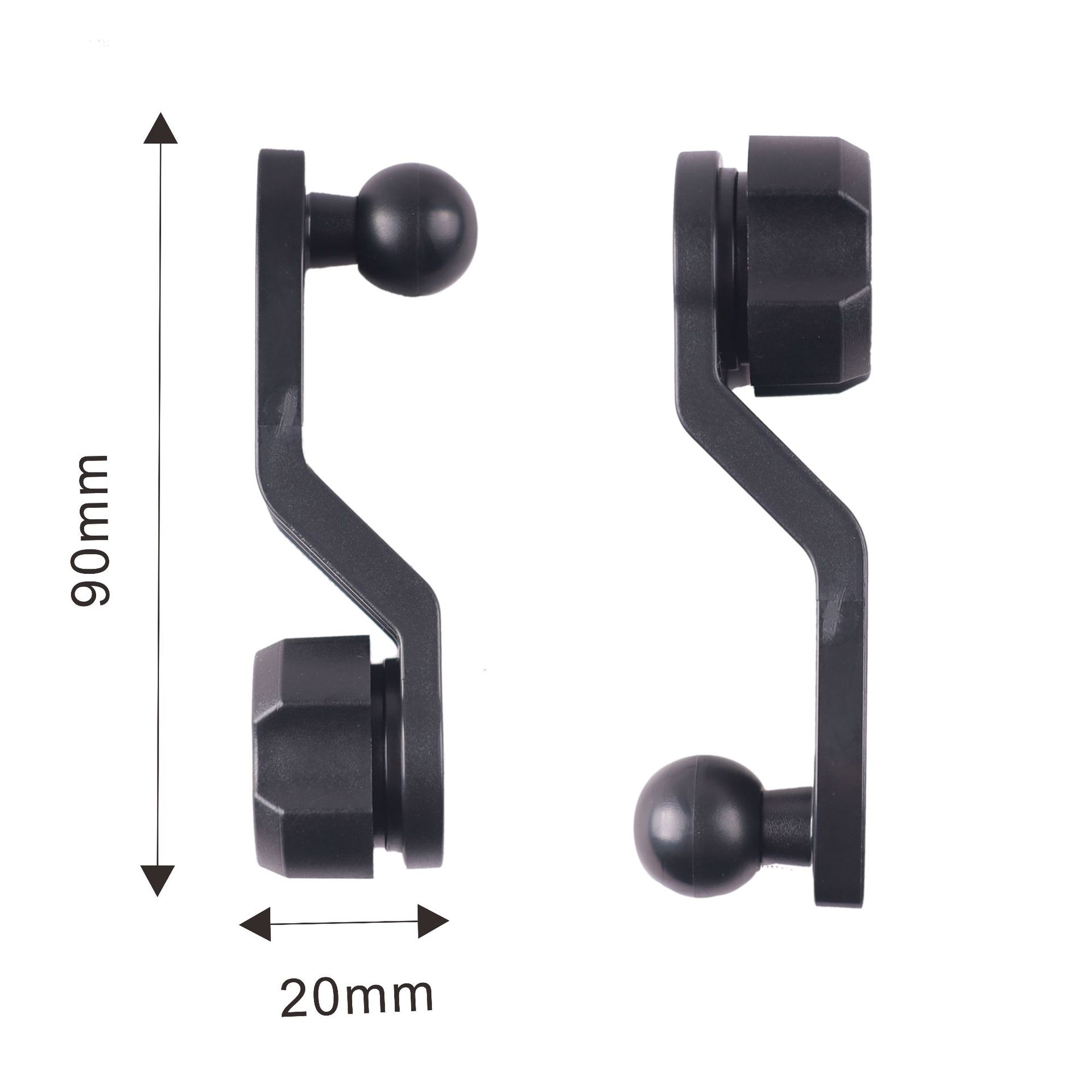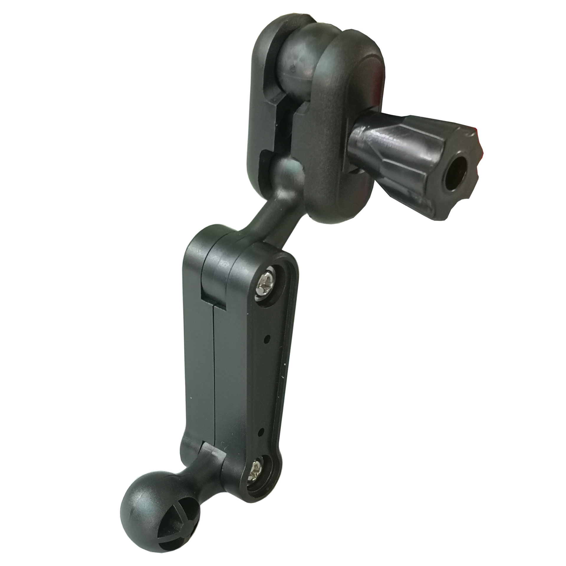 17MM母球头窝转17MM球头延长杆;也有1/4"螺丝孔转17MM球头转换配件,底盖中间是1/4英寸母螺丝孔 ,也有1/4"公螺丝头转17MM球头配件;另外用双球头和双光节组合,可多方向调整角度,底座球头调整好角度后可收紧旋钮,PP袋装,60克;可配合各种四分之一公螺丝头自拍杆,直播三角架,手机支架,补光灯,摄像器材,运动相机等设备使用; 机械臂款是塑料底座,扭紧螺帽收紧;双关节款底座是金属 ,扭紧侧面小钮收紧