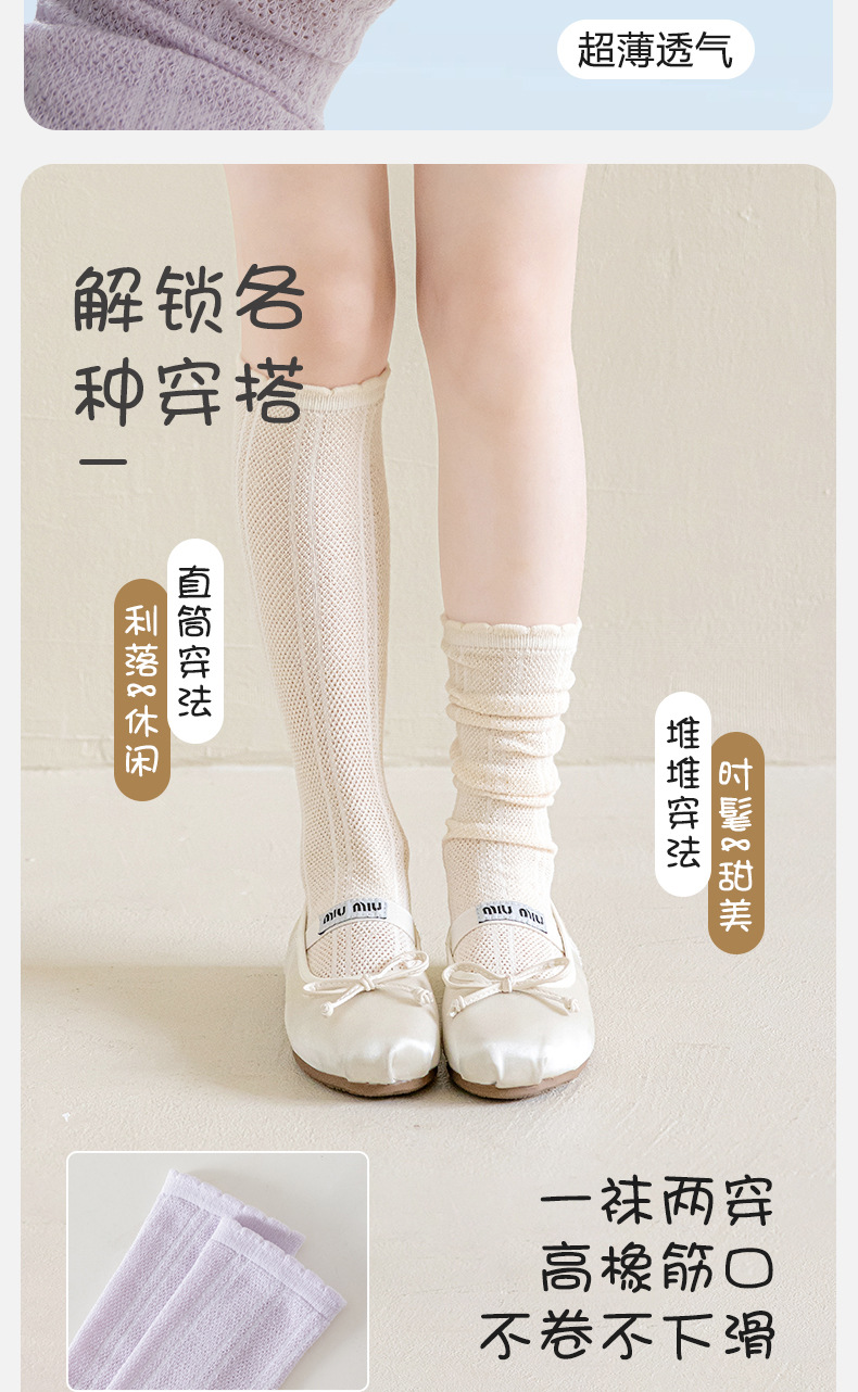 어린이 무릎 양말 여름 얇은 소녀 스타킹 메쉬 통기성 종아리 양말 모기 양말 더미 양말 도매스토어 가기