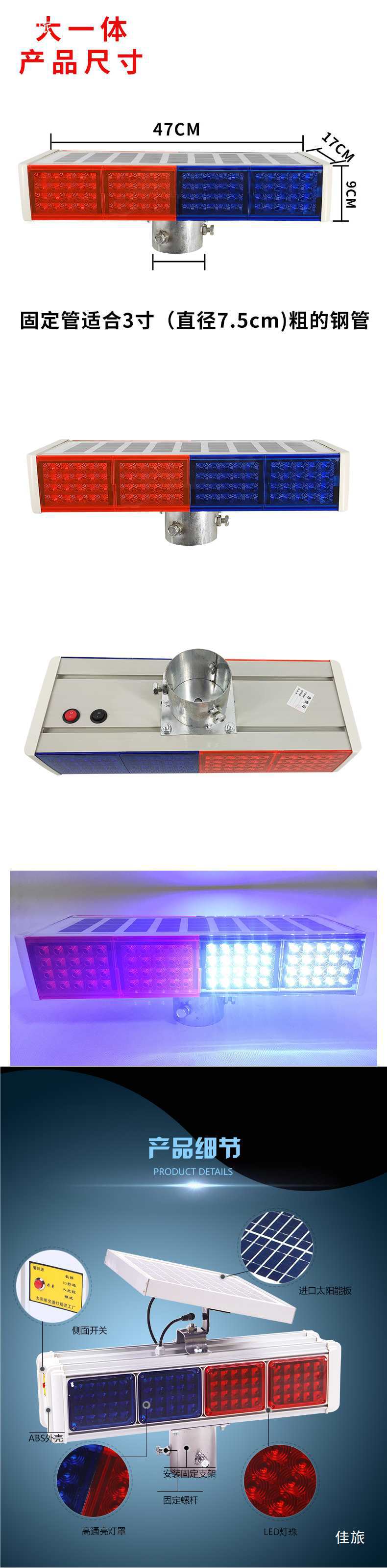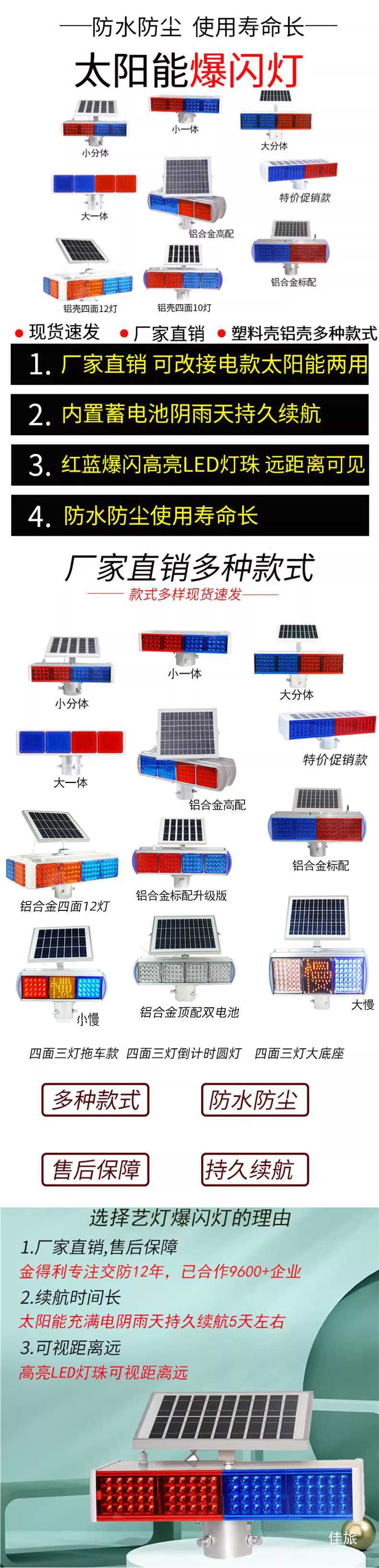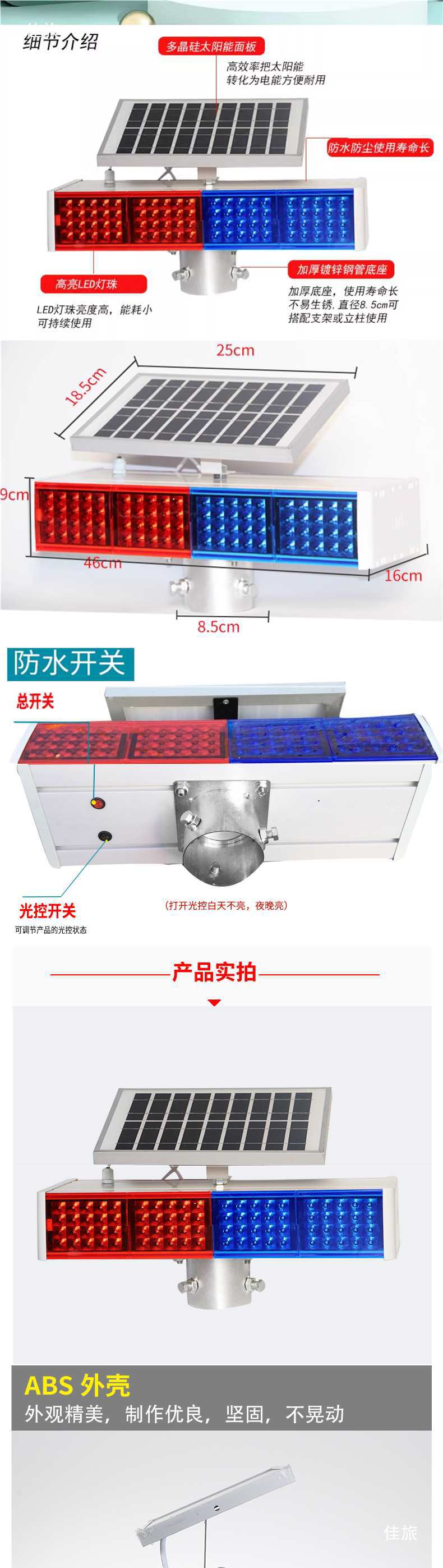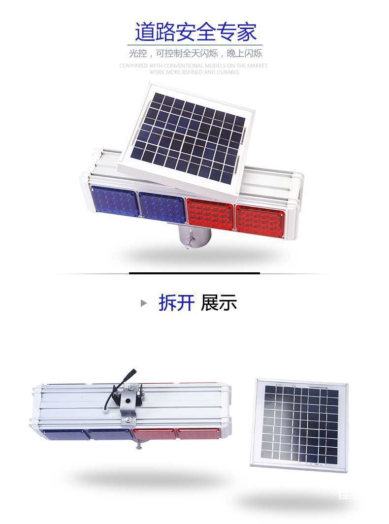 태양광 스트로브 라이트 회전등 교통 알루미늄 쉘 경고등 도로 건설 바리케이드 라이트 LED 빨간색 및 파란색 해바라기 라이트