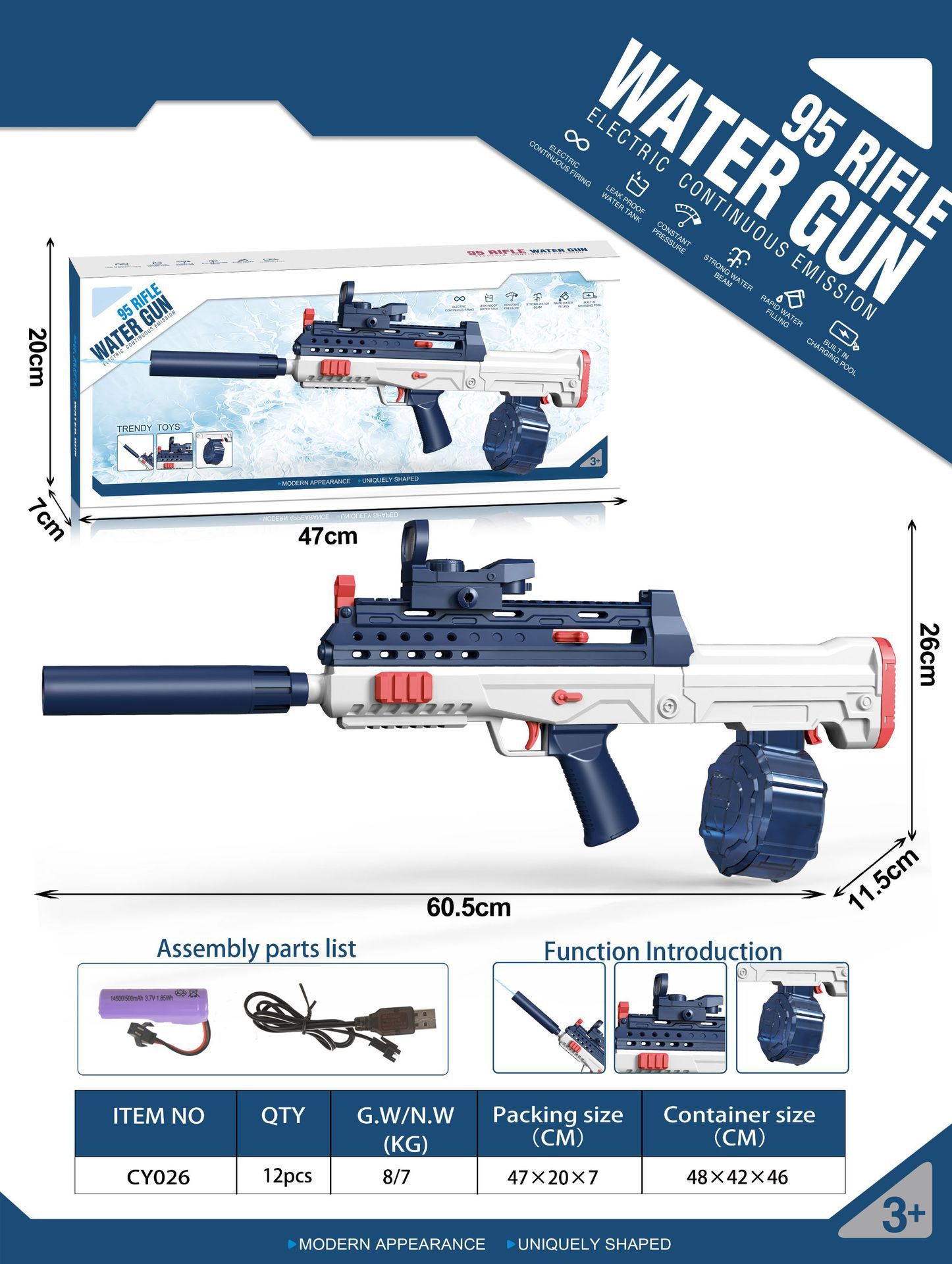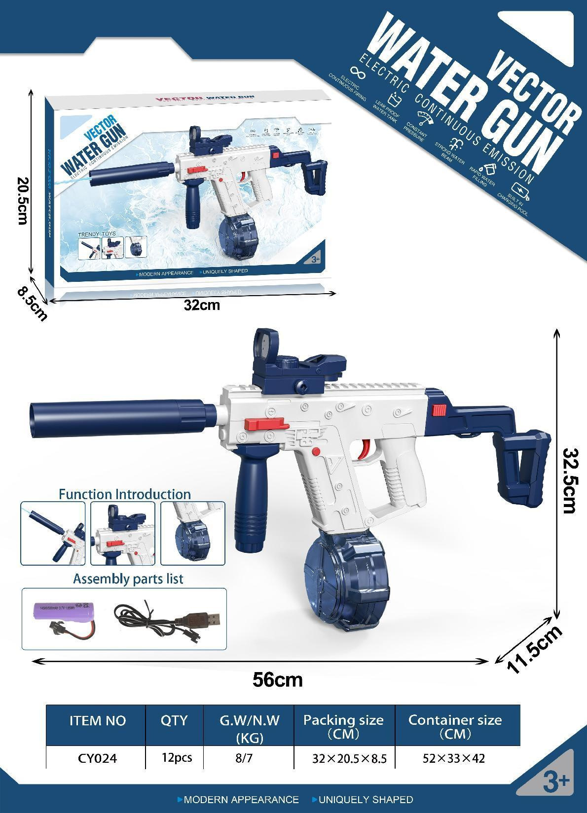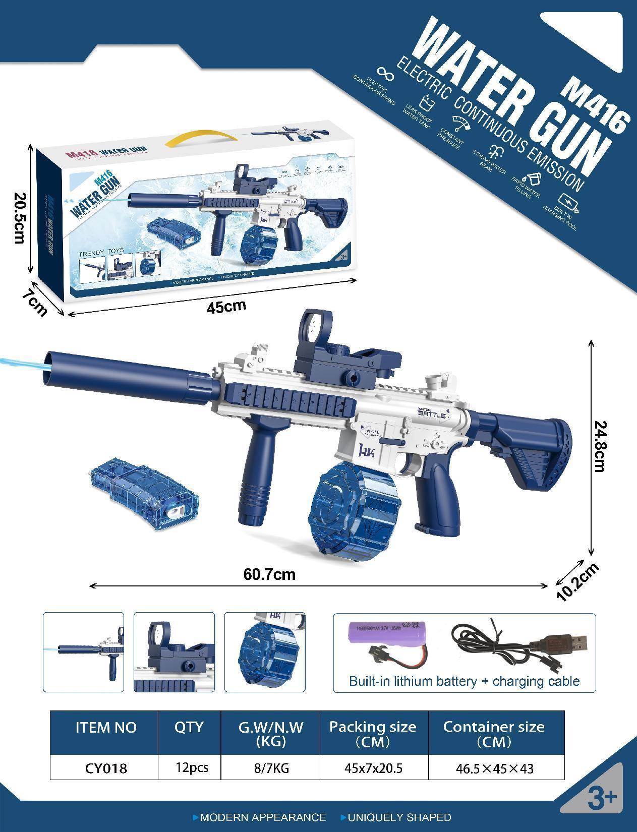• 장검 전기 반복 물총 [파란색] 영어 포장