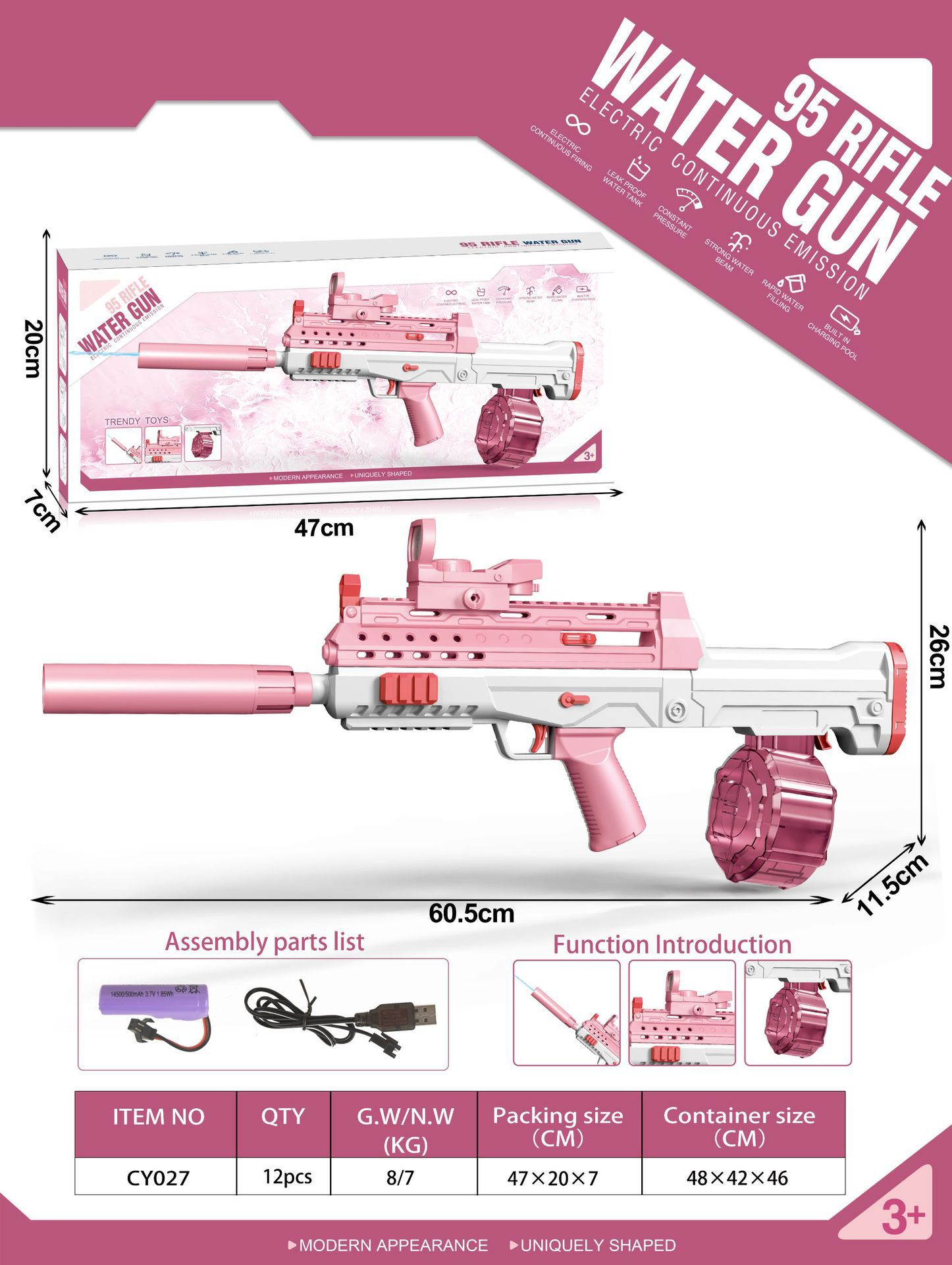 • 95 전기점사물총 [핑크] 영문포장