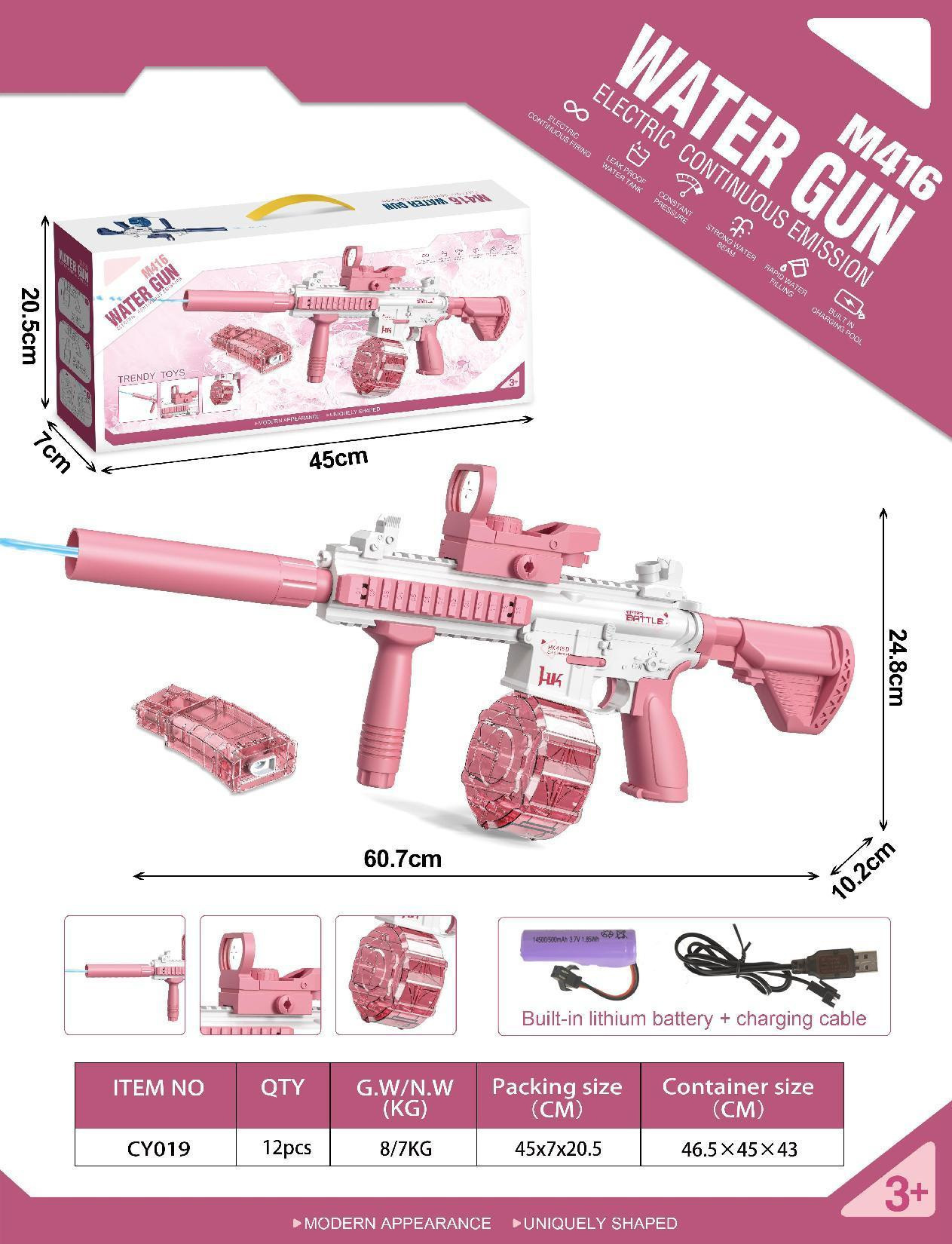 • M416 전기 반복 물총 [핑크] 통신판매 상자
