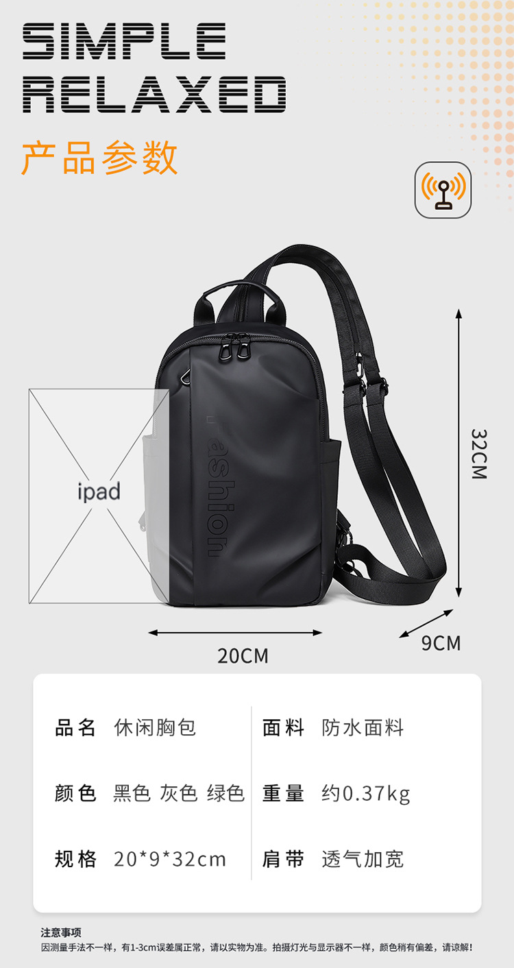 다기능 남성용 체스트백, 대용량 여행용 체스트백, 가볍고 발수성이 뛰어난 나일론 천 가방, 캐주얼하고 활용도가 높은 숄더백스토어 가기