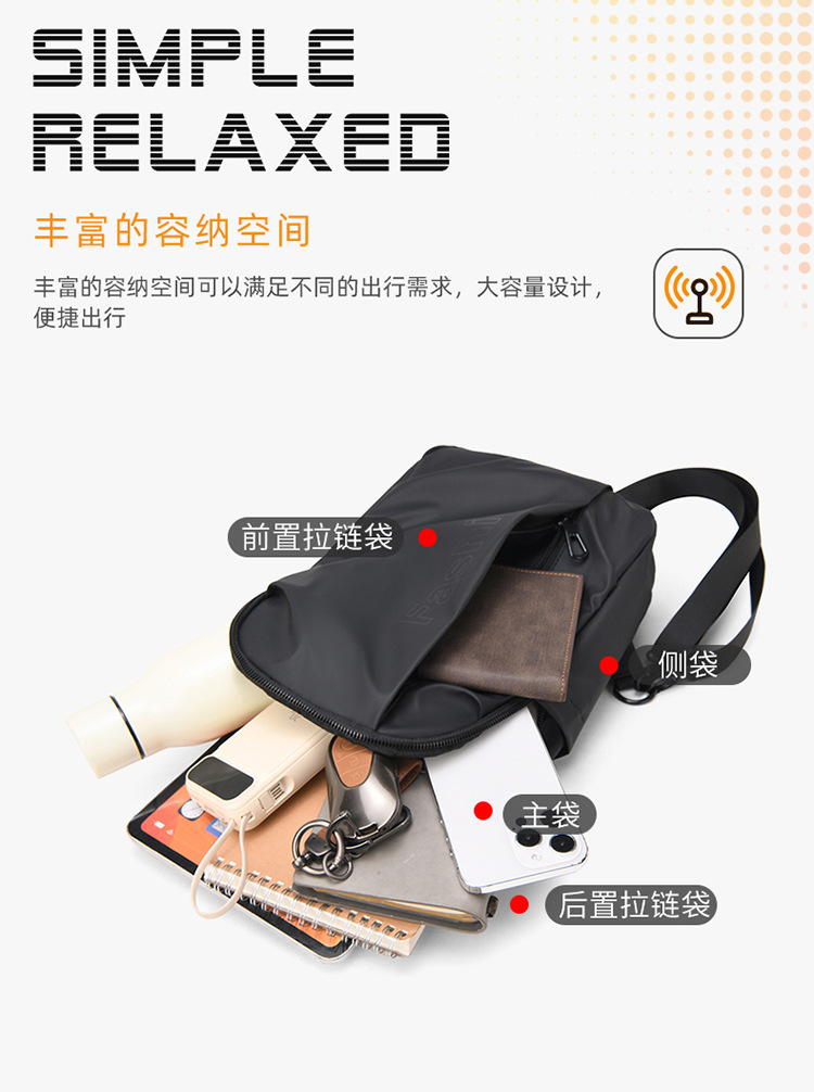 다기능 남성용 체스트백, 대용량 여행용 체스트백, 가볍고 발수성이 뛰어난 나일론 천 가방, 캐주얼하고 활용도가 높은 숄더백