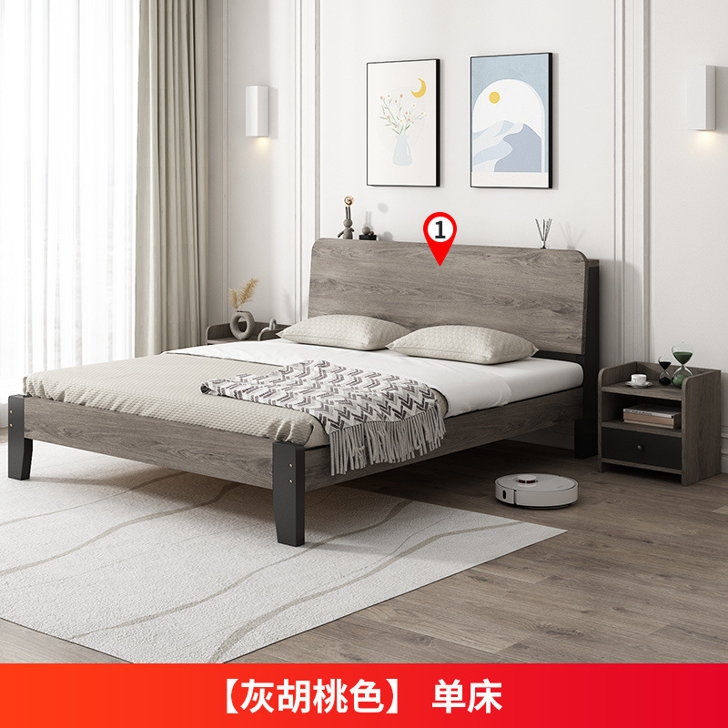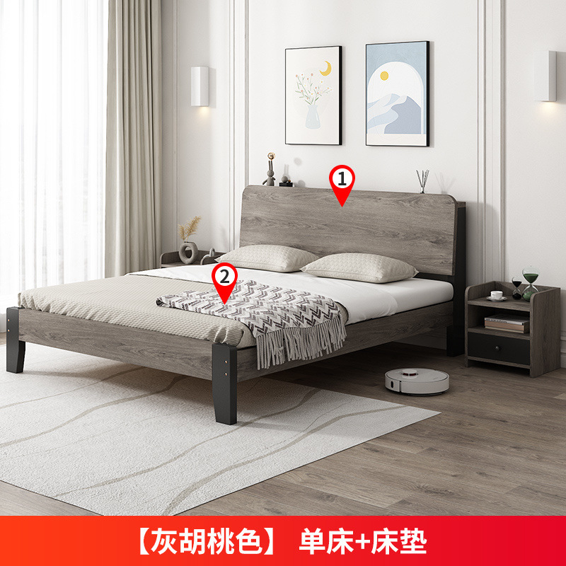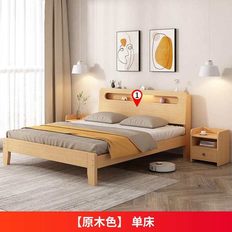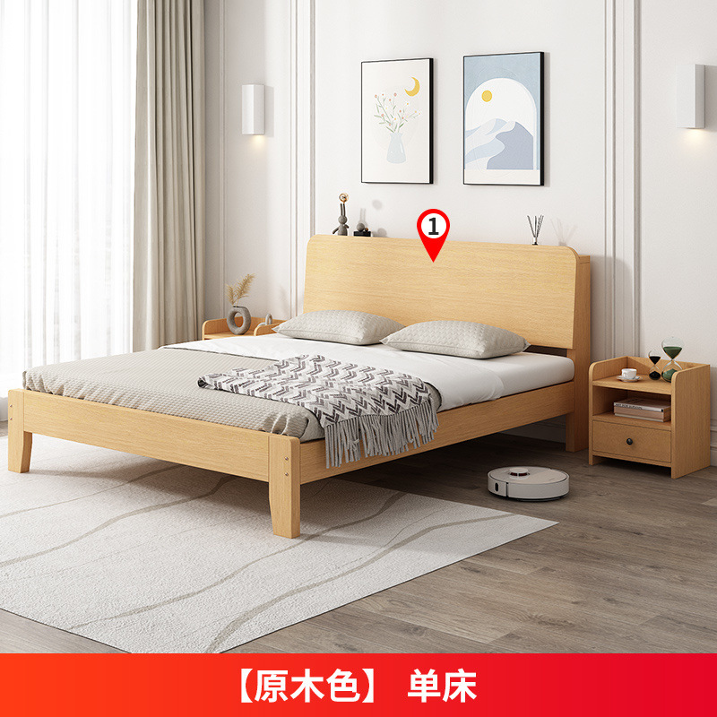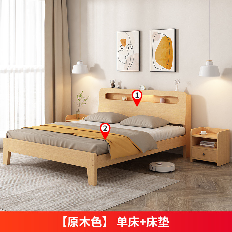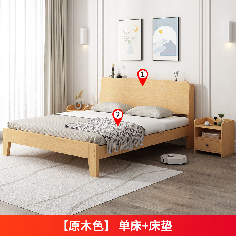원목 침대 1.5m 가정용 마스터 침실 대형 침대 더블 침대 1.8m 싱글 침대 1.2m 임대 주택 현대식 심플
