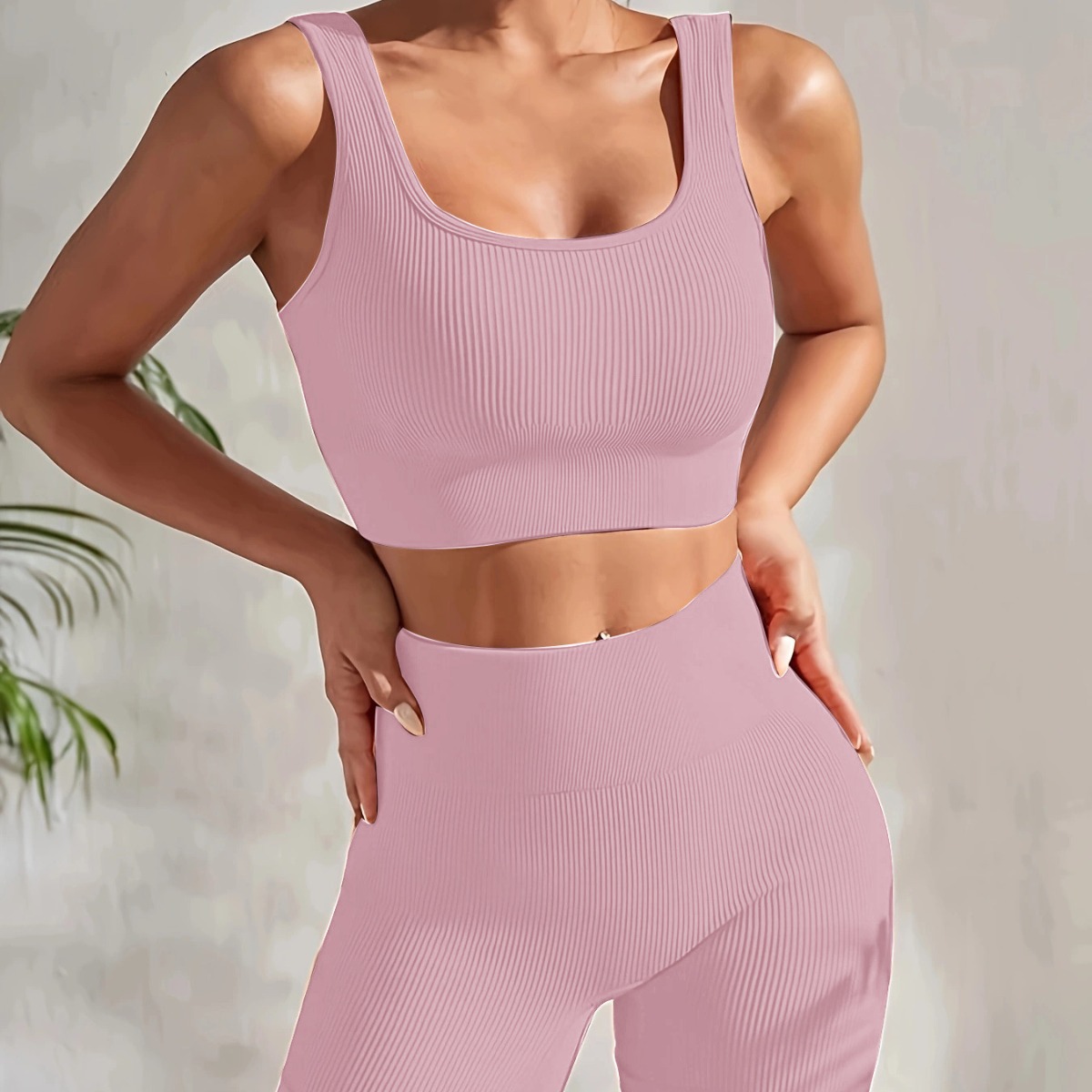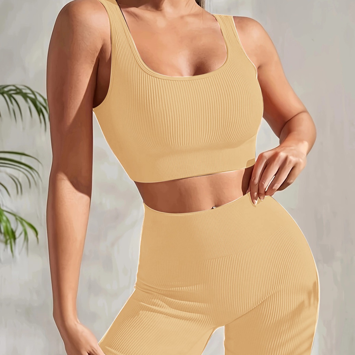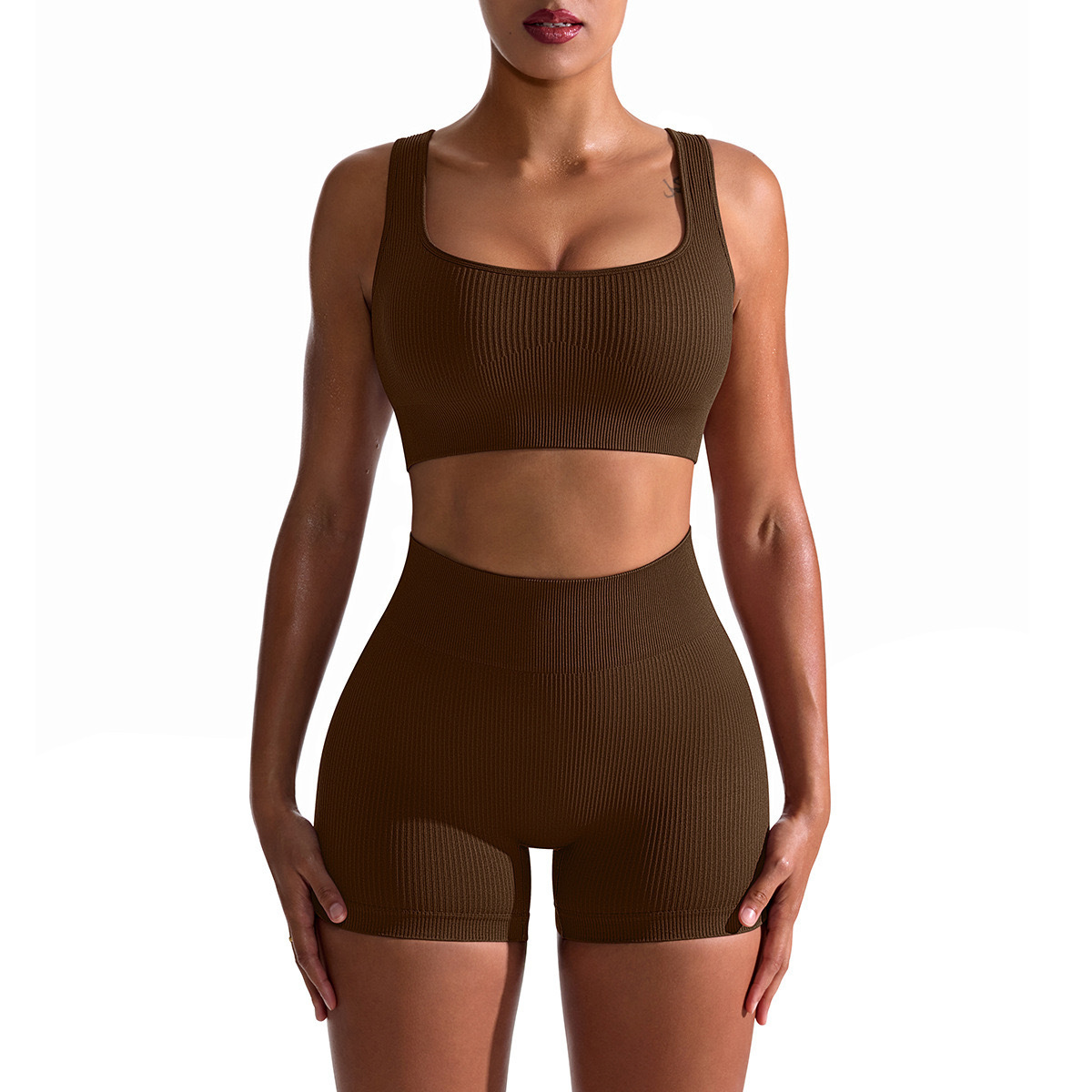 유럽과 미국의 스레드 요가 세트 U자형 이음매 없는 니트 스포츠 피트니스 요가복