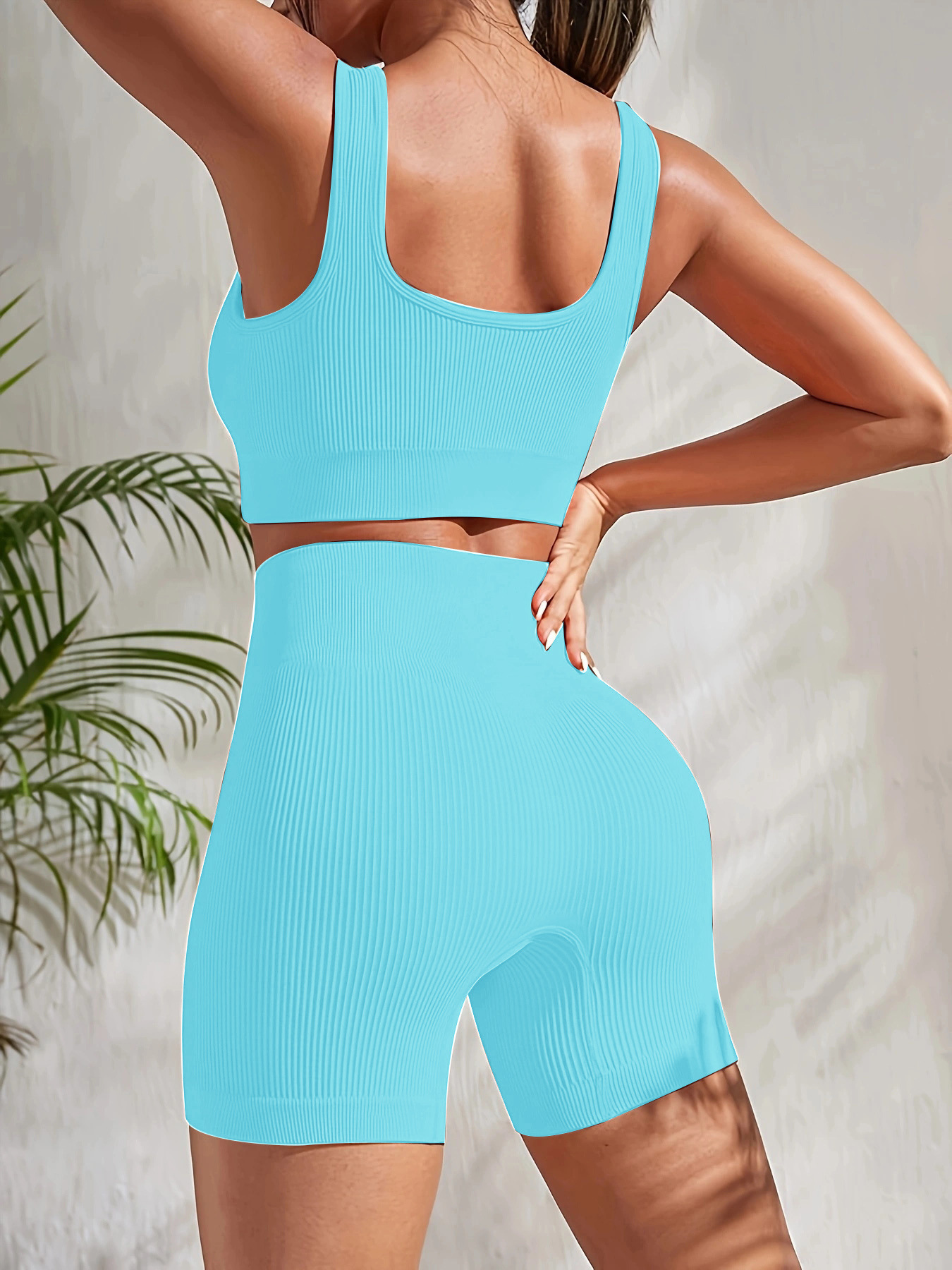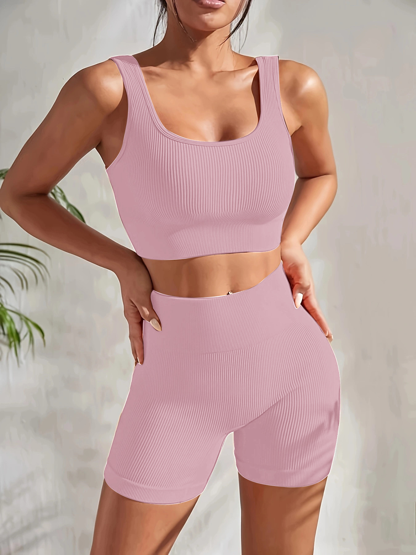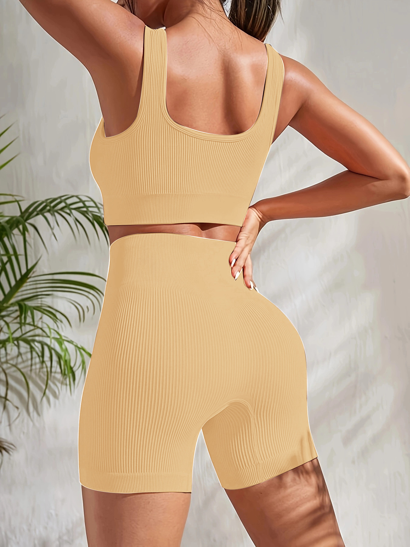 유럽과 미국의 스레드 요가 세트 U자형 이음매 없는 니트 스포츠 피트니스 요가복