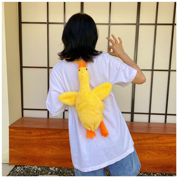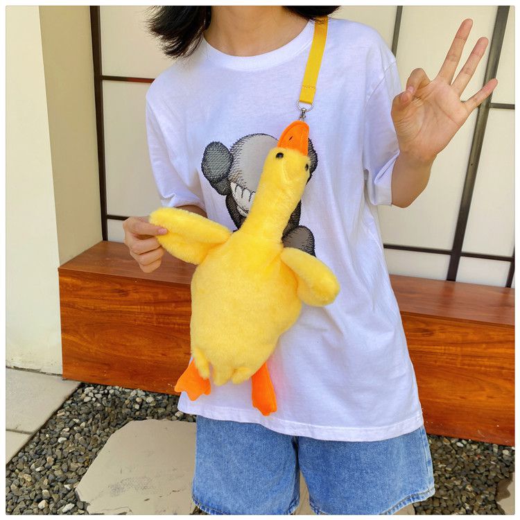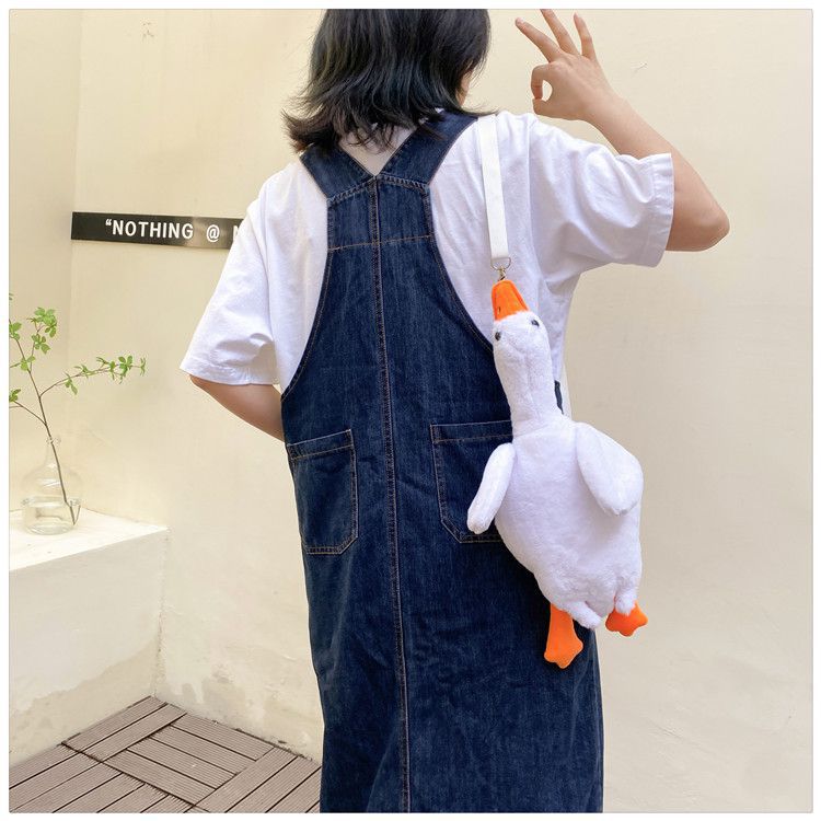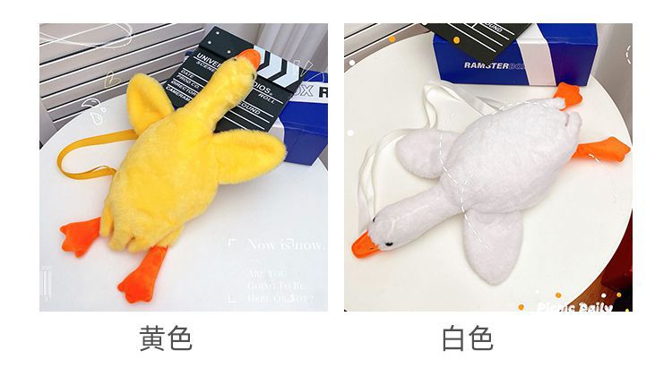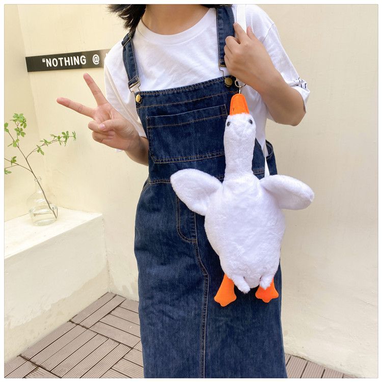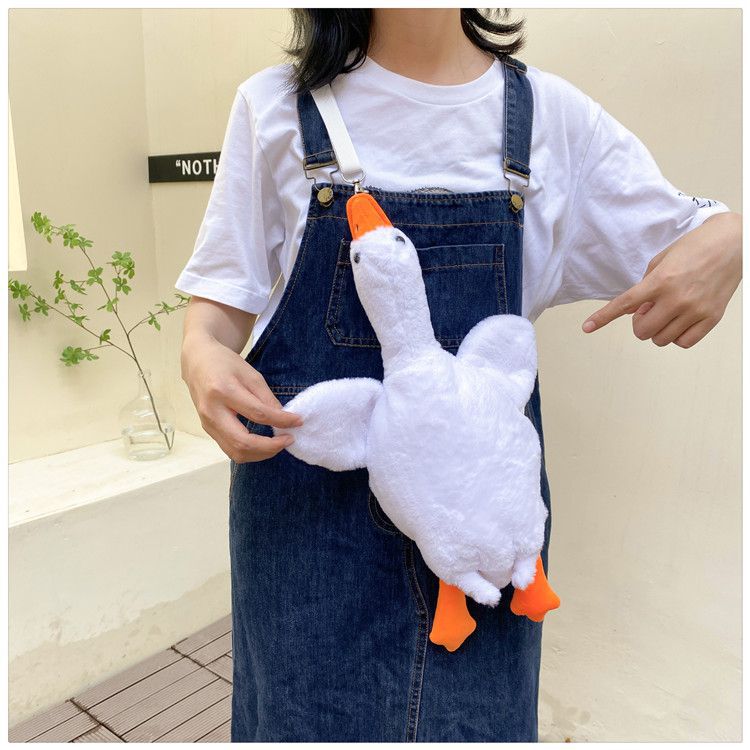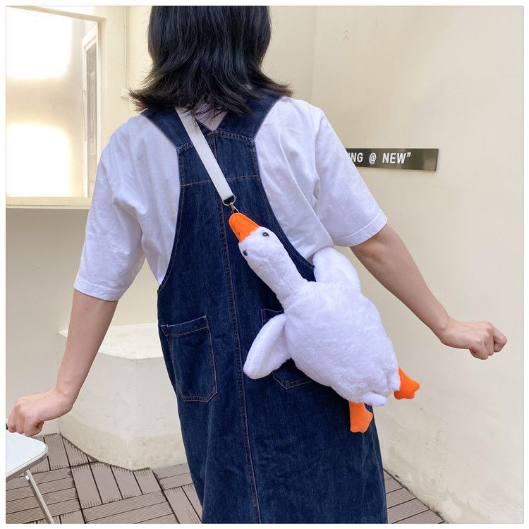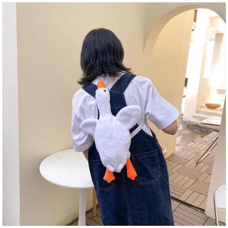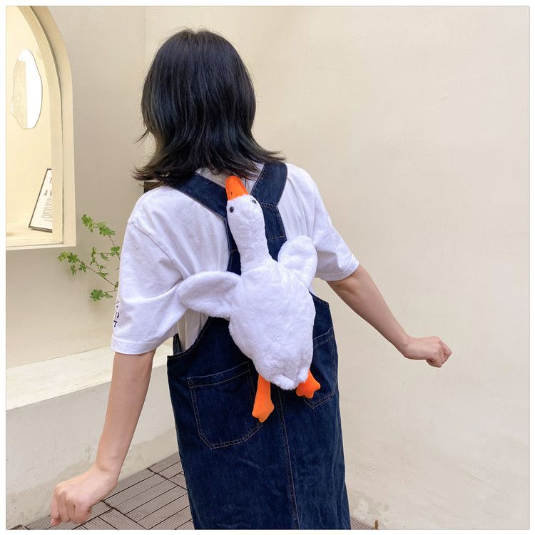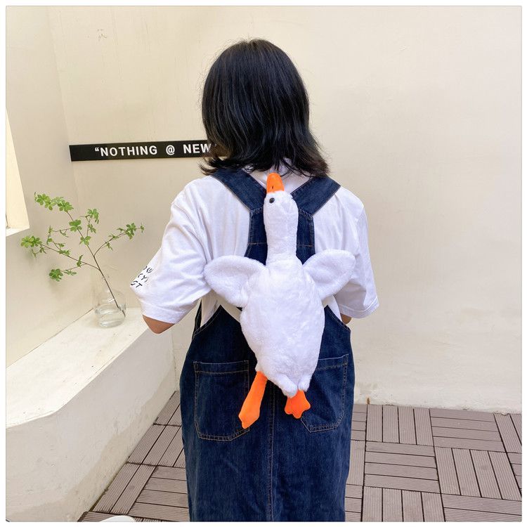귀여운 큰 흰색 거위 봉제 배낭 작은 소녀 인형 선물 어린이 가방 여성의 귀여운 크로스 바디 가방 만화 배낭