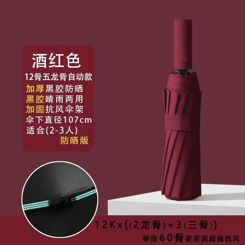 고급 솔리드 우드 핸들 자동 우산 추가 두껍게 강화 된 남성 접이식 우산 맑고 비오는 우산 공장스토어 가기