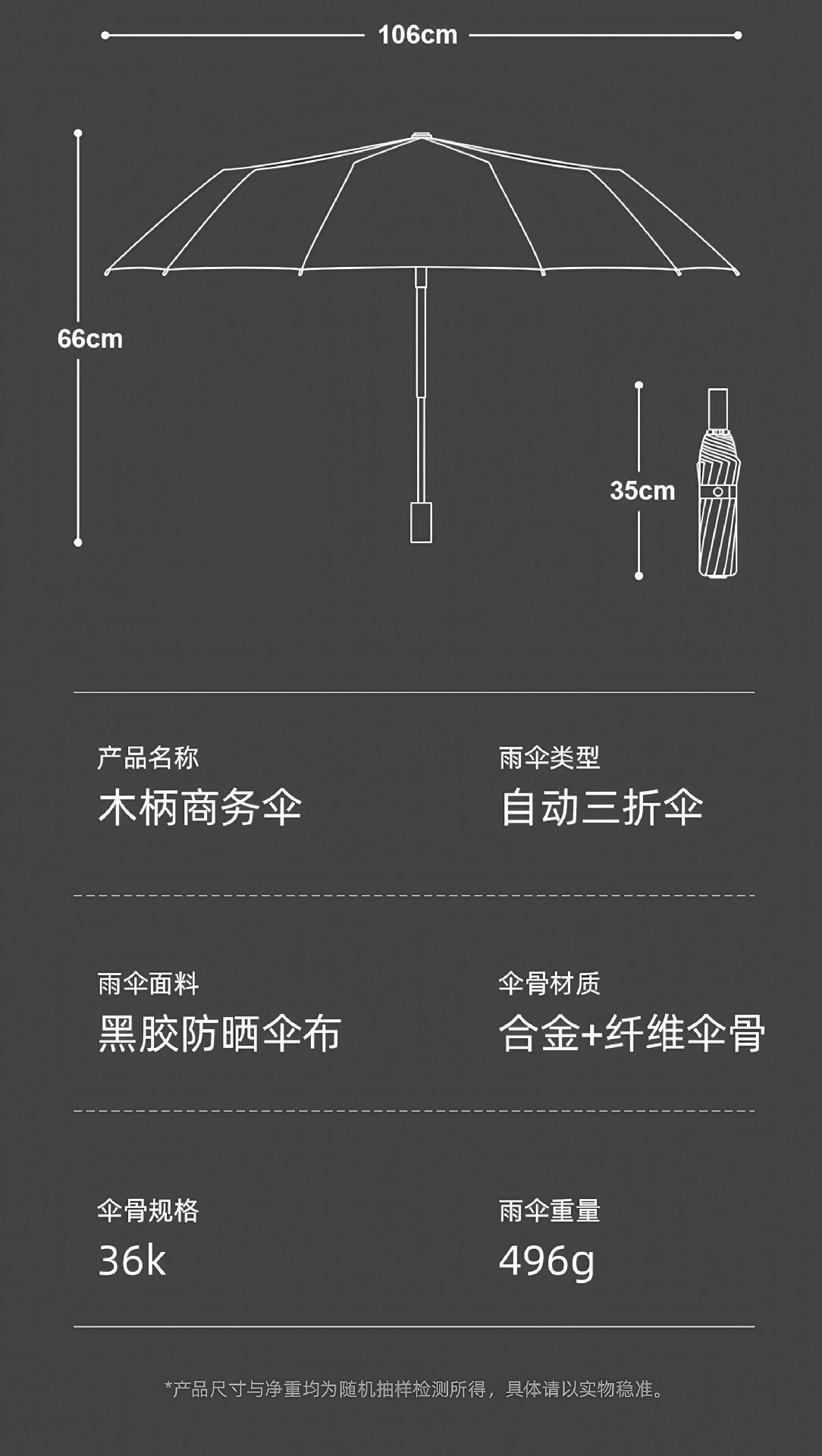 高档实木手柄自动雨伞加大加厚加固男士折叠伞晴雨两用伞工厂
