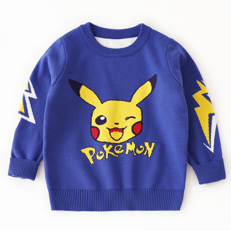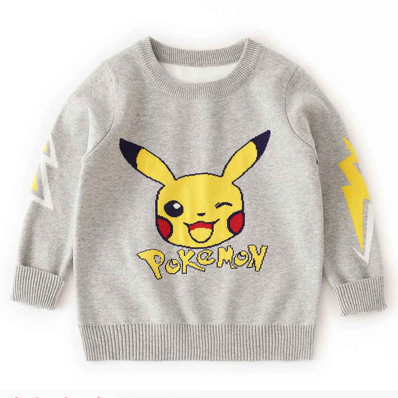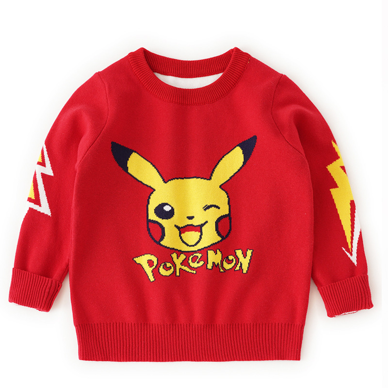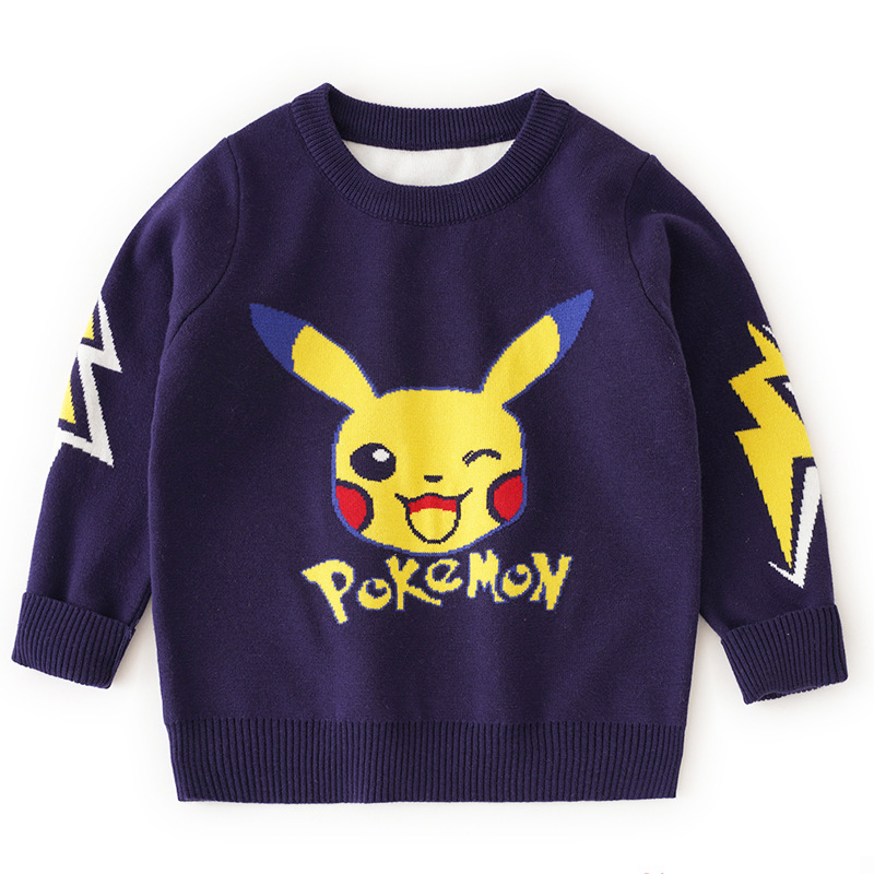 2024 년 새로운 아동복 면화 가을과 겨울 피카추 자카드 풀오버 긴 소매 니트 베이스 셔츠 재고 도매스토어 가기