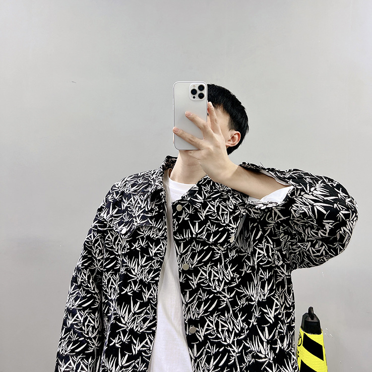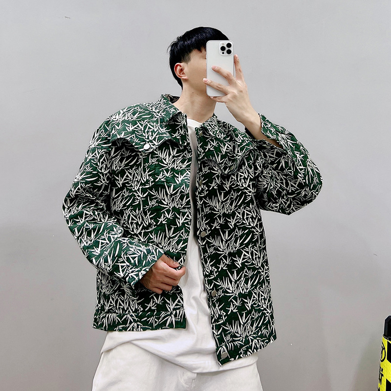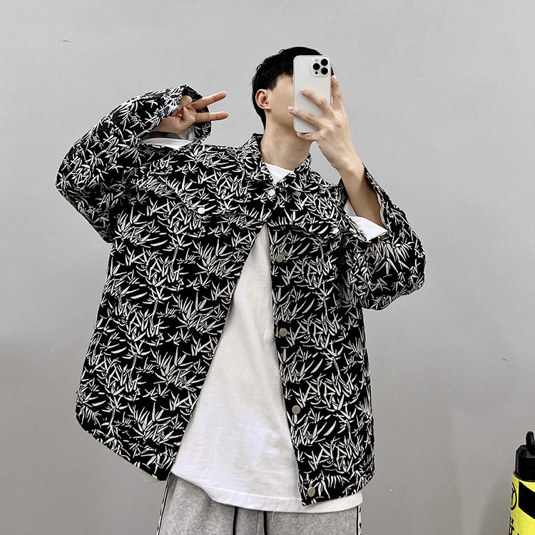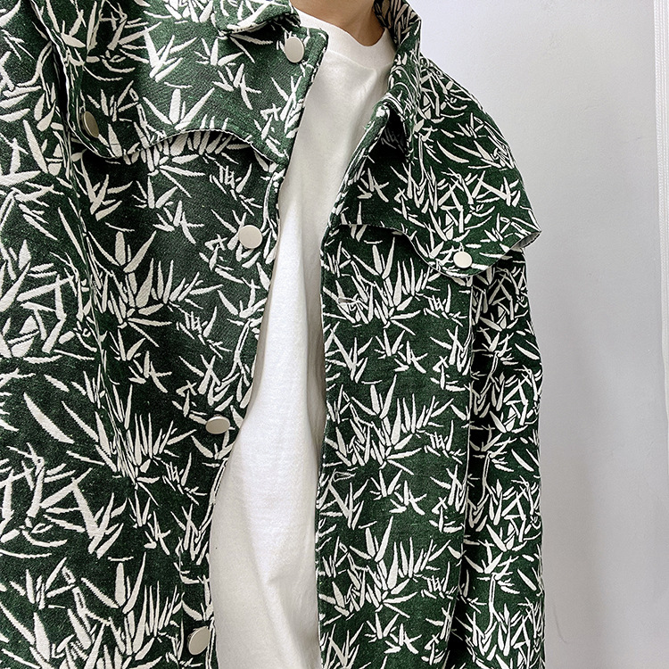 봄과 가을 2022 새로운 유행 조수 브랜드 하이 스트리트 전신 대나무 잎 수 놓은 느슨한 랩 재킷 재킷 남성 INS