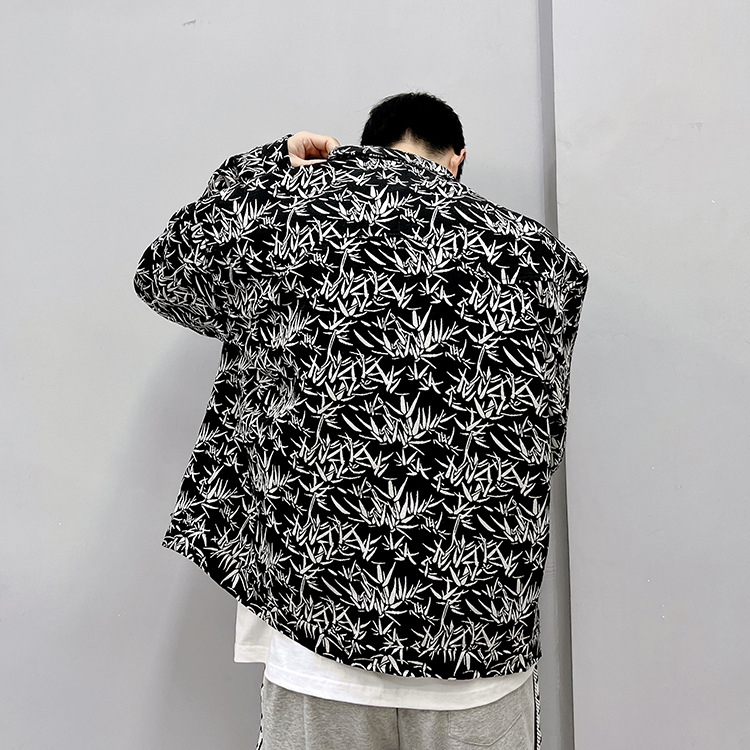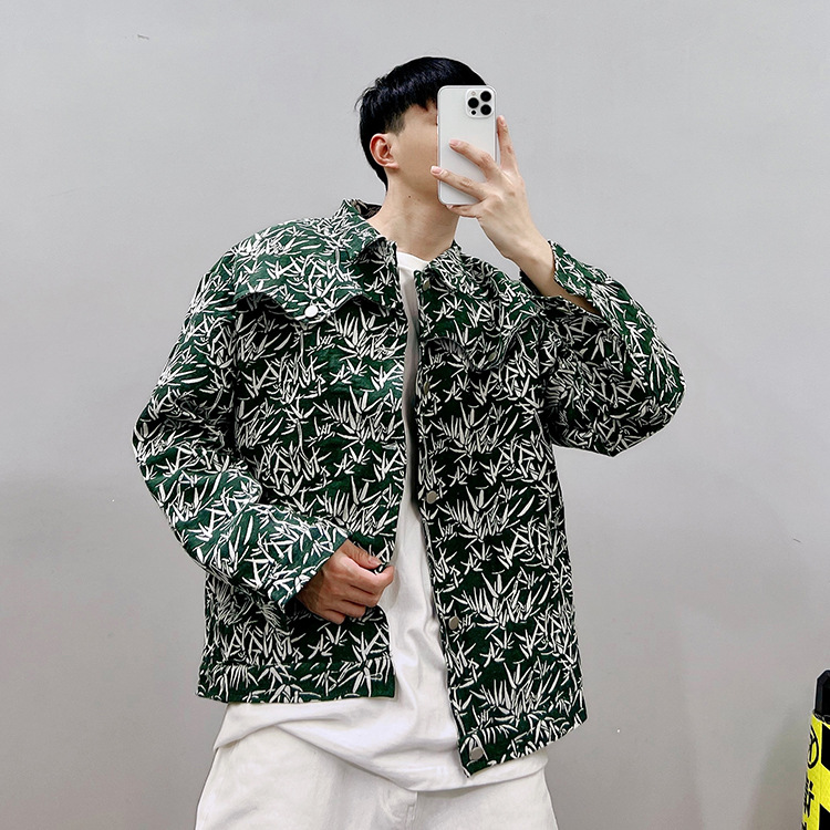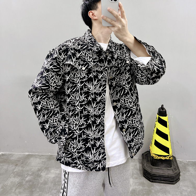 봄과 가을 2022 새로운 유행 조수 브랜드 하이 스트리트 전신 대나무 잎 수 놓은 느슨한 랩 재킷 재킷 남성 INS스토어 가기