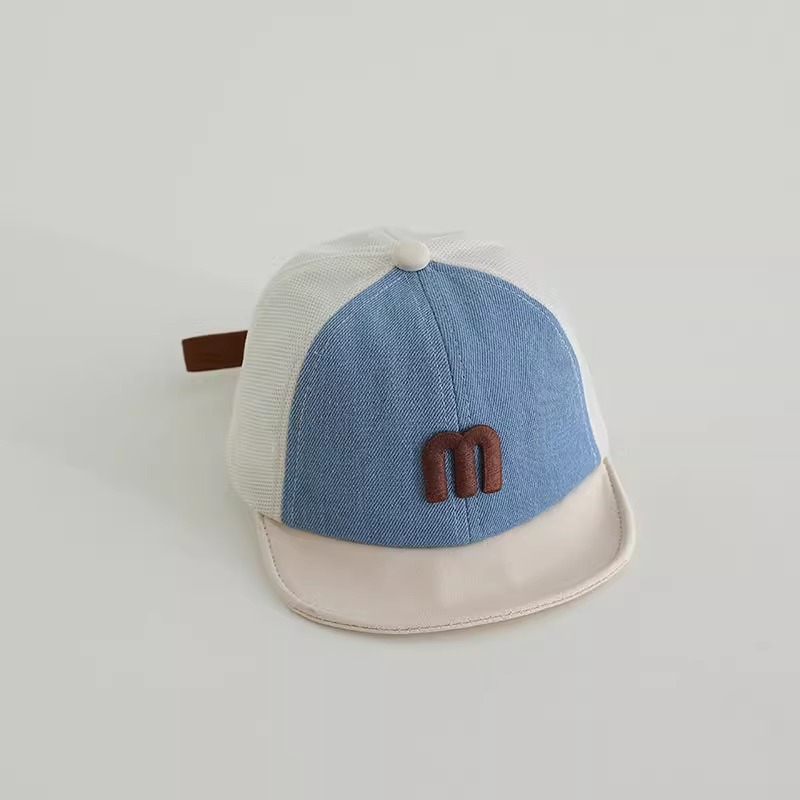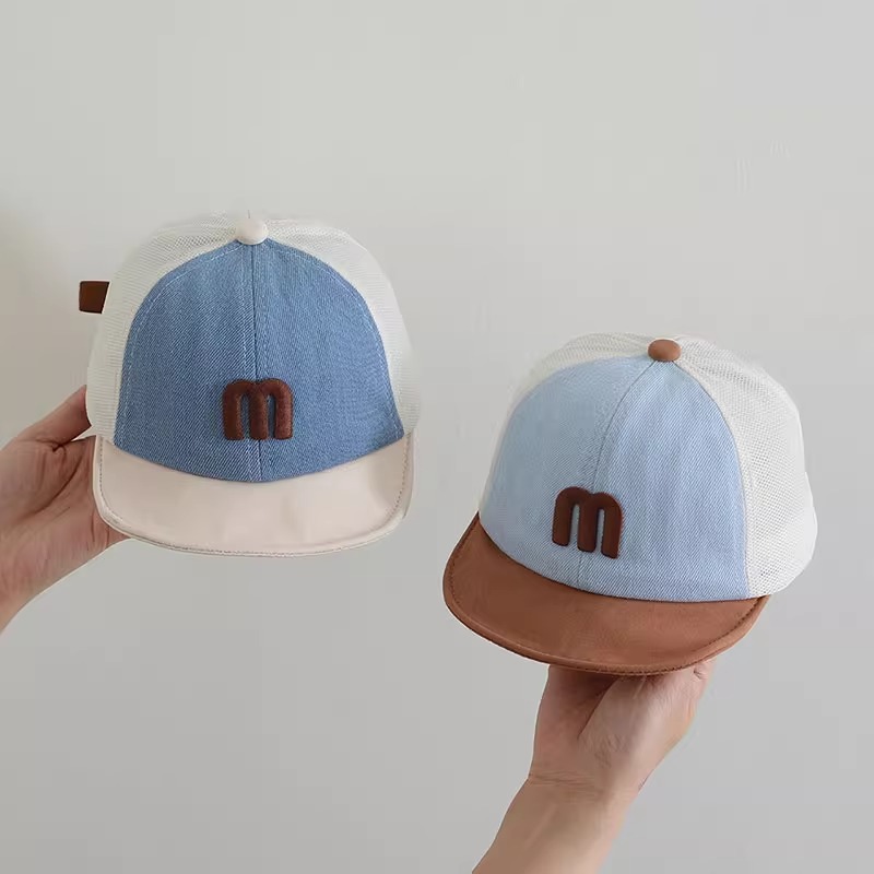 한국식 아기 모자, 여름용 얇은 피크 캡, 소년 소녀 모두를 위한 다재다능하고 트렌디한 메쉬 데님 양산 부드러운 챙 모자