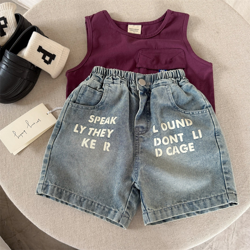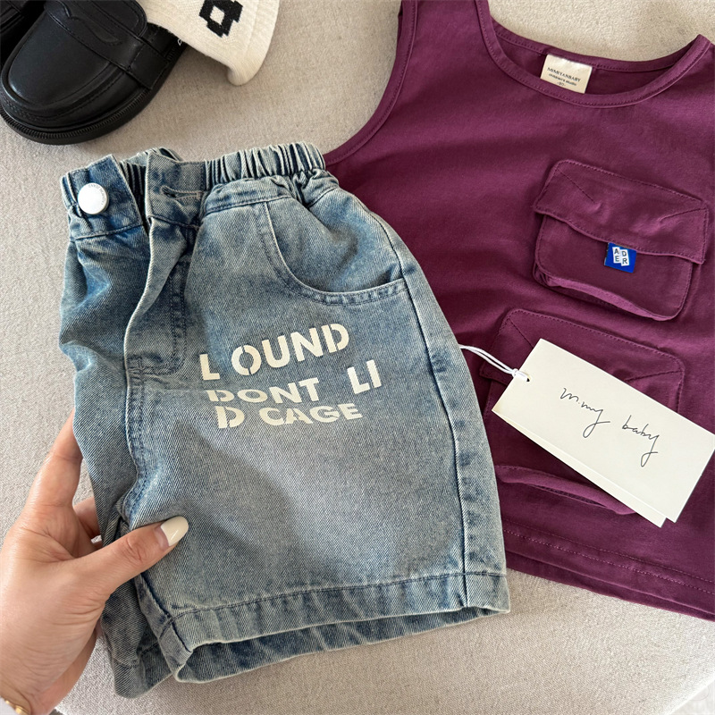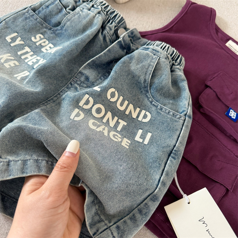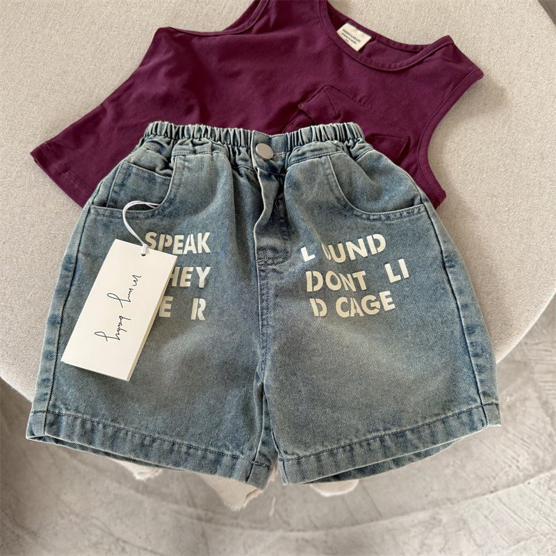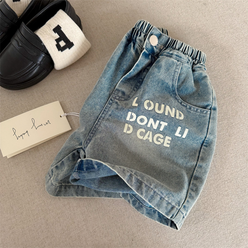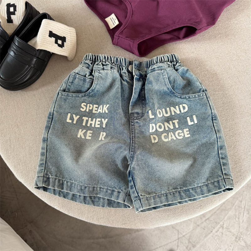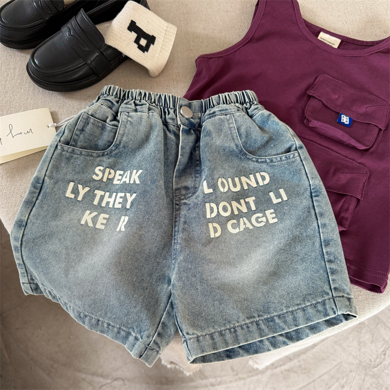어린이 반바지 2025 스팽글 여름 새 소년 소녀 편지 데님 반바지 아기 한국식 바지 유행스토어 가기