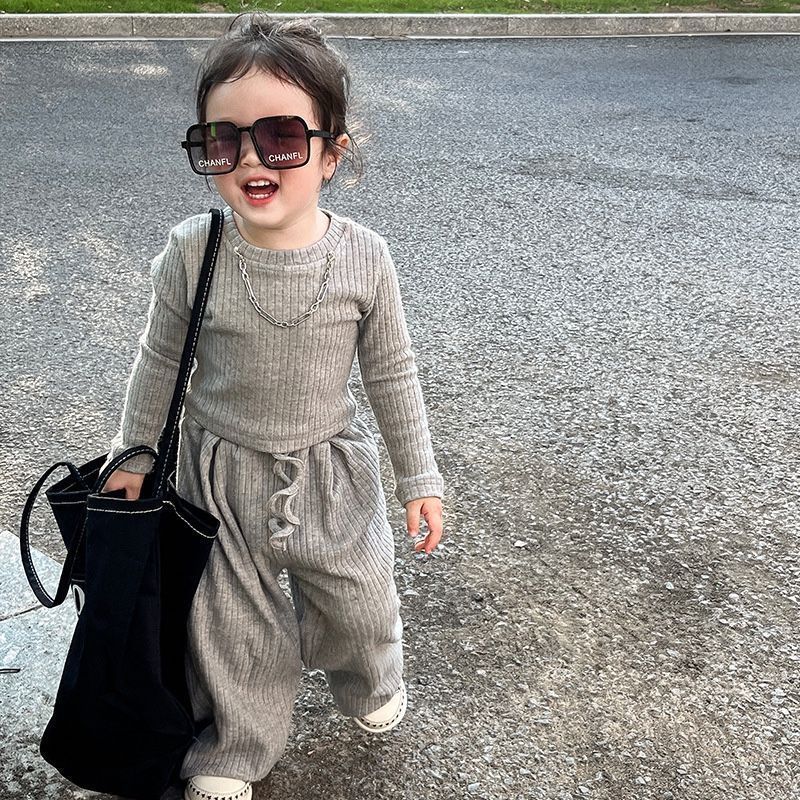 여자 가을 회색 긴팔 바지 정장 2025 새로운 한국 스타일 아동 의류 아동 가을 스포츠 투피스 세트스토어 가기