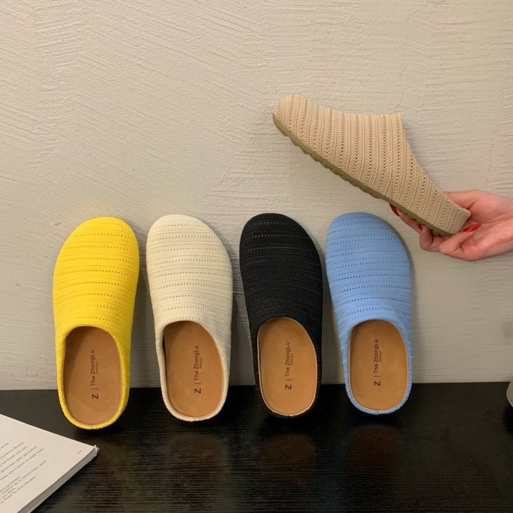 프랑스 스타일의 틈새 할로우 통기성 Baotou 하프 슬리퍼 여성 여름 새로운 의상 로마 스타일의 두꺼운 뮬러 슬리퍼