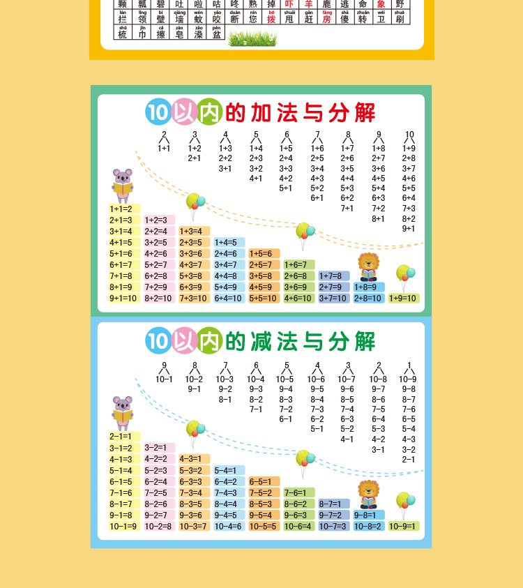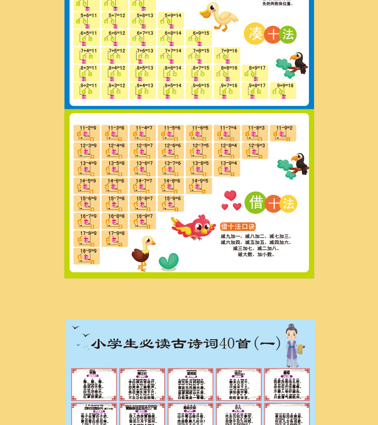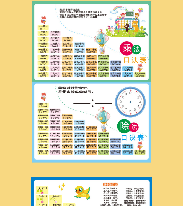 병음 문자 곱셈, 나눗셈, 덧셈 및 뺄셈 공식 테이블 학습 아티팩트의 벽 차트 전체 세트를 배우는 동일한 초등학교 어린이의 소리를 흔들어