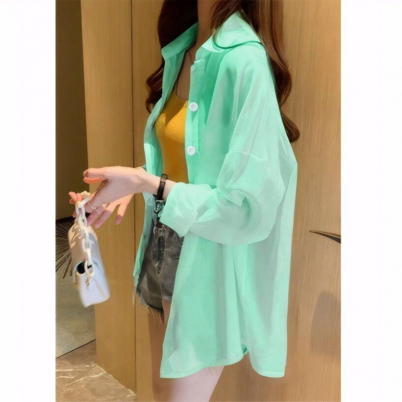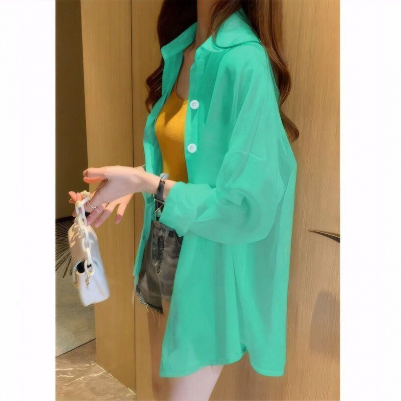 여름 얇은 쉬폰 셔츠 재킷 요정 달콤한 셔츠 녹색 아우터 가디건 긴팔 탑
