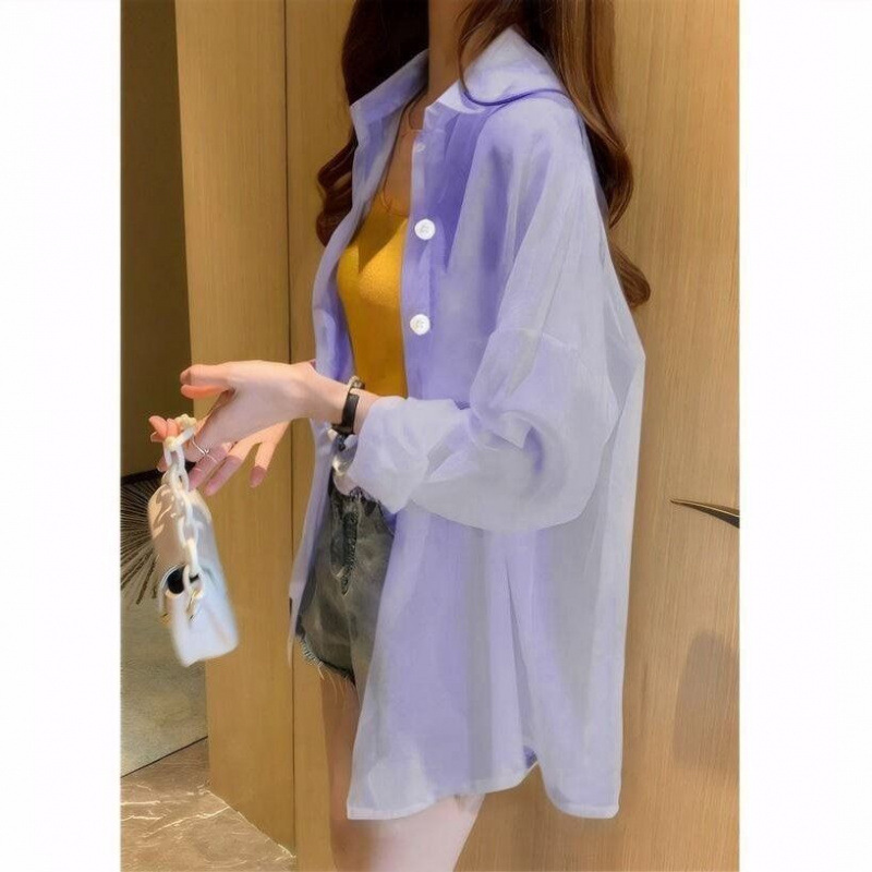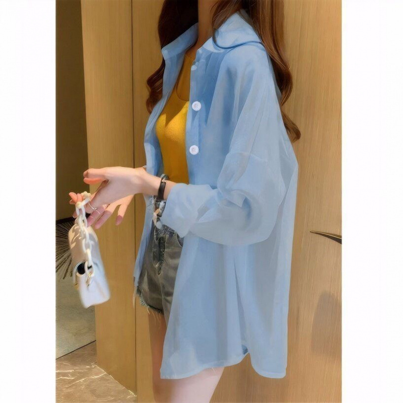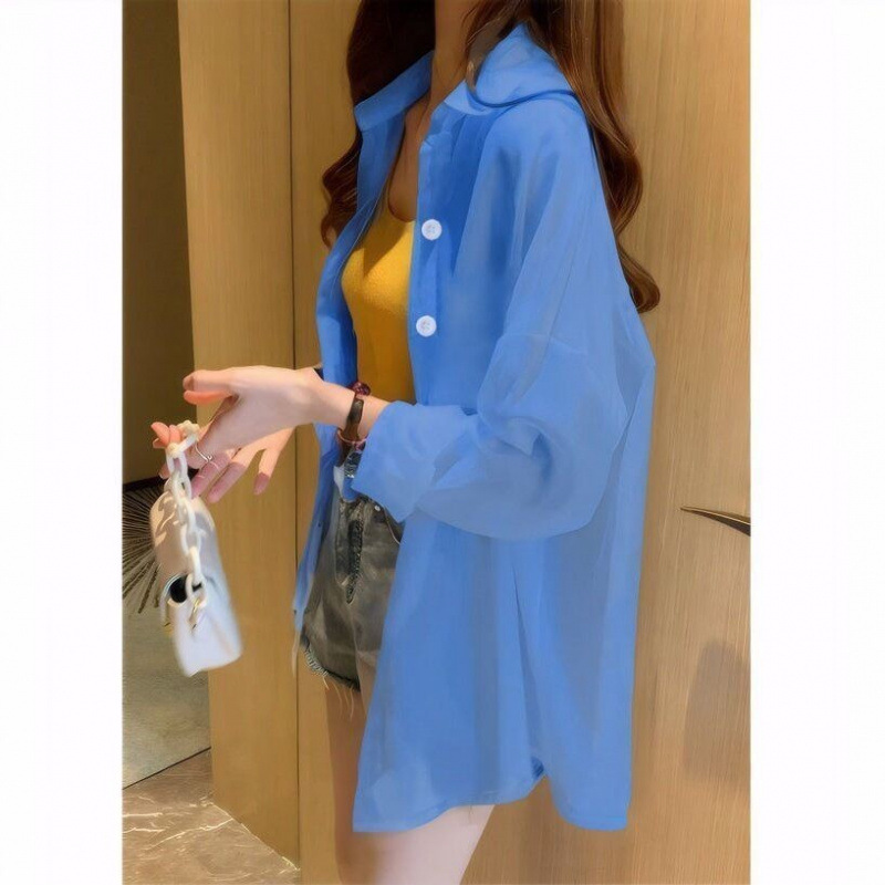 여름 얇은 쉬폰 셔츠 재킷 요정 달콤한 셔츠 녹색 아우터 가디건 긴팔 탑스토어 가기