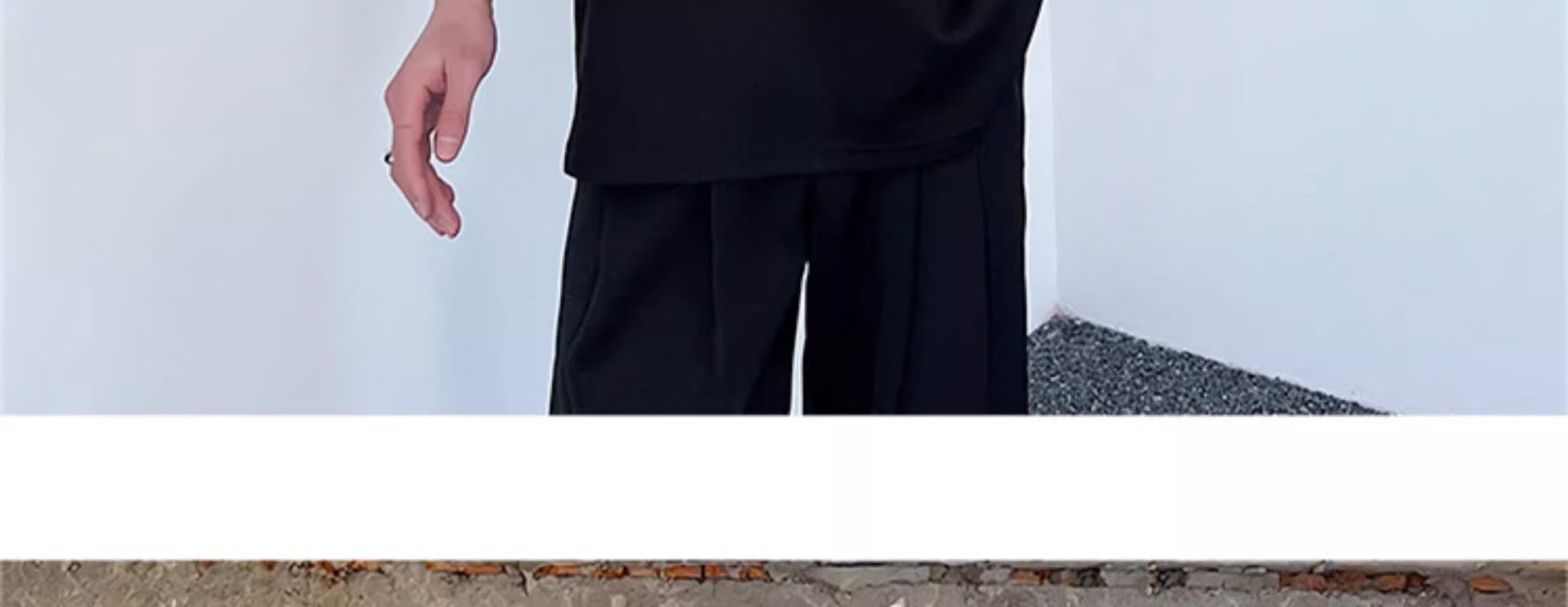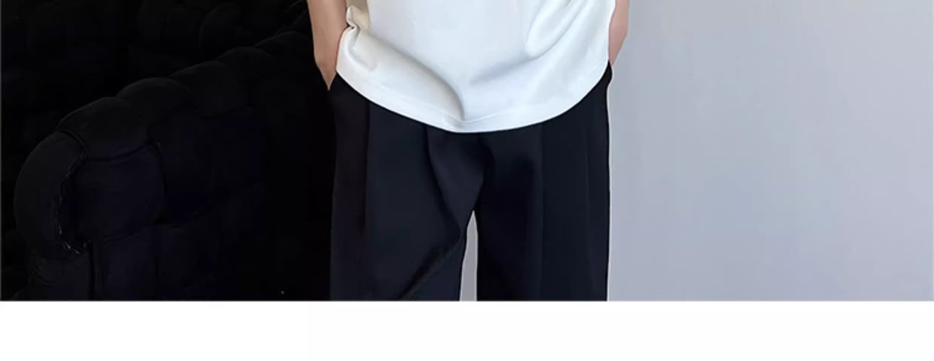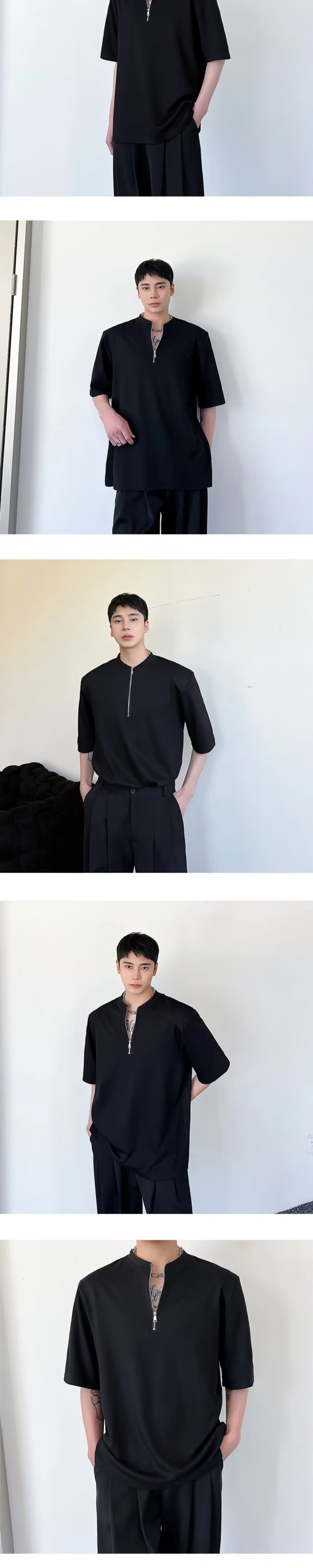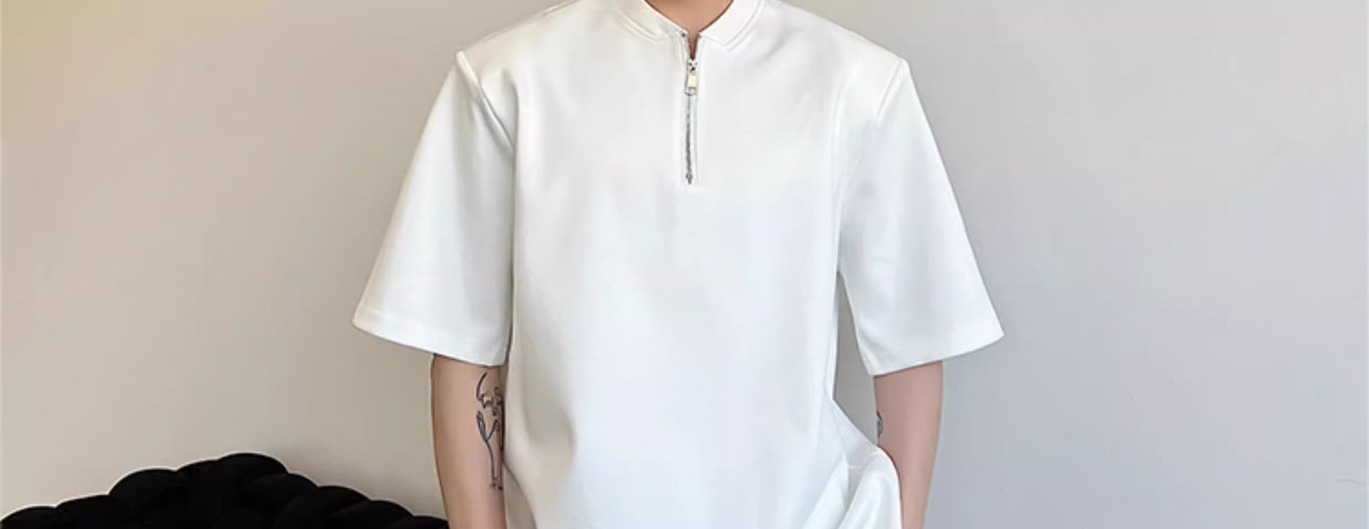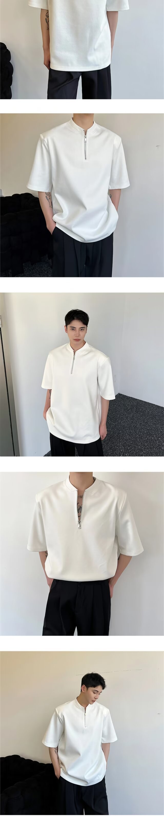 가벼운 성숙한 스타일 남성용 어깨 패드 티셔츠 남성용 헤어 스타일리스트 트렌디 브랜드 헤비 웨이트 반팔 내부 작은 목 반소매 베이스 셔츠