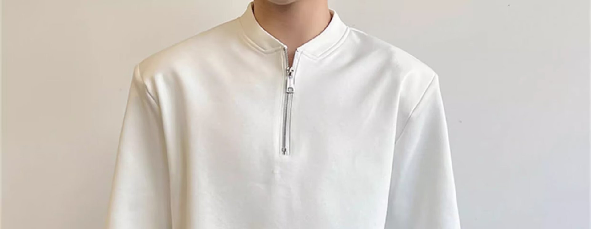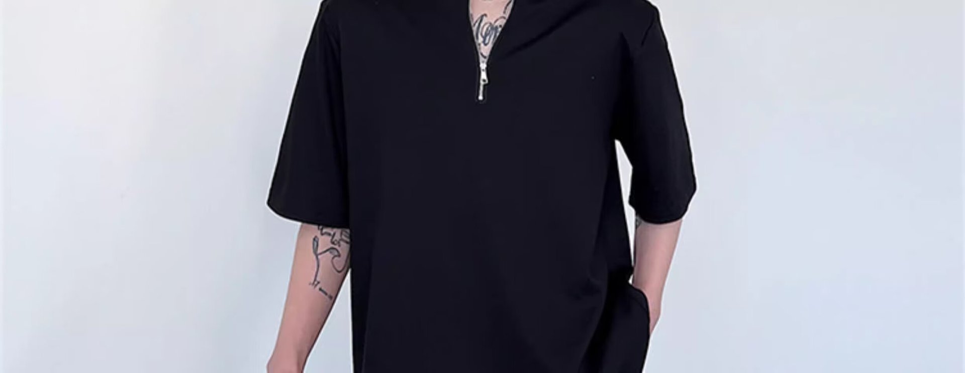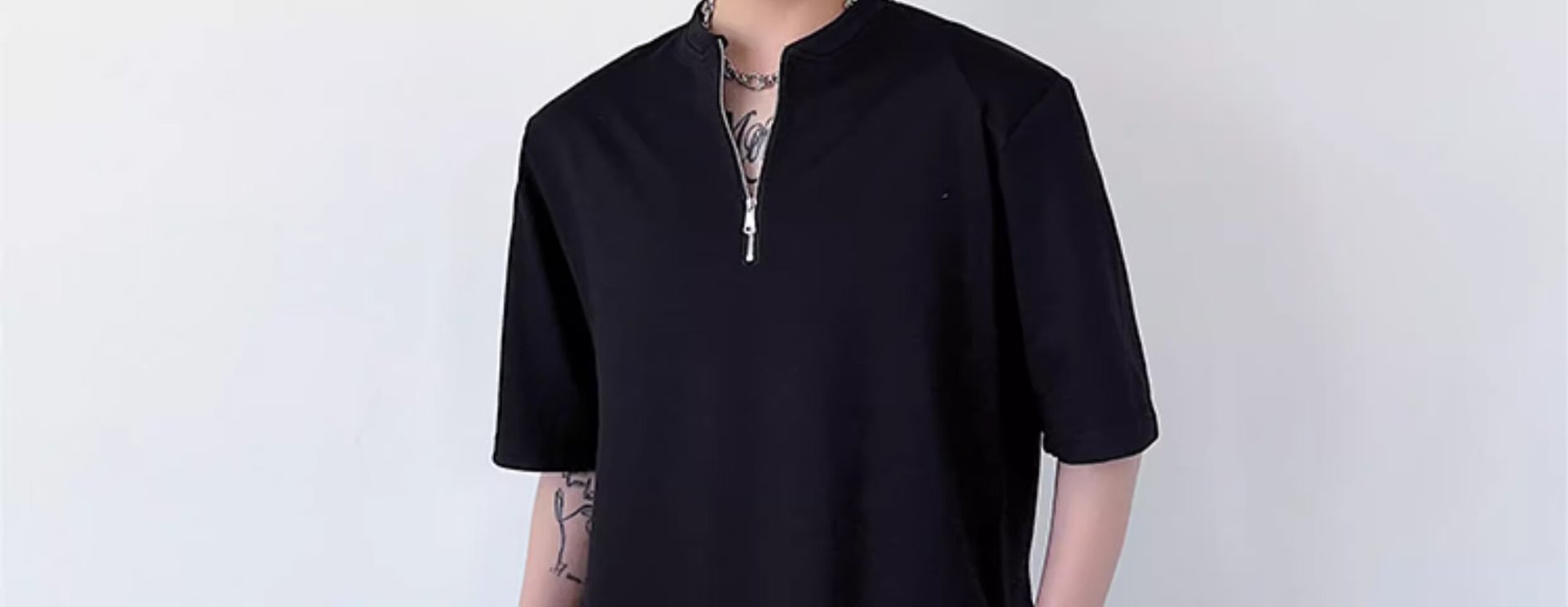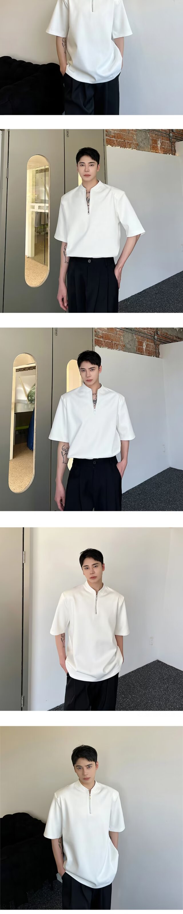 가벼운 성숙한 스타일 남성용 어깨 패드 티셔츠 남성용 헤어 스타일리스트 트렌디 브랜드 헤비 웨이트 반팔 내부 작은 목 반소매 베이스 셔츠