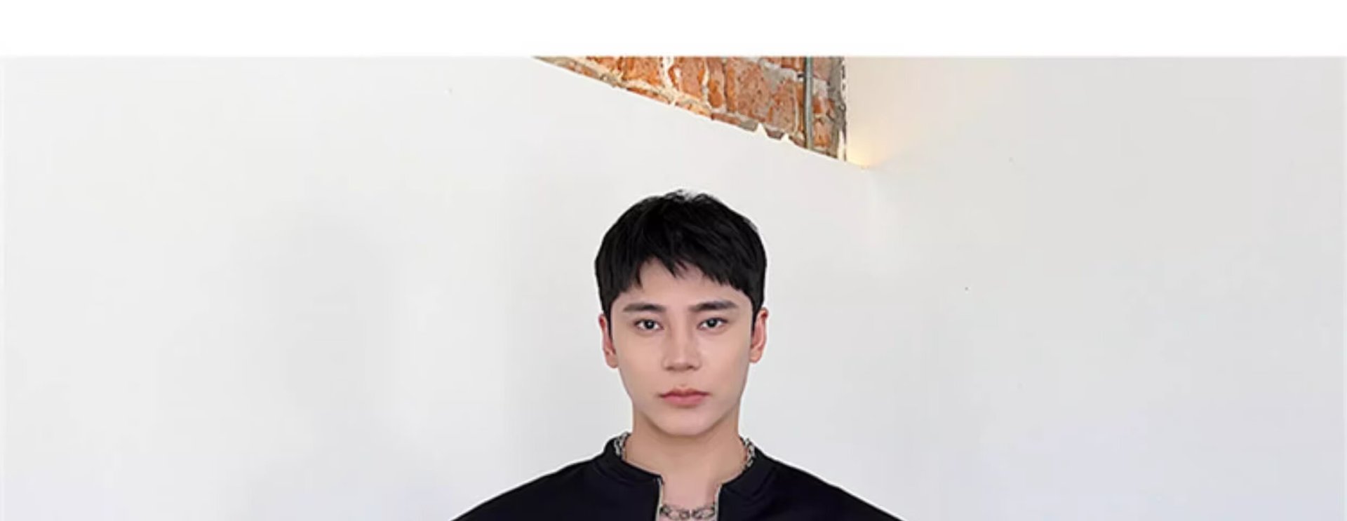 가벼운 성숙한 스타일 남성용 어깨 패드 티셔츠 남성용 헤어 스타일리스트 트렌디 브랜드 헤비 웨이트 반팔 내부 작은 목 반소매 베이스 셔츠스토어 가기