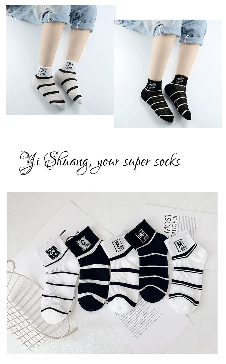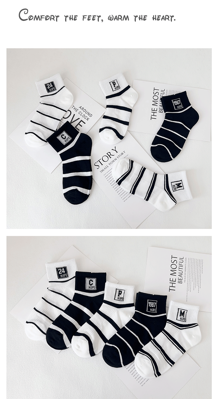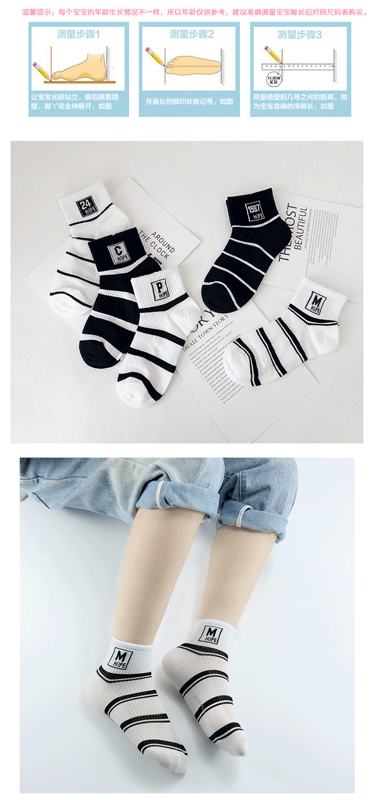 이순이 한 쌍의 어린이 양말 여름 큰 그물 초박형 조수 브랜드 문자 짧은 양말이 면화 흑백 스포츠 양말 뼈없는 양말