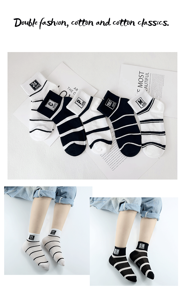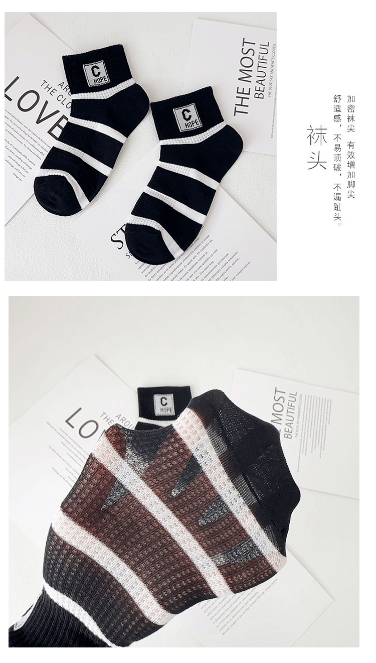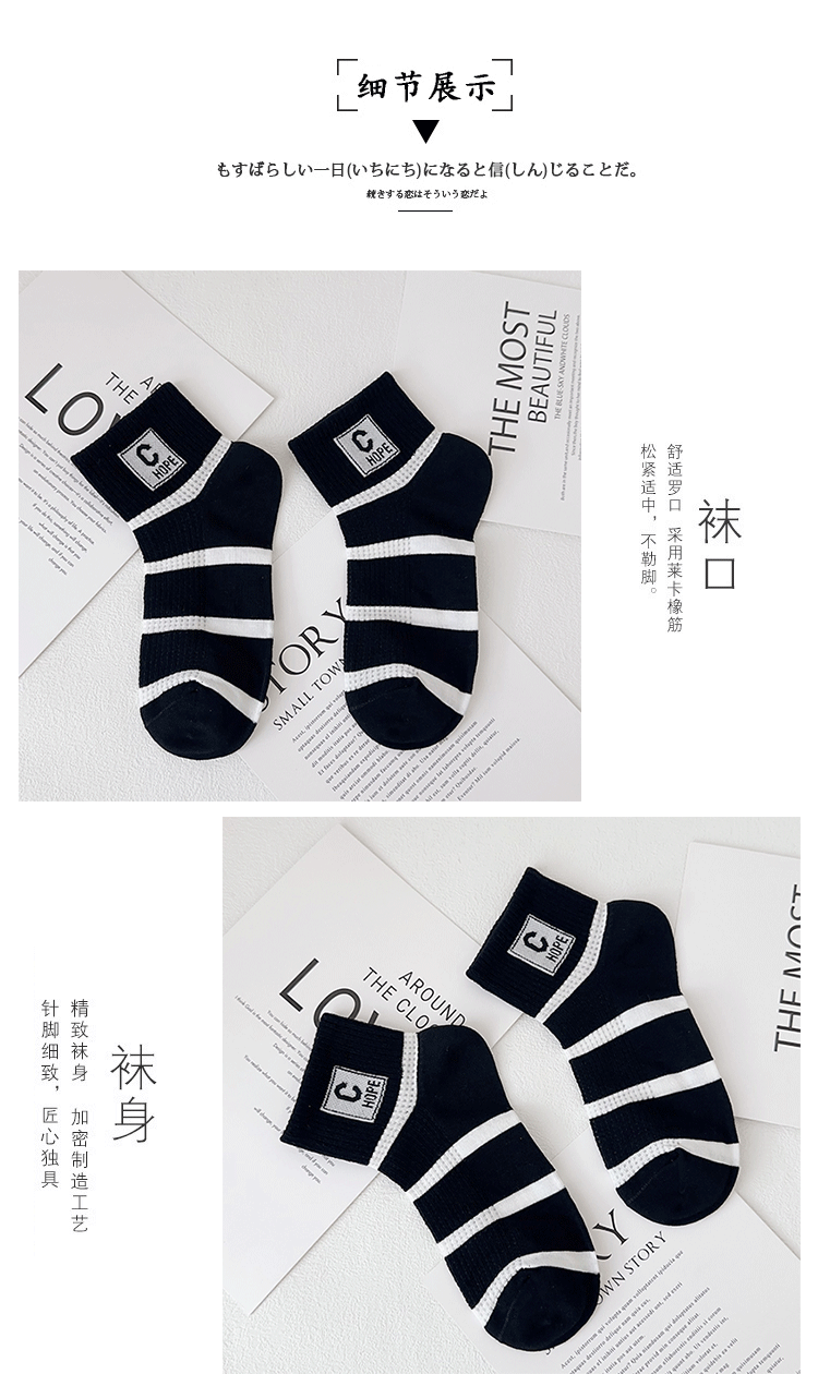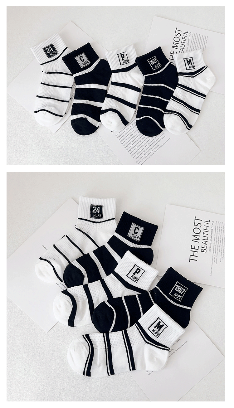 이순이 한 쌍의 어린이 양말 여름 큰 그물 초박형 조수 브랜드 문자 짧은 양말이 면화 흑백 스포츠 양말 뼈없는 양말