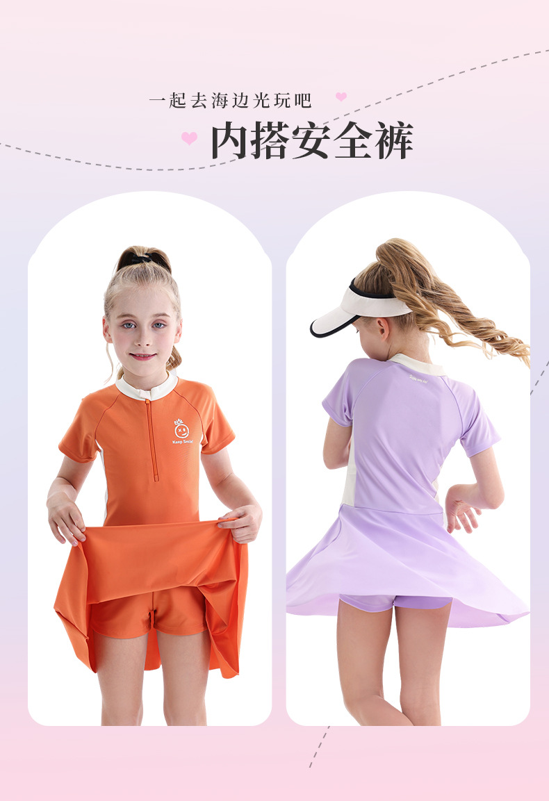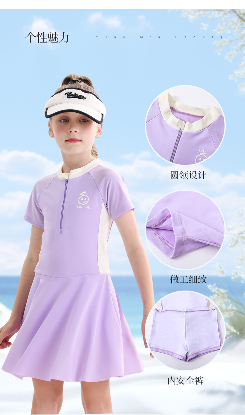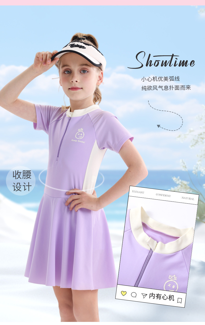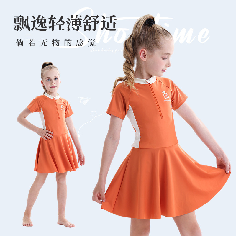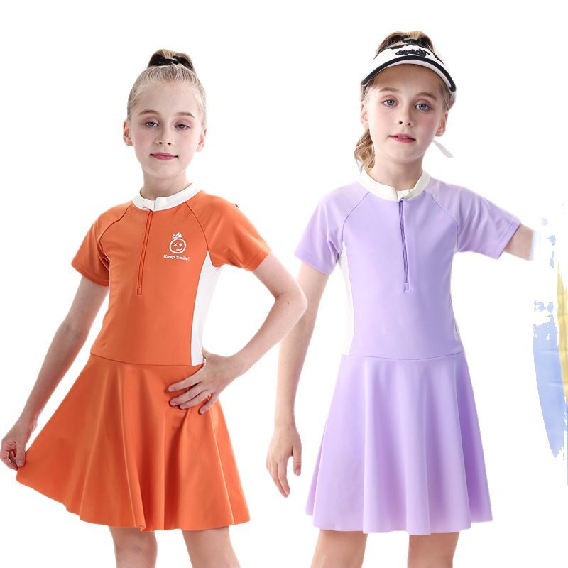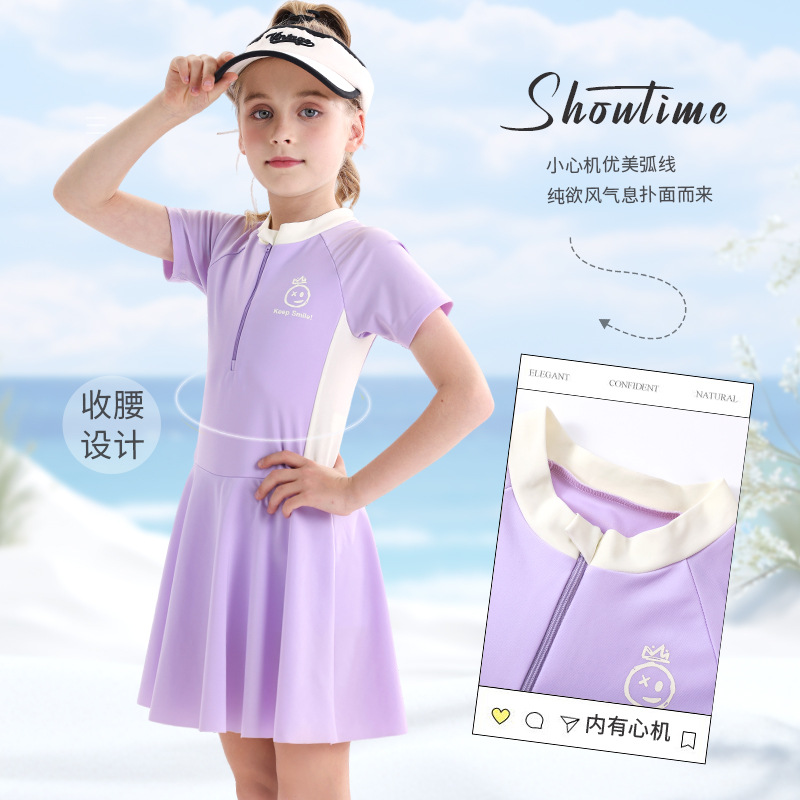 소녀 수영복 2025 새로운 도착 선 스크린 빠른 건조 전문 어린이 수영복 반팔 수영복 큰 어린이와 소녀