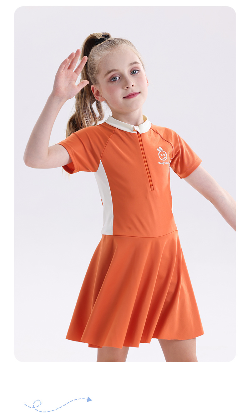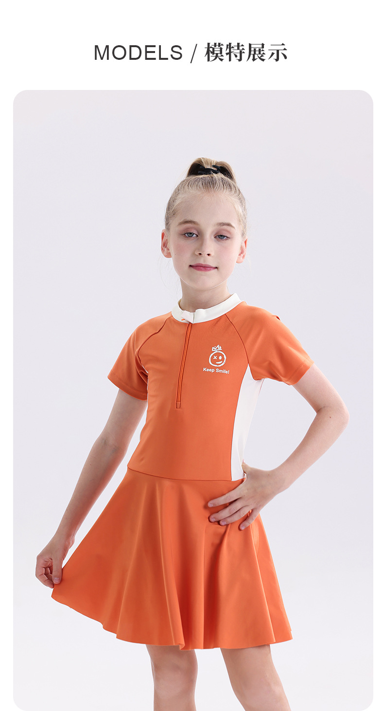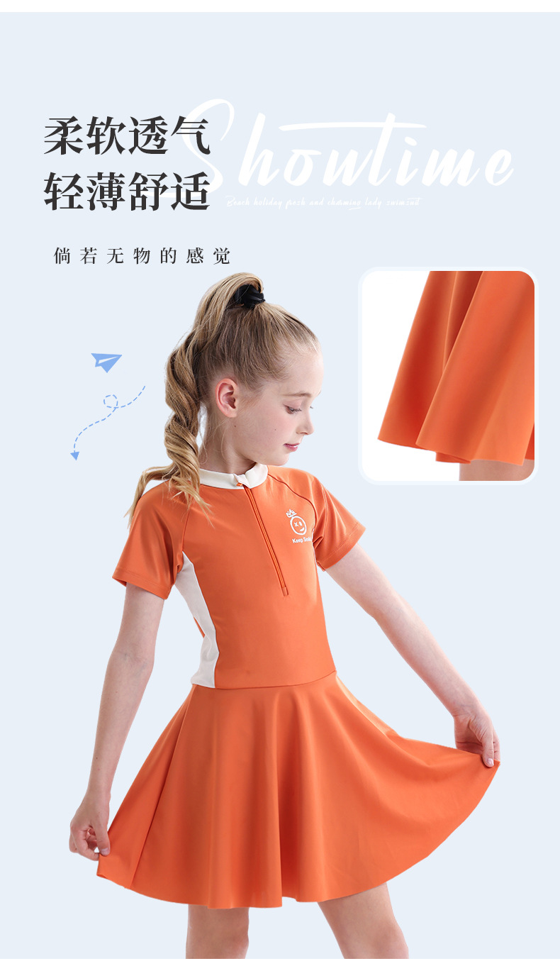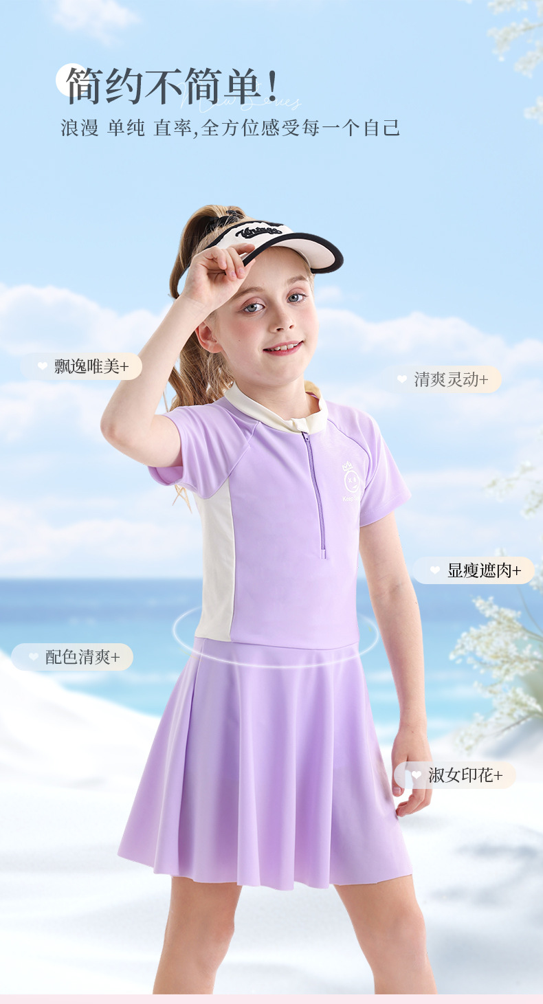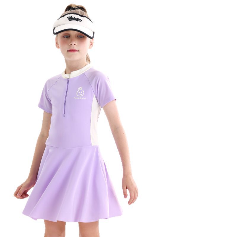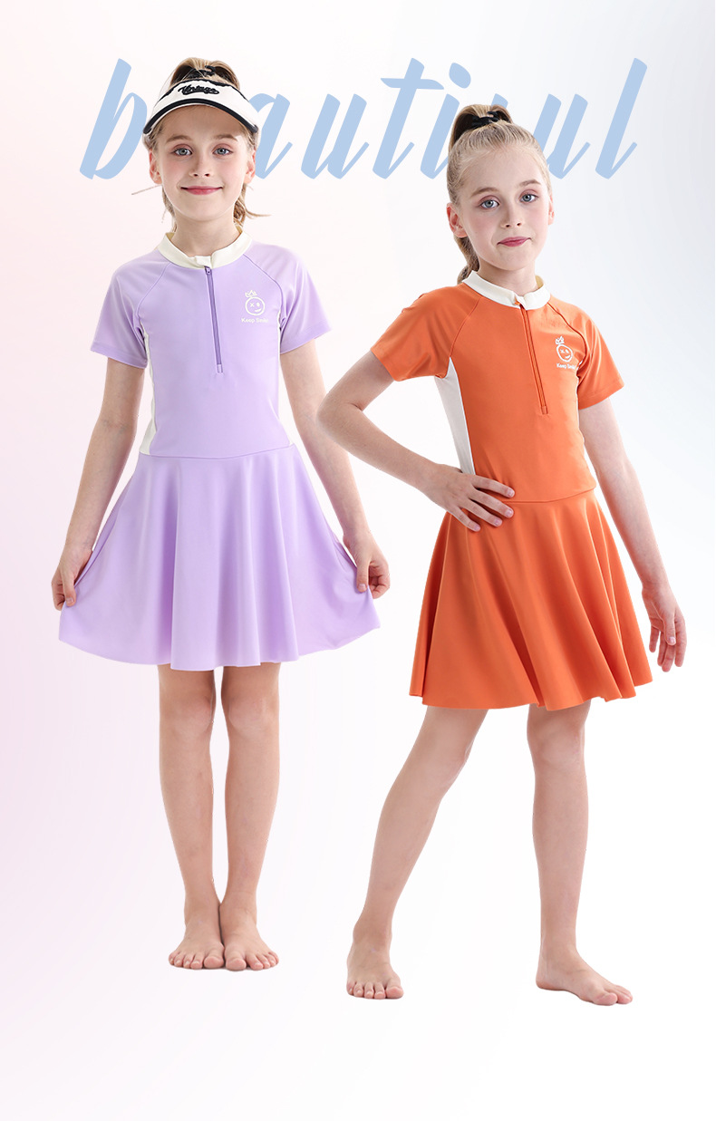 소녀 수영복 2025 새로운 도착 선 스크린 빠른 건조 전문 어린이 수영복 반팔 수영복 큰 어린이와 소녀