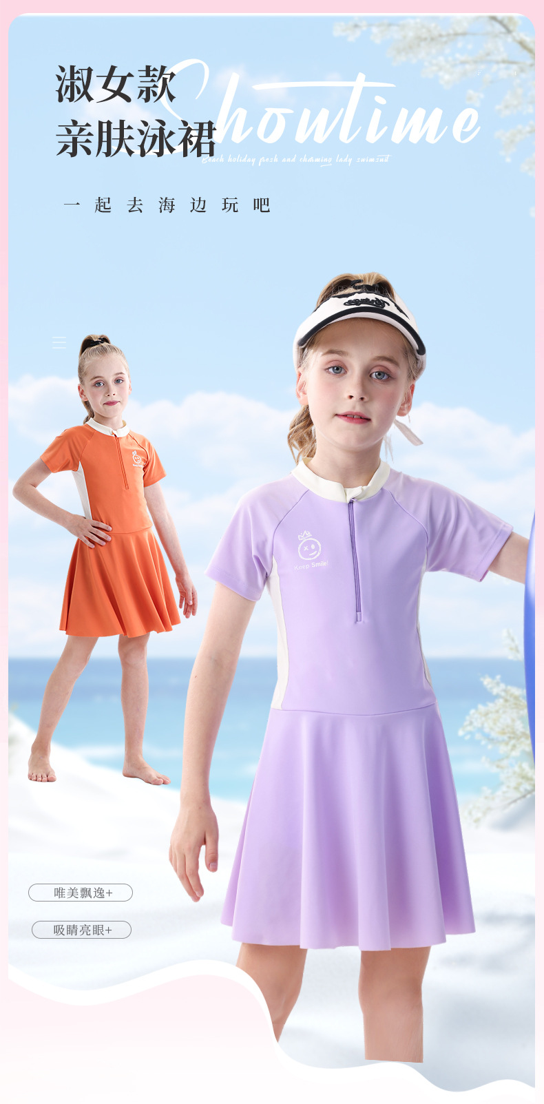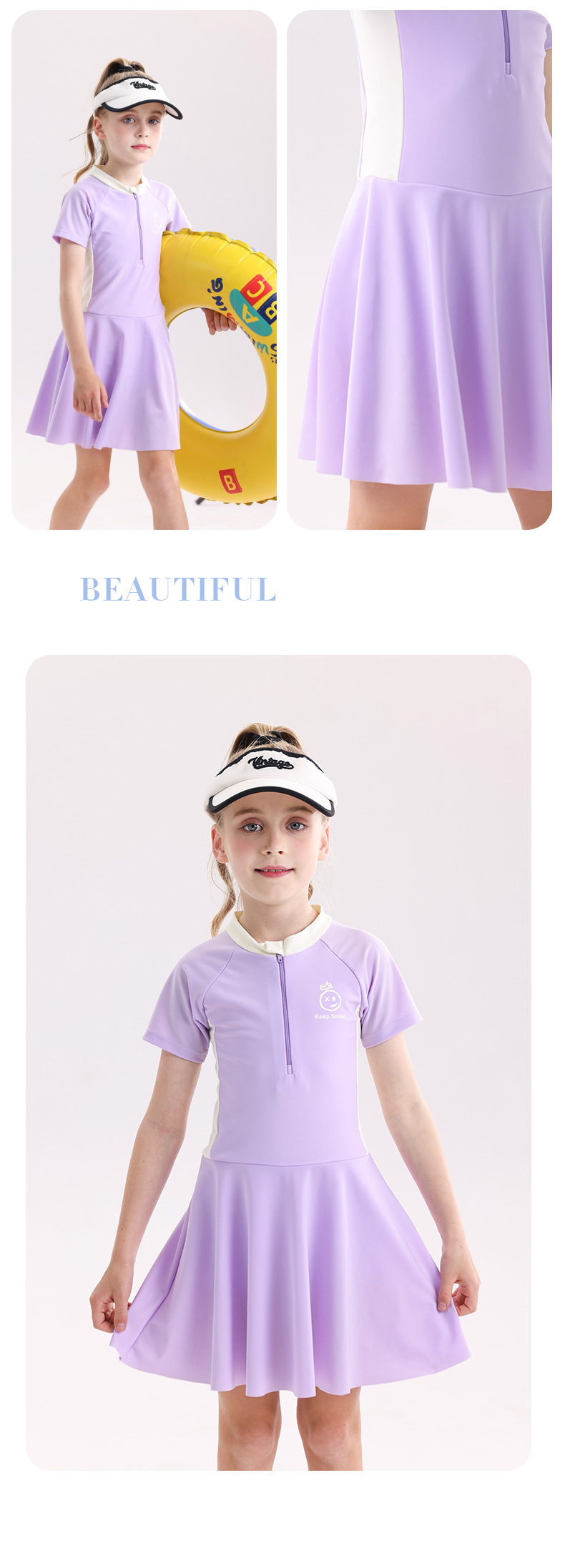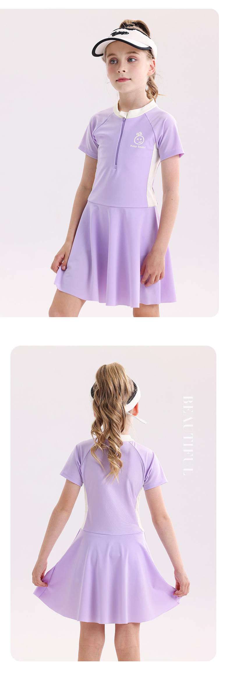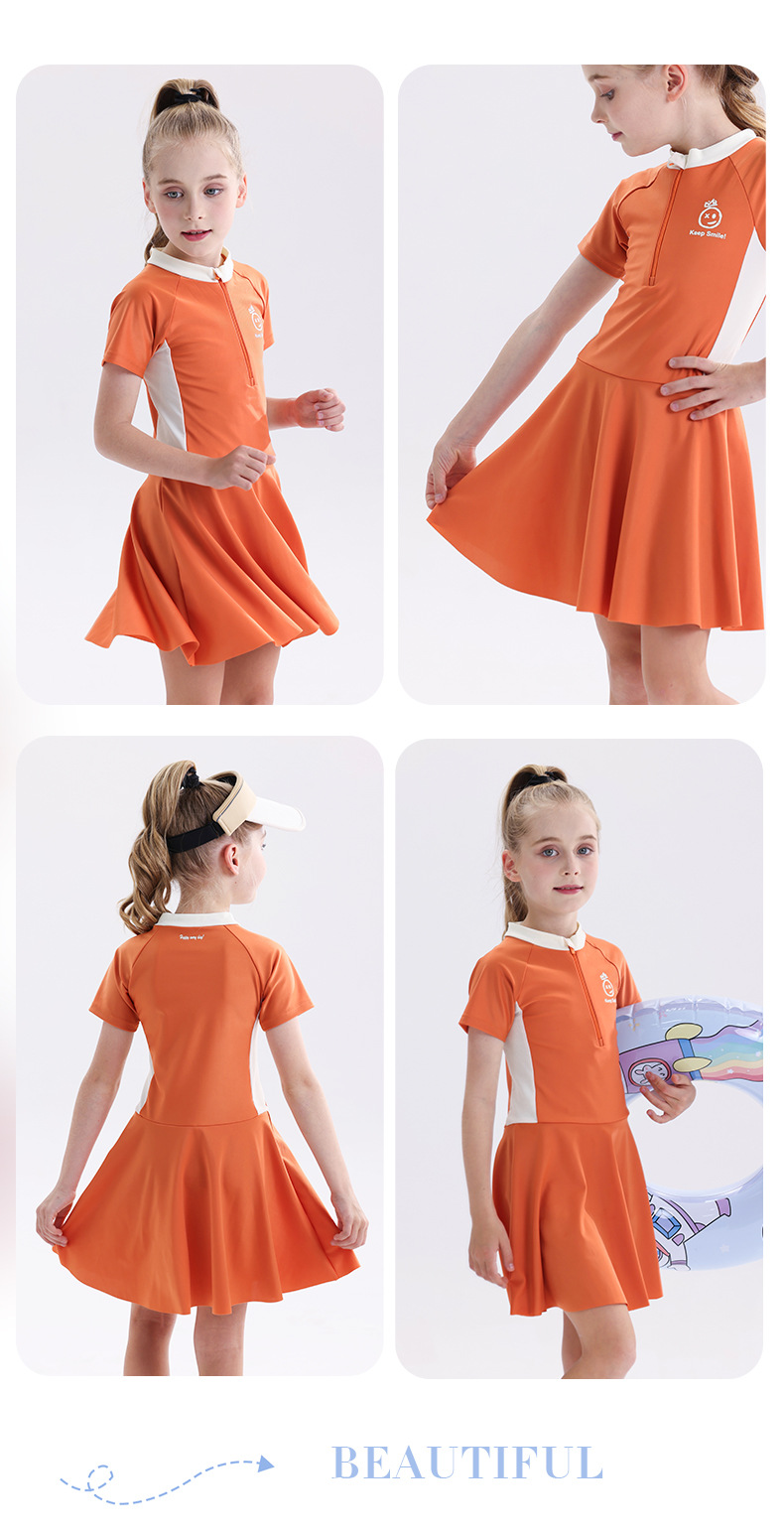 소녀 수영복 2025 새로운 도착 선 스크린 빠른 건조 전문 어린이 수영복 반팔 수영복 큰 어린이와 소녀