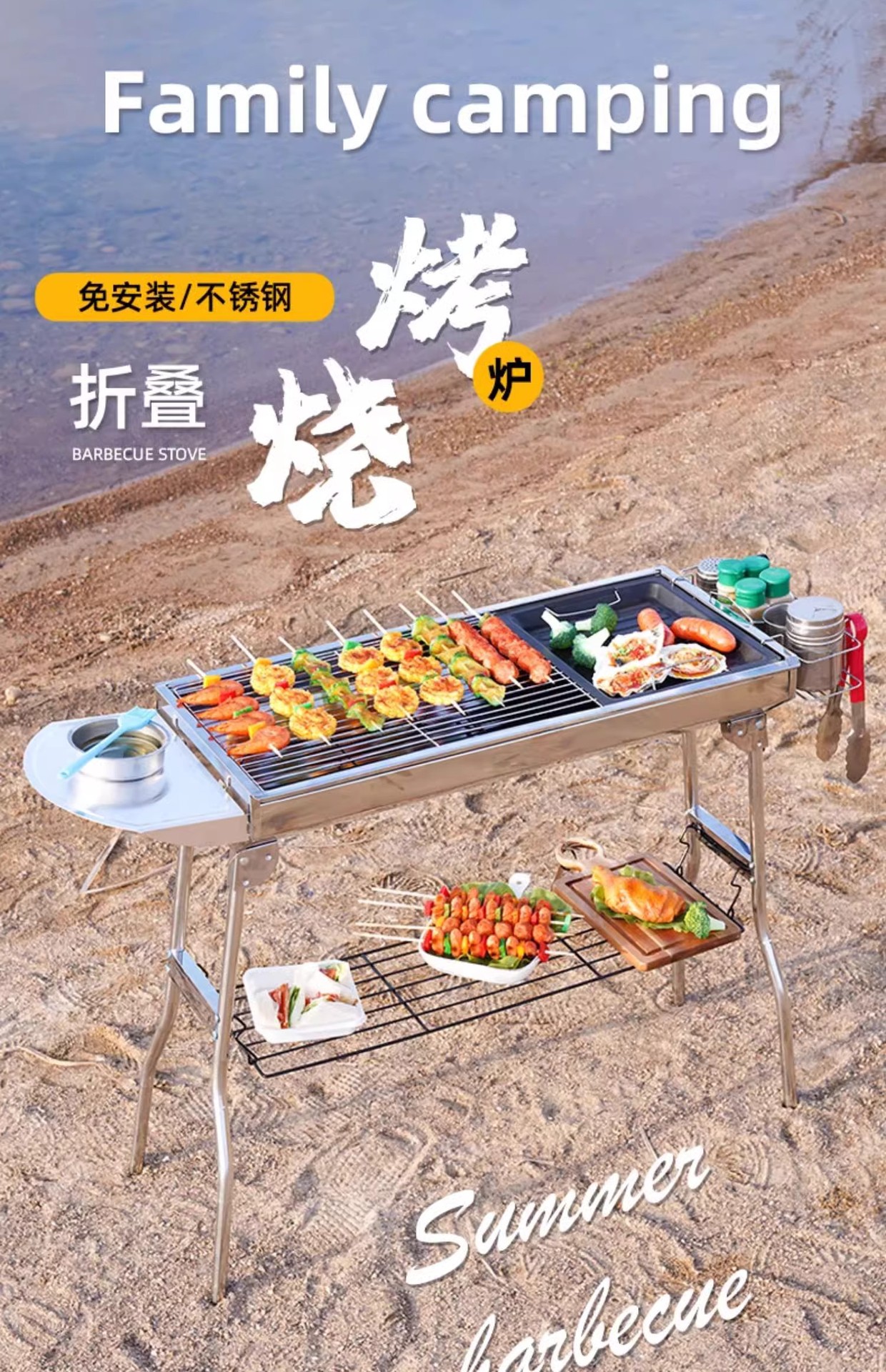 바베큐 그릴 가정용 바베큐 그릴 접이식 휴대용 스테인레스 스틸 실내 무연 숯 야외 바베큐 그릴 그릴스토어 가기