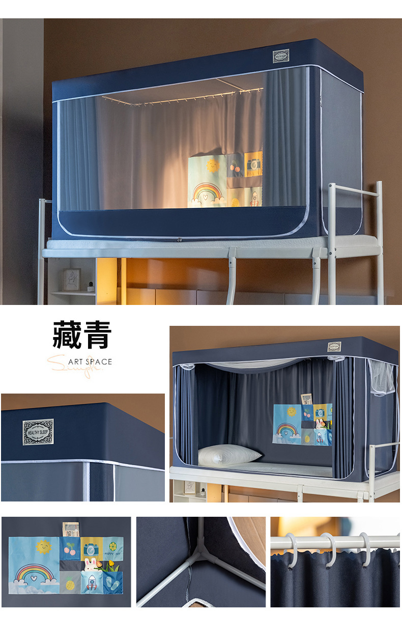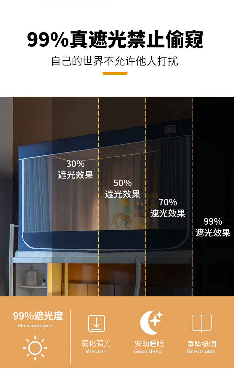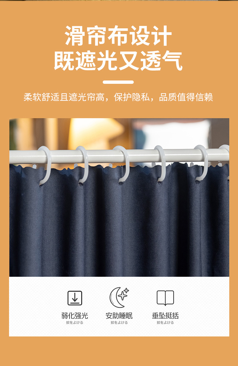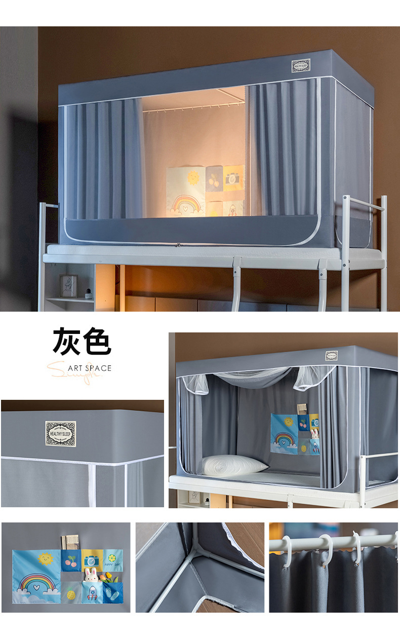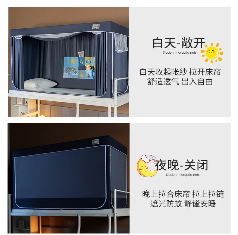 스탠드가 있는 방진탑 학생용 모기장, 강력한 차광 일체형 침대커튼, 이층침대 모기장, 바닥 90 기숙사 모기장