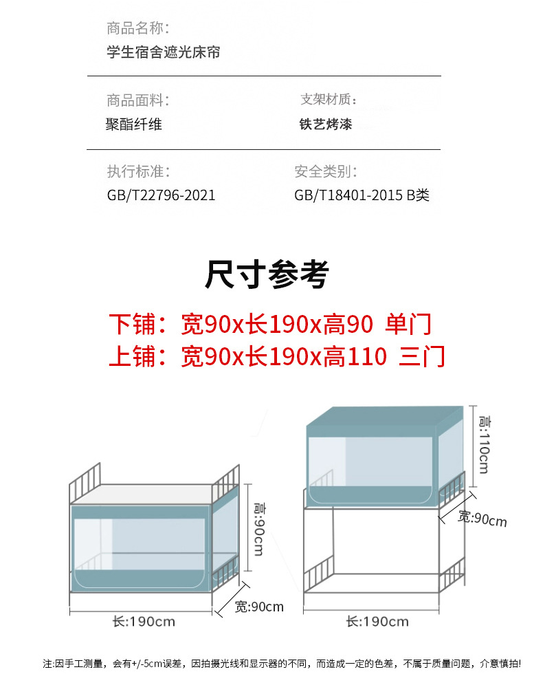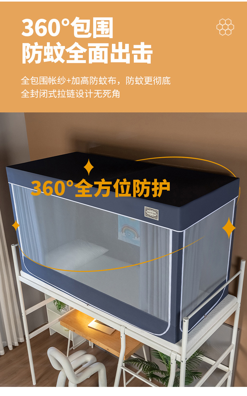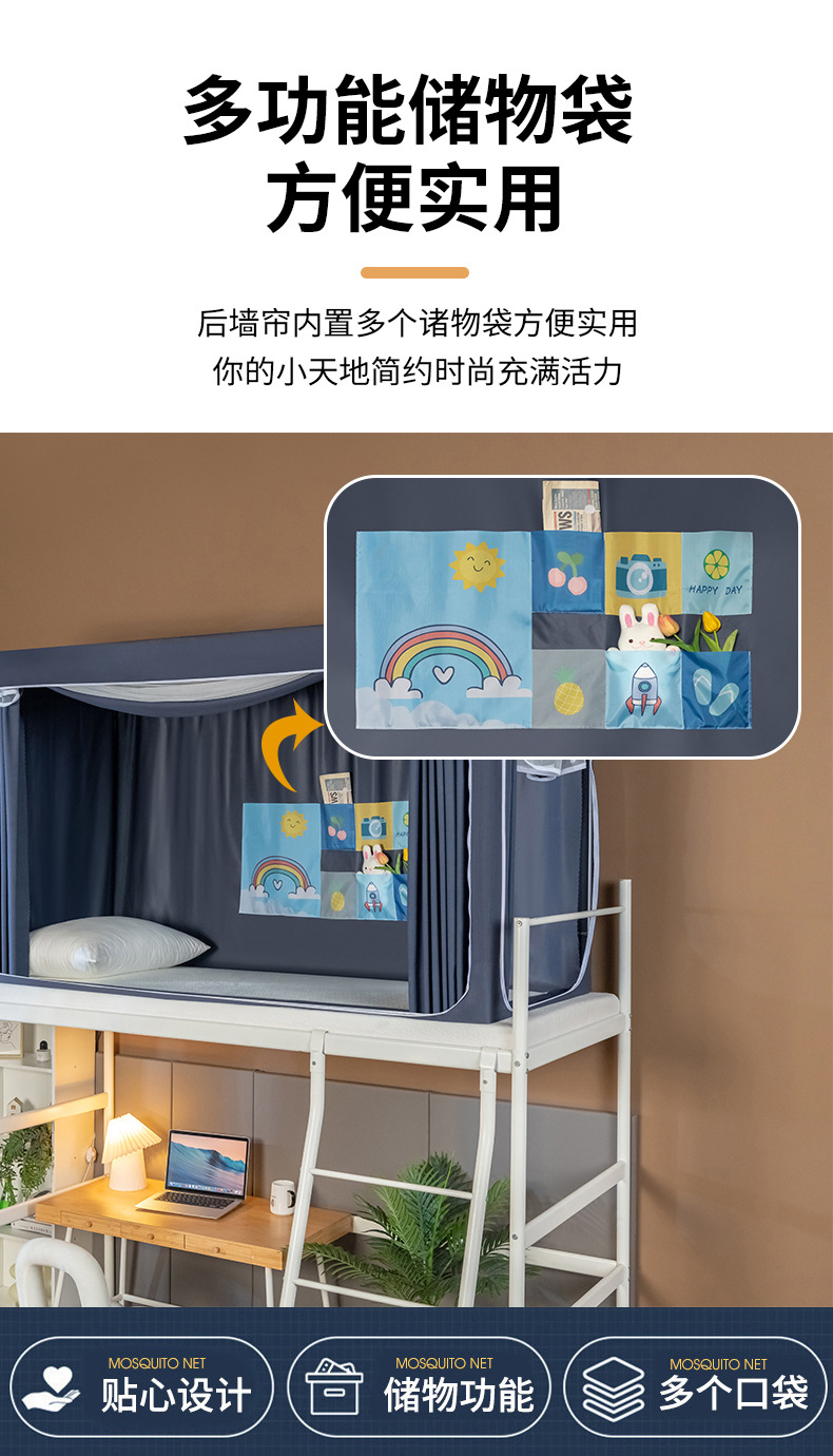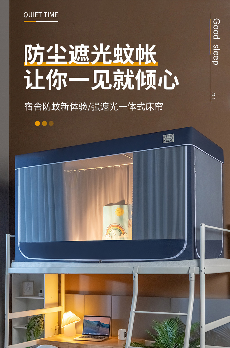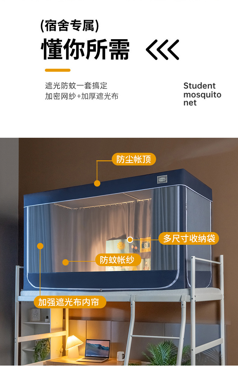 스탠드가 있는 방진탑 학생용 모기장, 강력한 차광 일체형 침대커튼, 이층침대 모기장, 바닥 90 기숙사 모기장