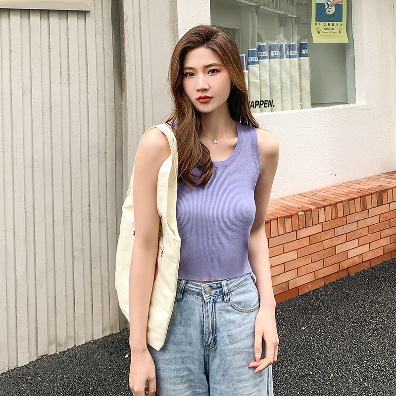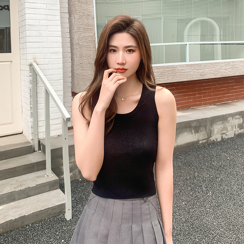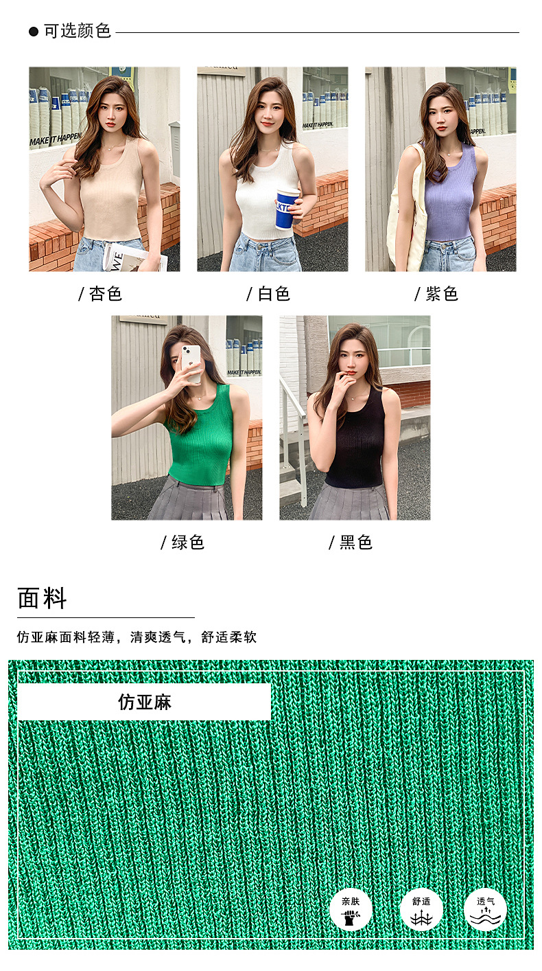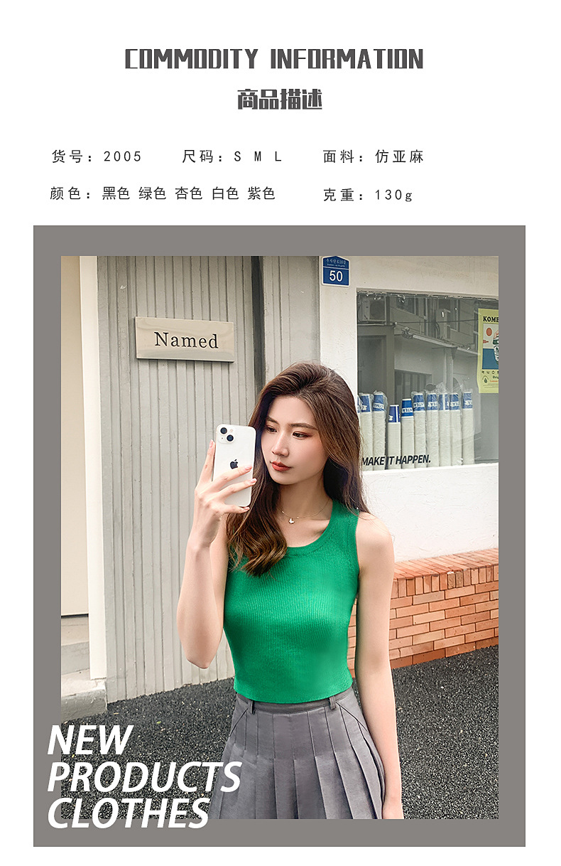 Summer Threaded Vest Inner Base Top All Match Women's Wear Outer Sleevless Knitted imitation Linen Halter Top Clearance스토어 가기