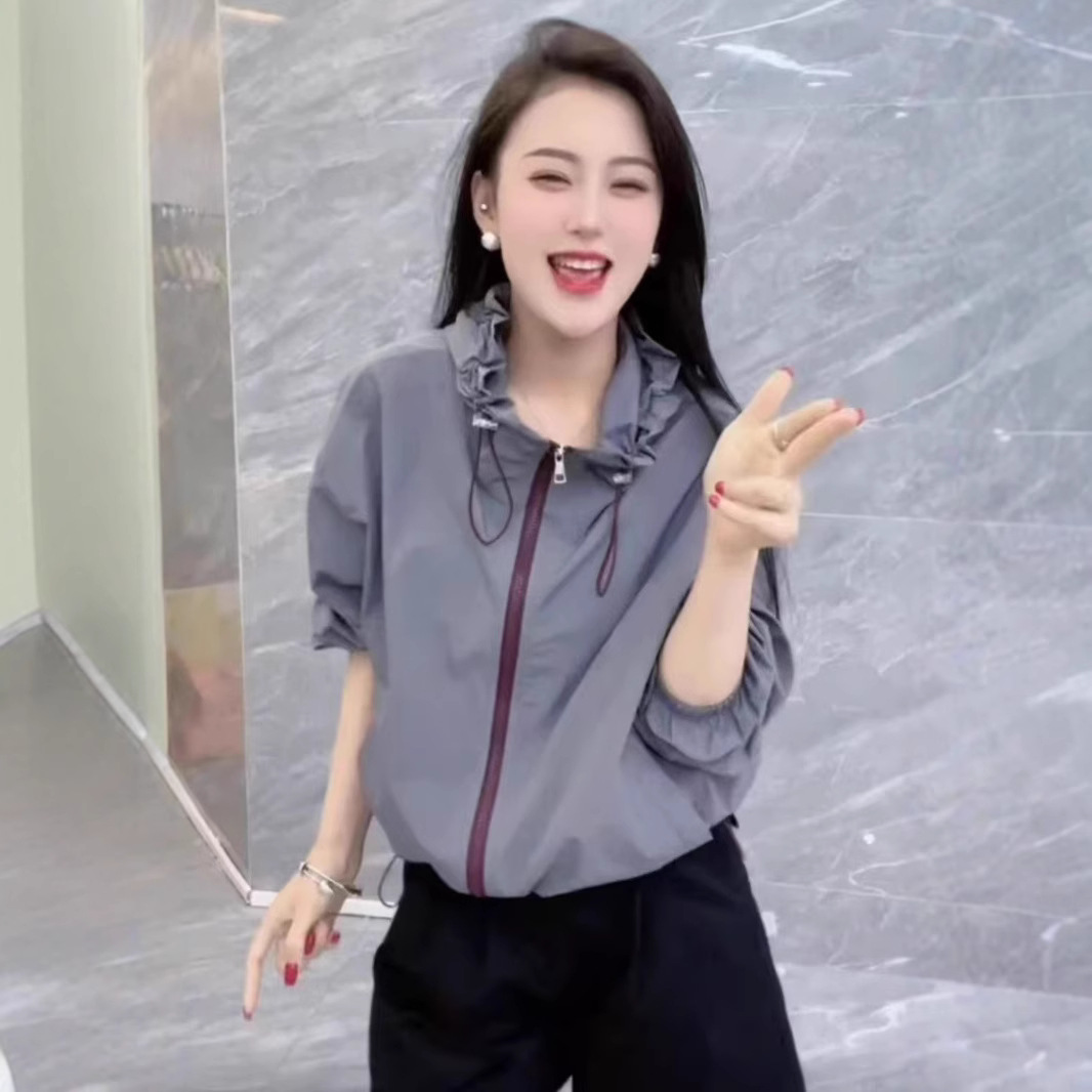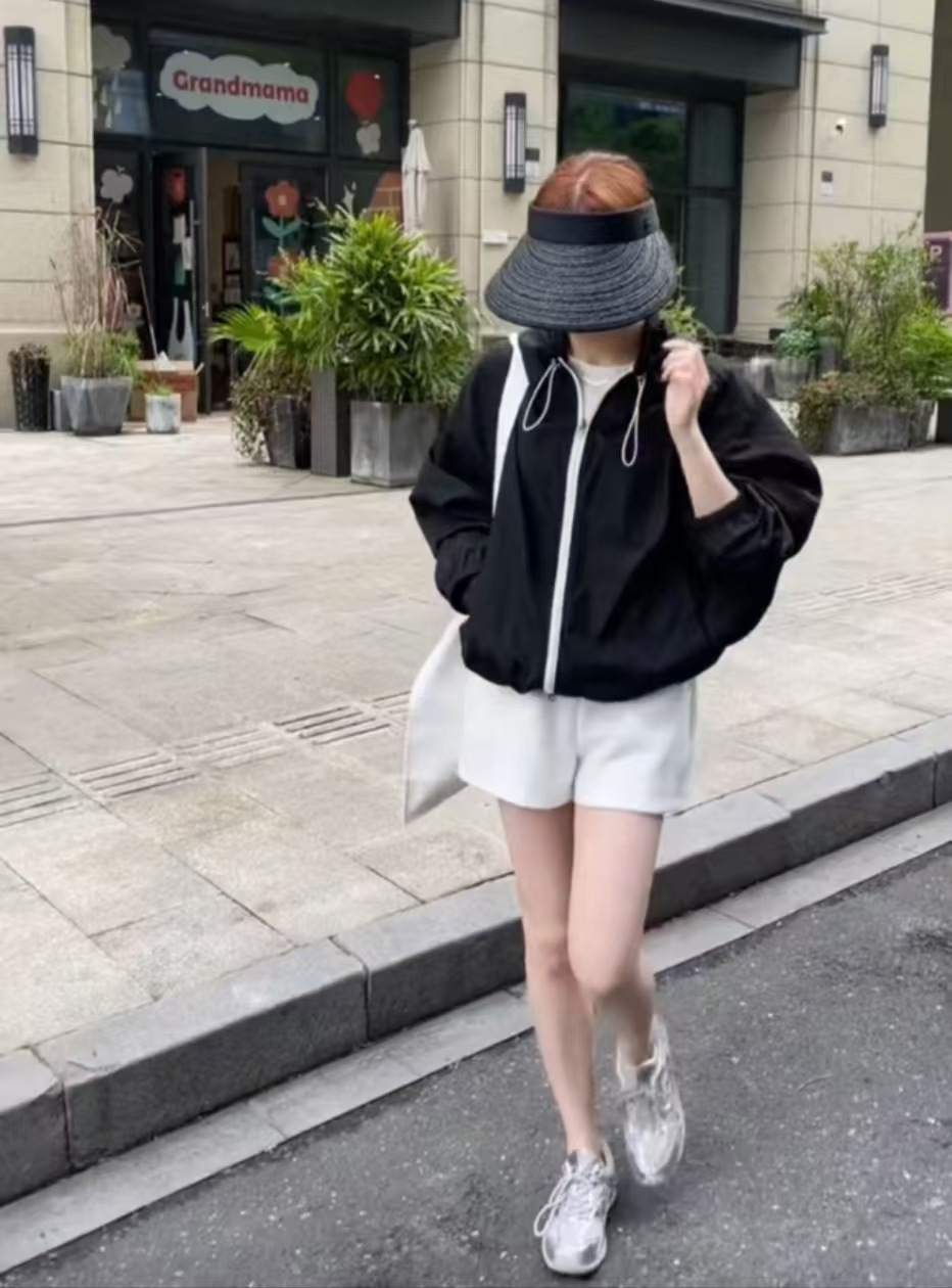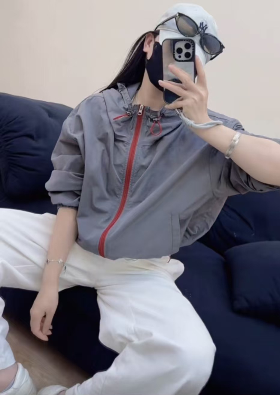 여성을위한 대비 색 후드 야외 태양 보호 의류 재킷 2025 봄 새로운 느슨한 다목적 재킷 탑 유행스토어 가기